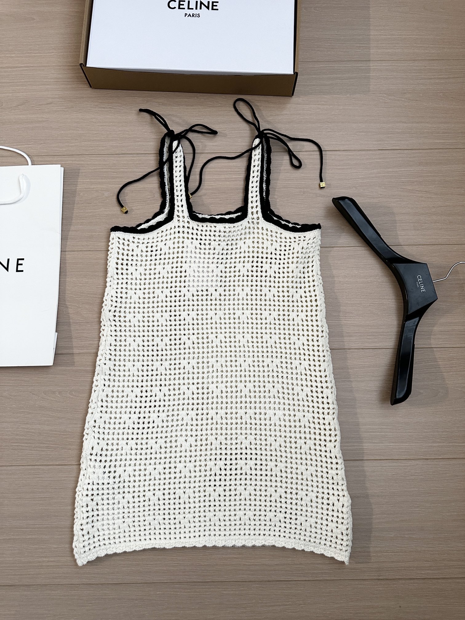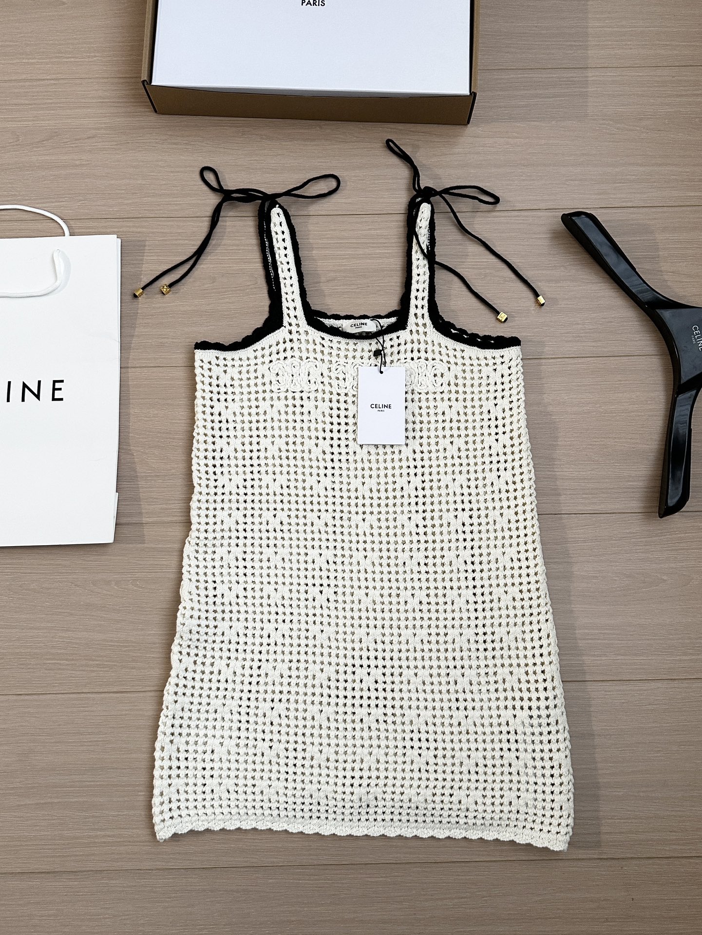 NIGO Celine Women's Summer TRIOMPHE Solid Color Crochet Knitted Cotton Strapless Mini Dress #nigo77319