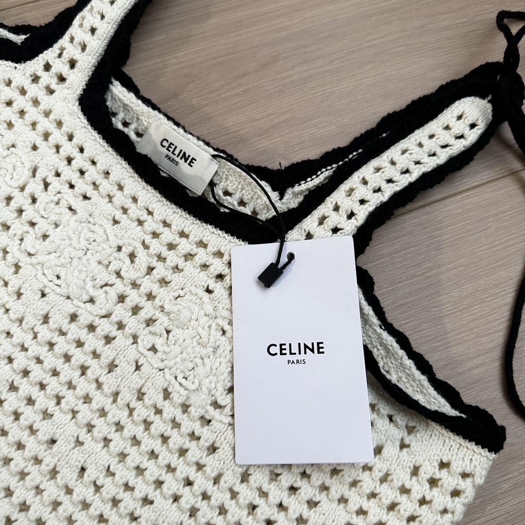 NIGO Celine Women's Summer Solid Color TRIOMPHE Crochet Knit Cotton Short Tank Top #nigo77318