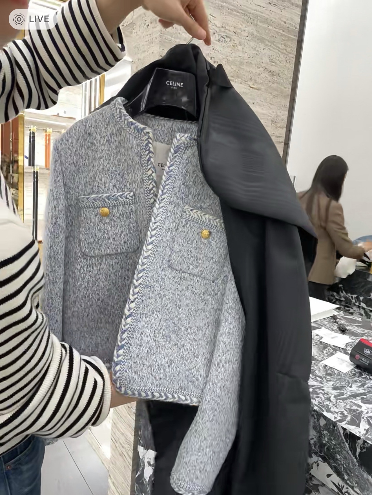 NIGO Celine Women's Spring & Autumn Woven Tweed Cardigan Wool Blend Fitted Long Sleeve Jacket #nigo1825