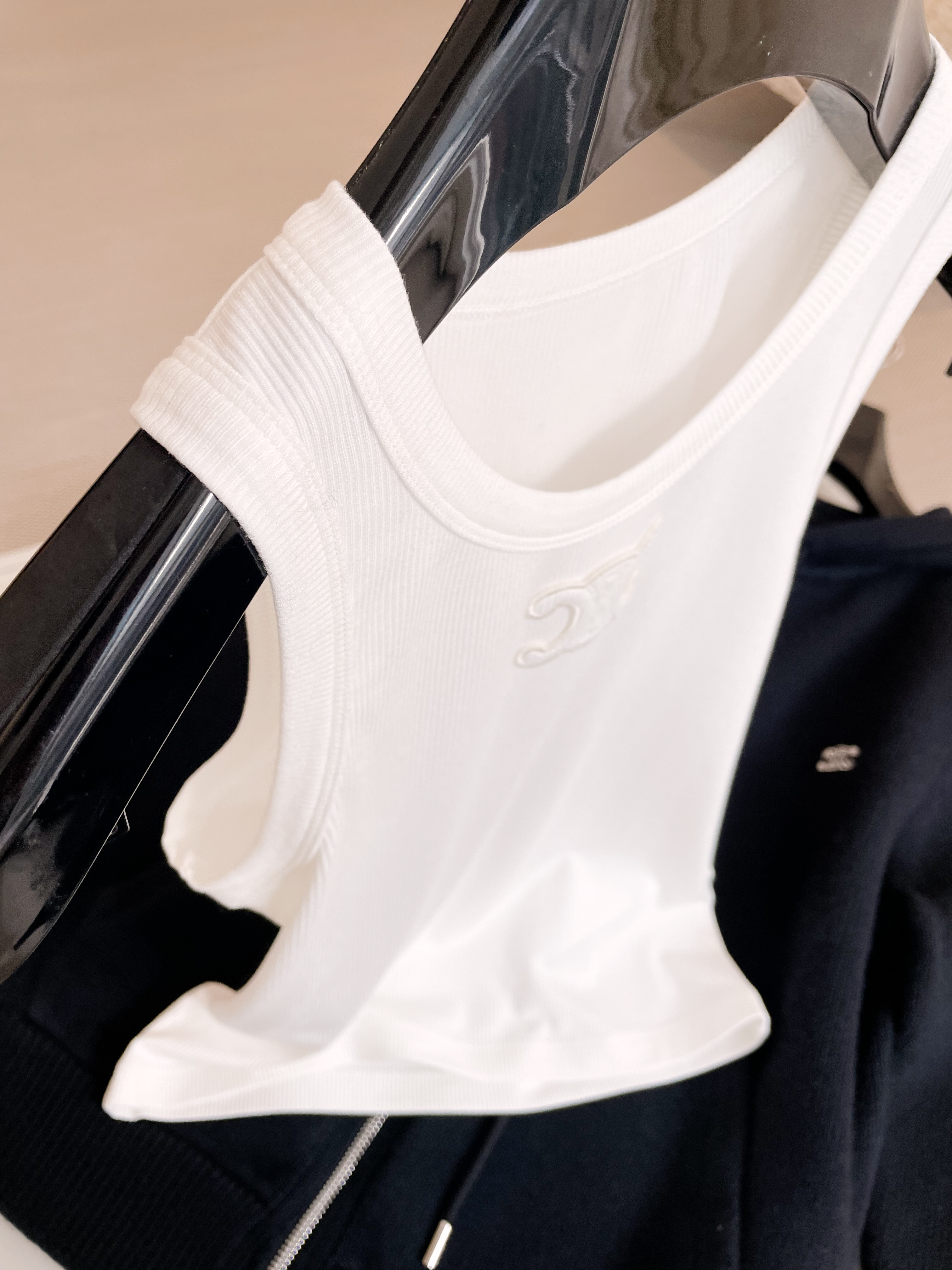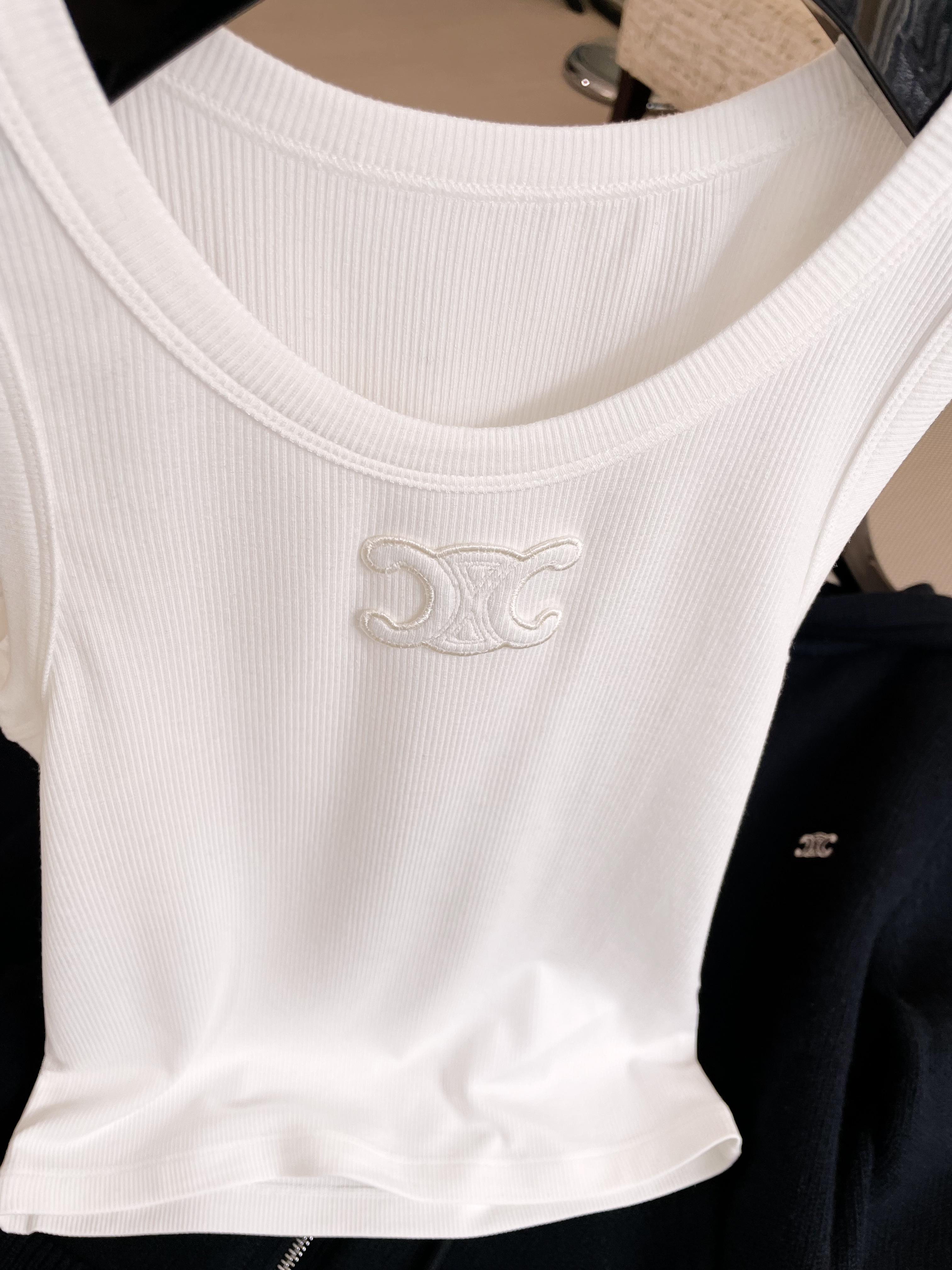 NIGO Celine Women's Summer Solid Color Embroidered Logo Print Round Neck Sleeveless Tank Top Vest #nigo74998