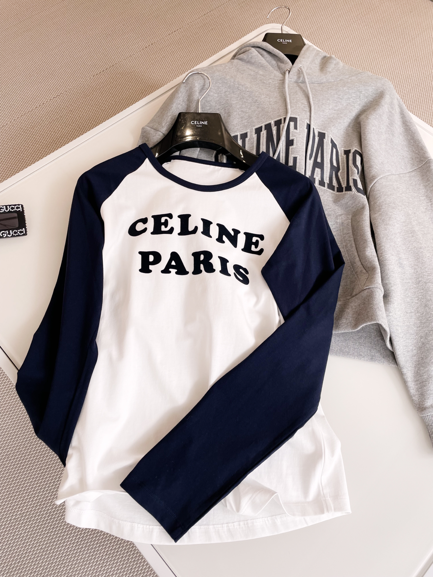 NIGO Celine Women's Summer Color Clash Letter Printed Plunger Round Neck Long Sleeve T-Shirt Top #nigo75111