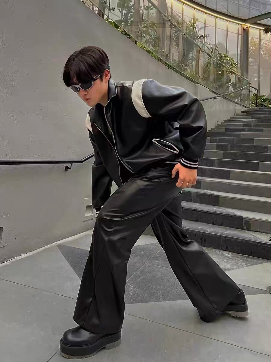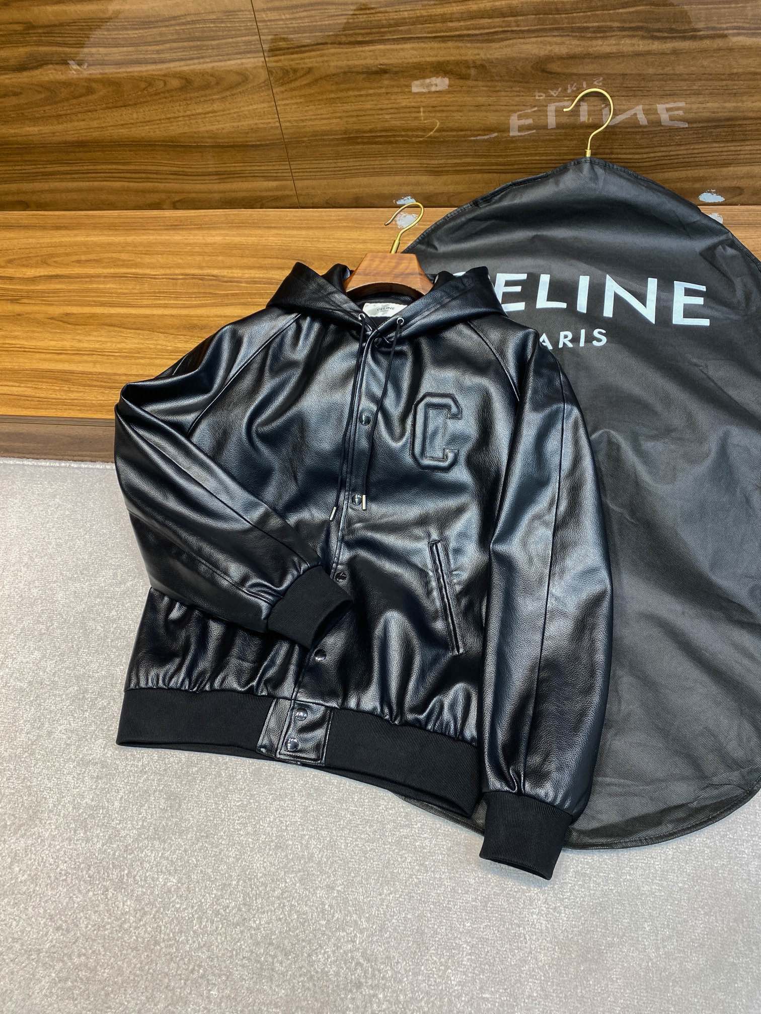 NIGO Celine Men's Spring Autumn High Street Solid Color Zipper Hooded Long Sleeve Fitted Leather Jacket Ngvp #nigo9572