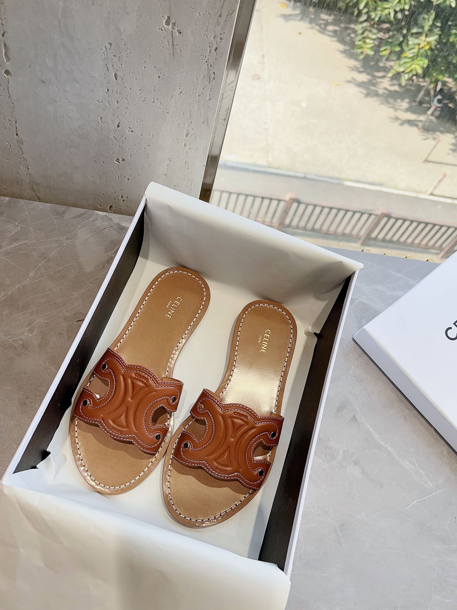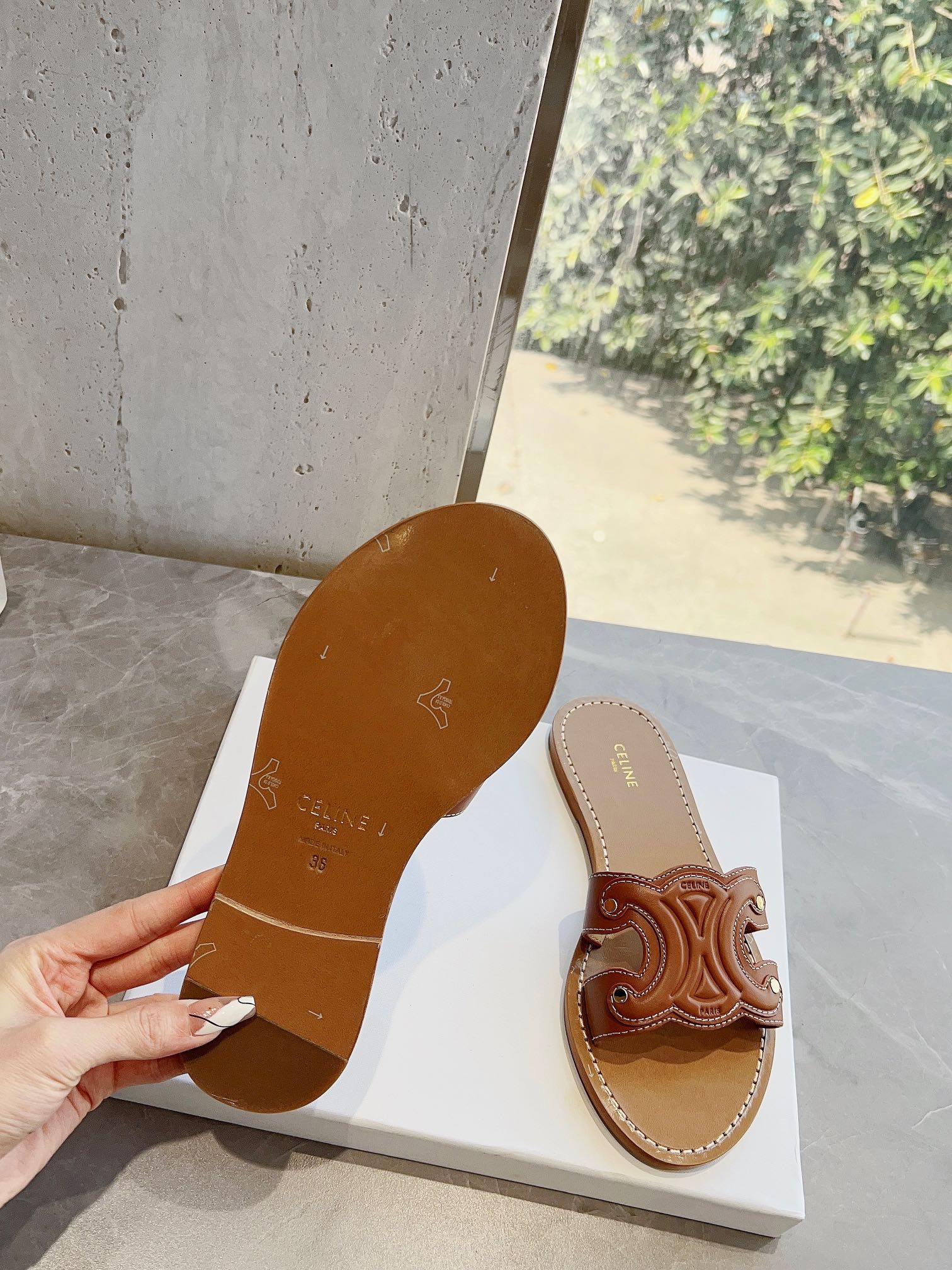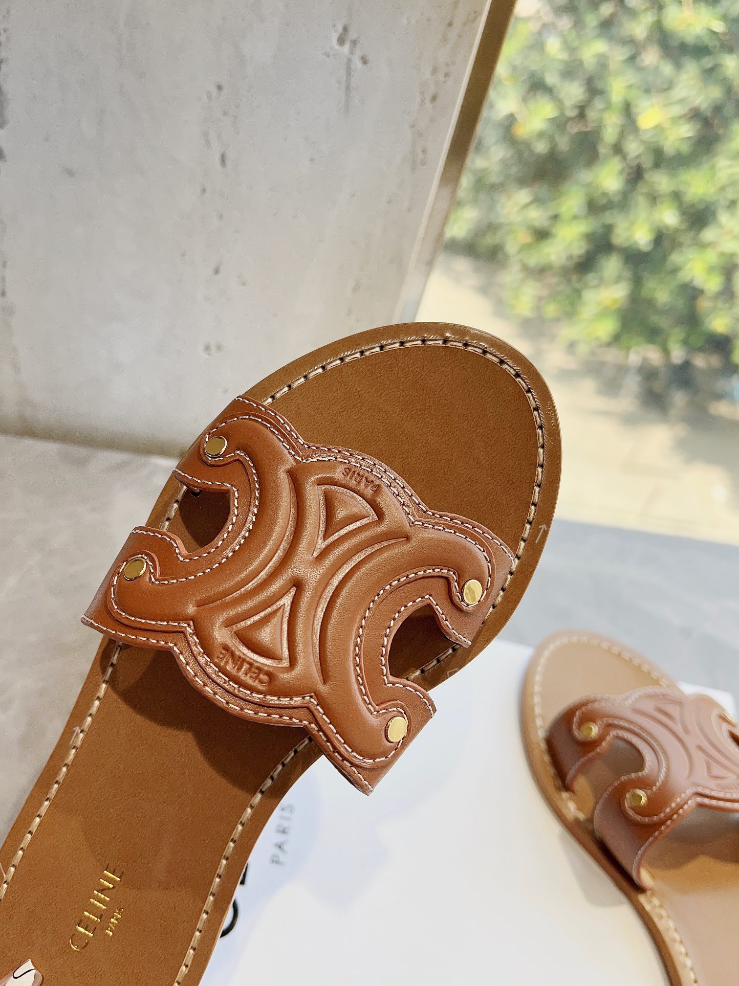 NIGO Celine Women's Spring Summer TRIOMPHE Cow Leather Mule Shoes Solid Color Casual Slippers Shoes #nigo71816