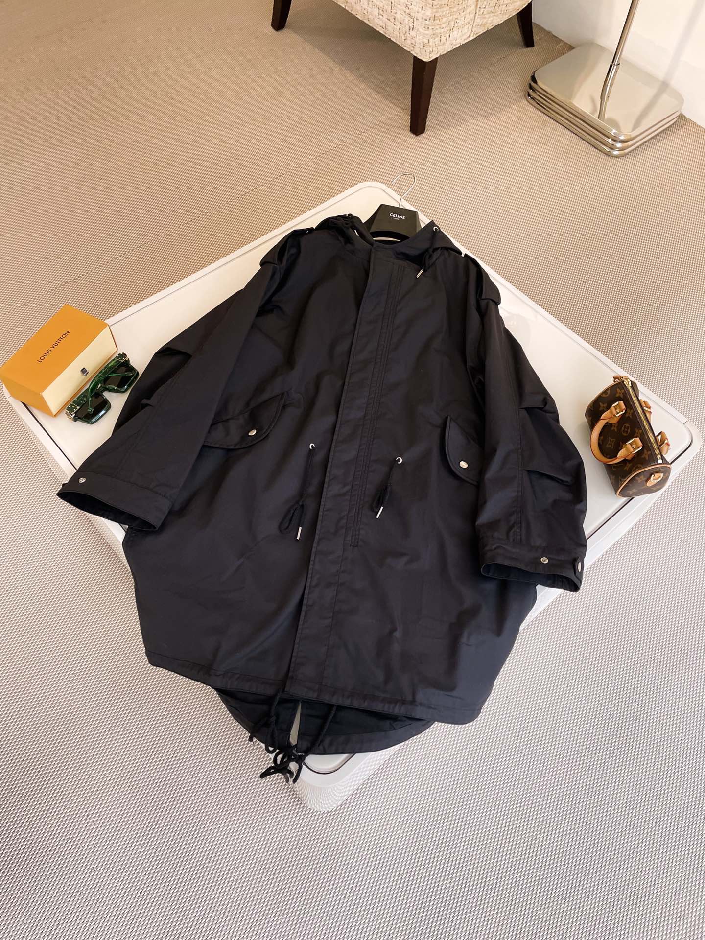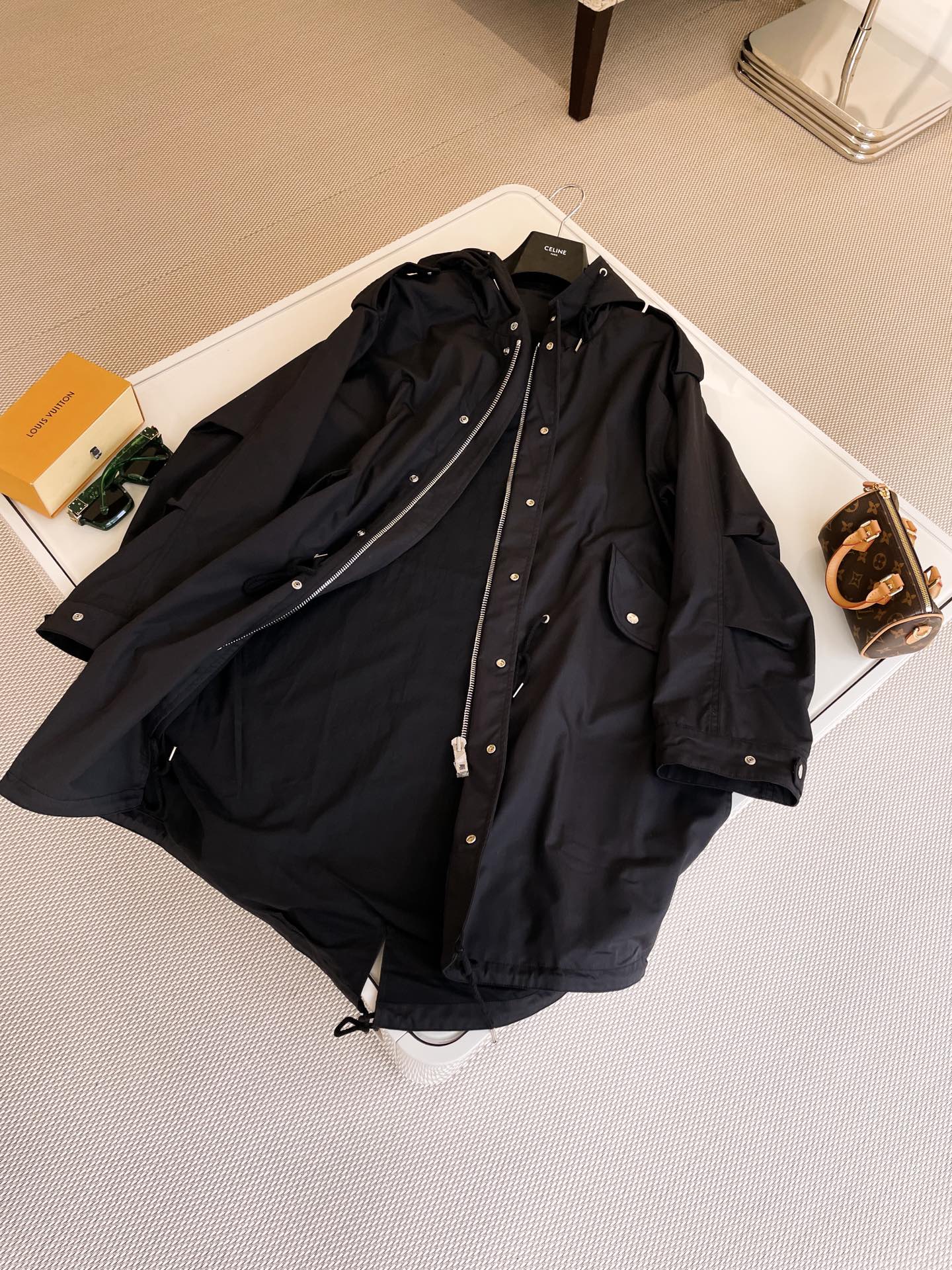 NIGO Celine Men's Spring and Autumn Black Hooded Pocket Zipper Parker Windbreaker Jacket #nigo73178