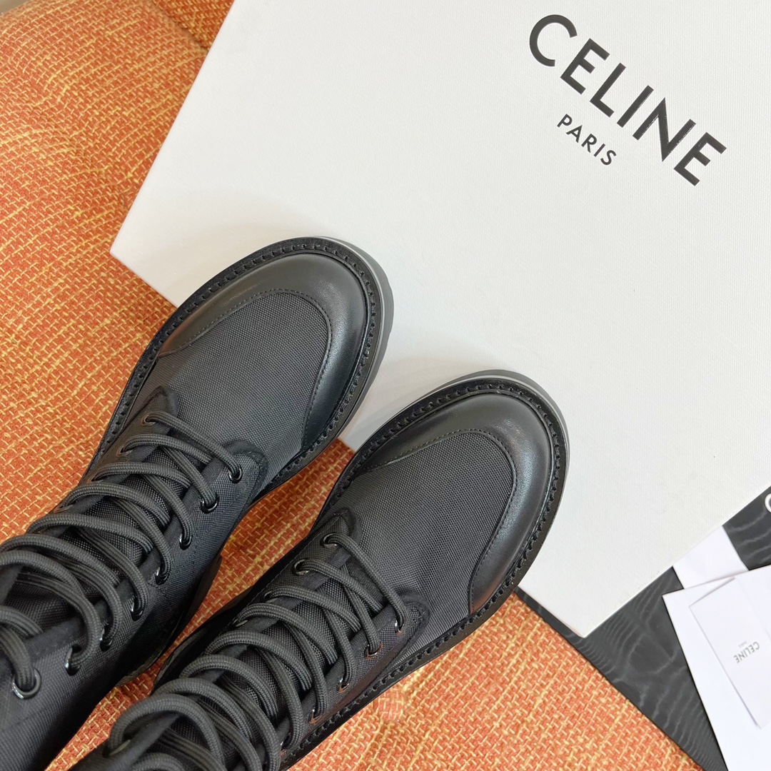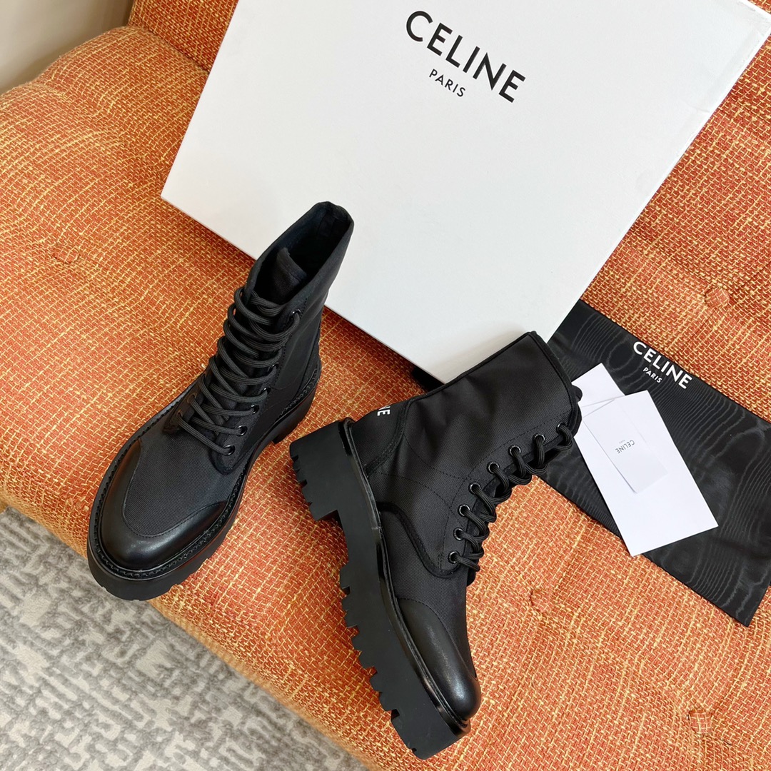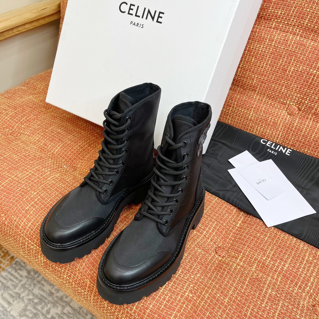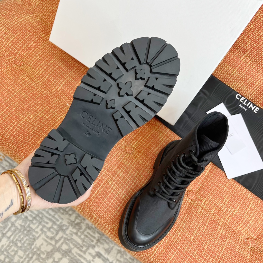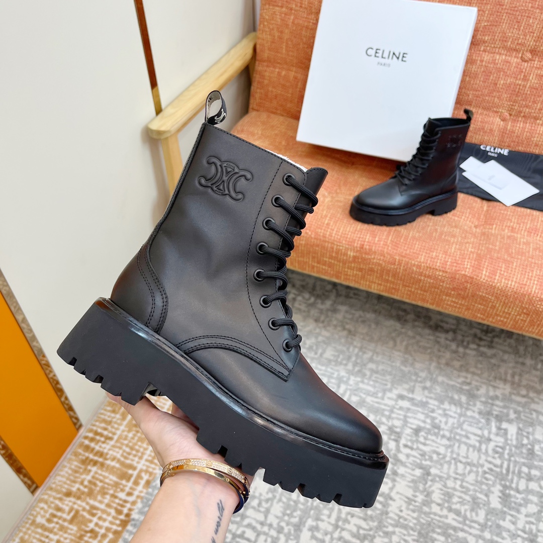 NIGO Celine Bulky Women's Solid Color Comfortable Leather Thick Sole Lace-Up Mid-Length Boots Shoes #nigo73719