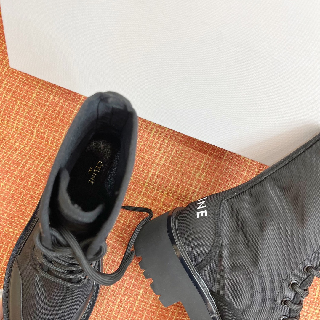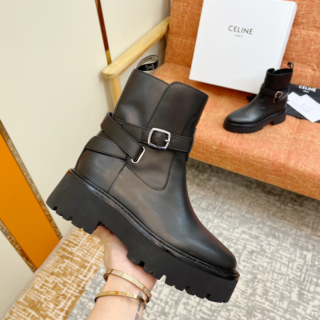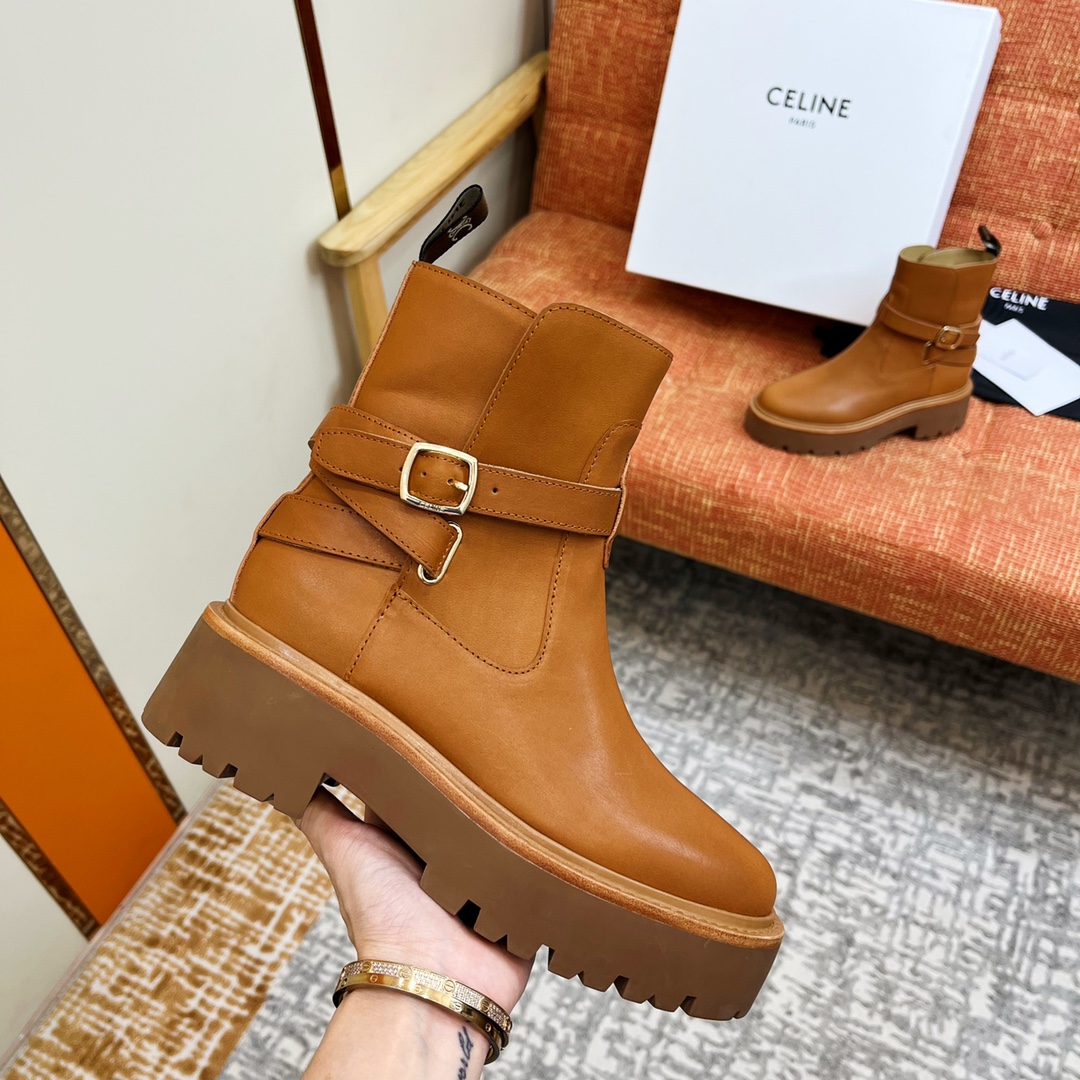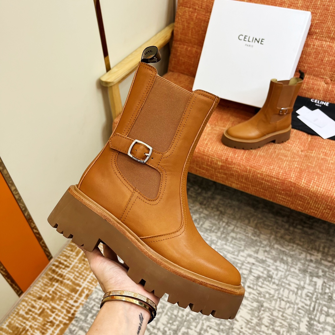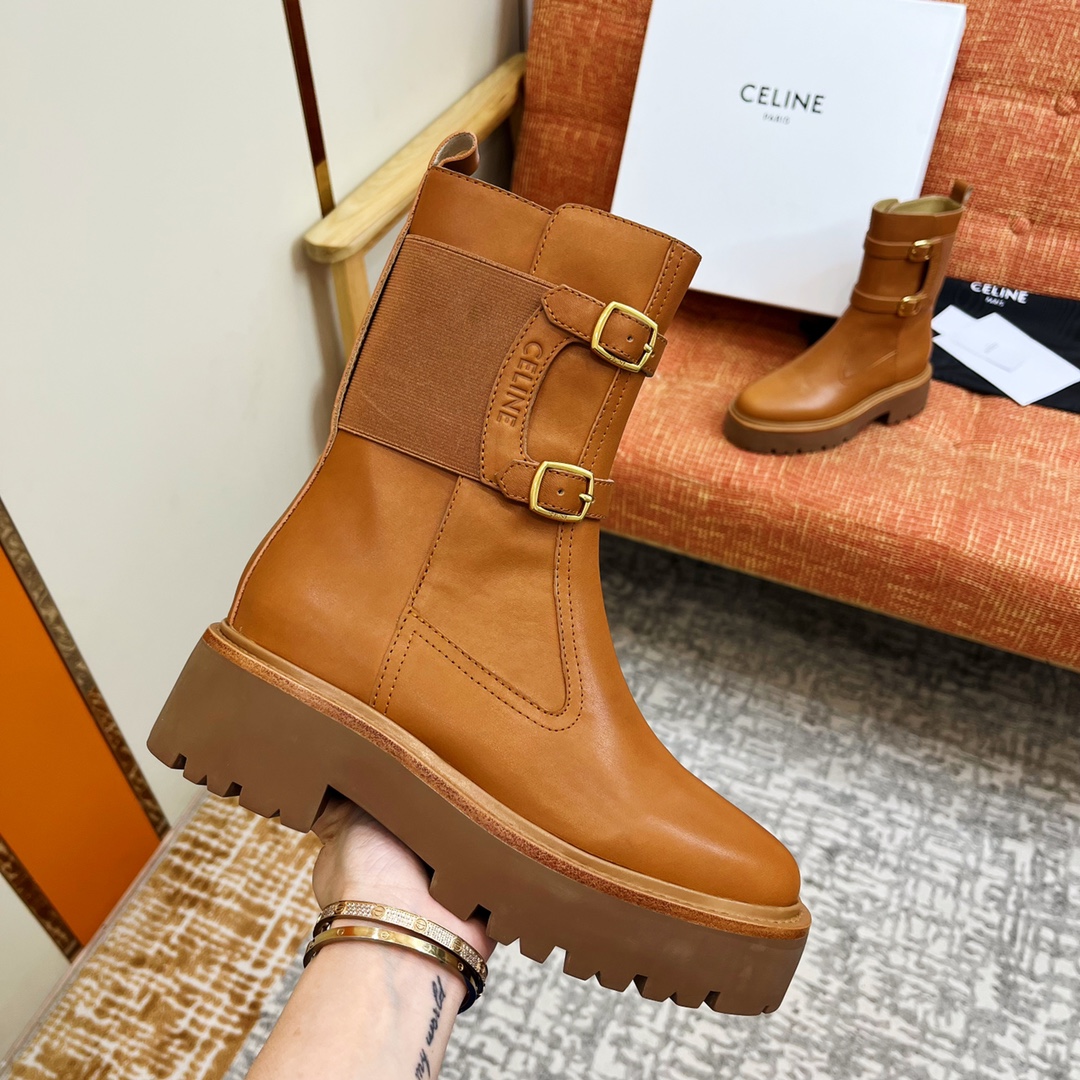 NIGO Celine Bulky Women's Solid Color Comfortable Leather Thick Sole Lace-Up Mid-Length Boots Shoes #nigo73719