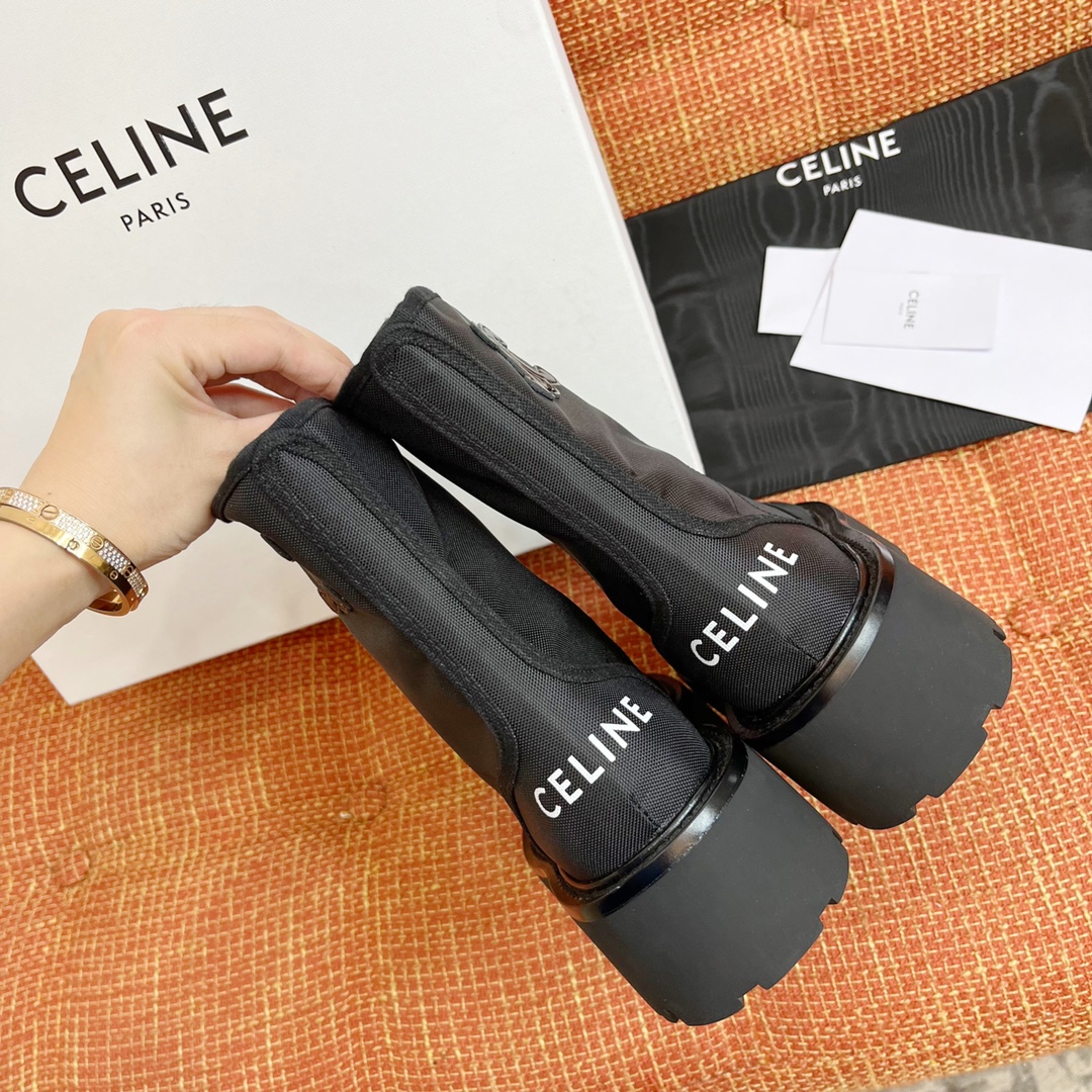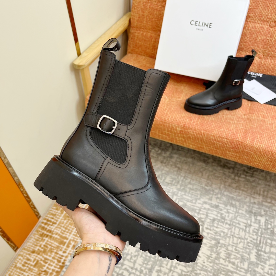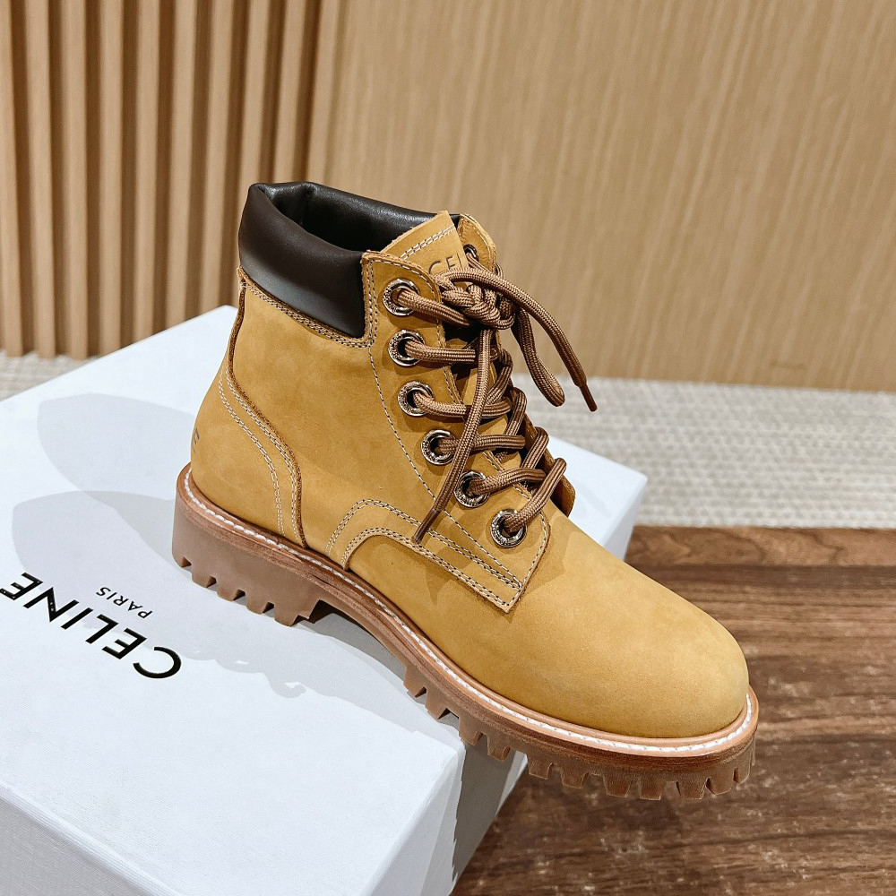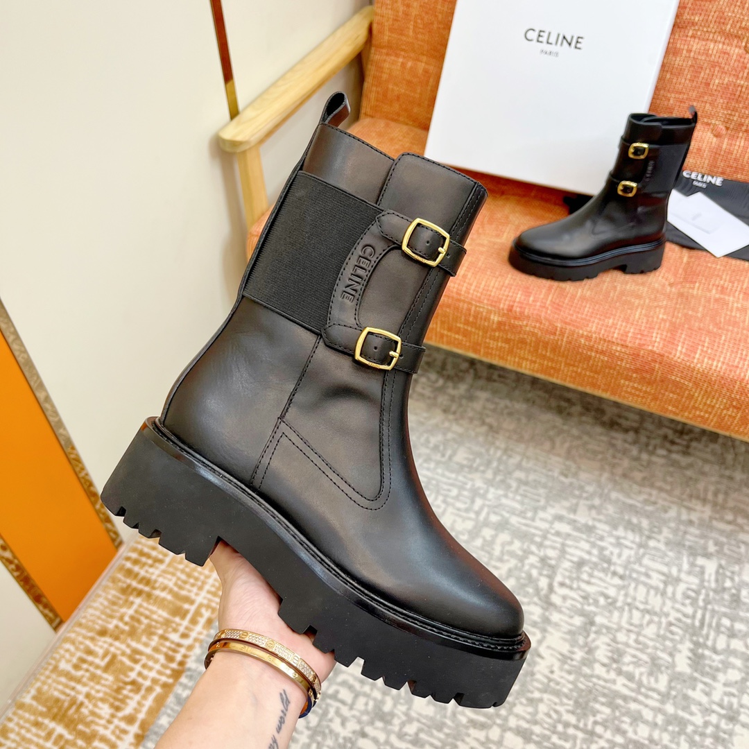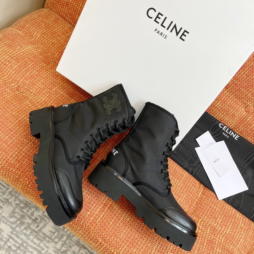 NIGO Celine Bulky Women's Solid Color Comfortable Leather Thick Sole Lace-Up Mid-Length Boots Shoes #nigo73719