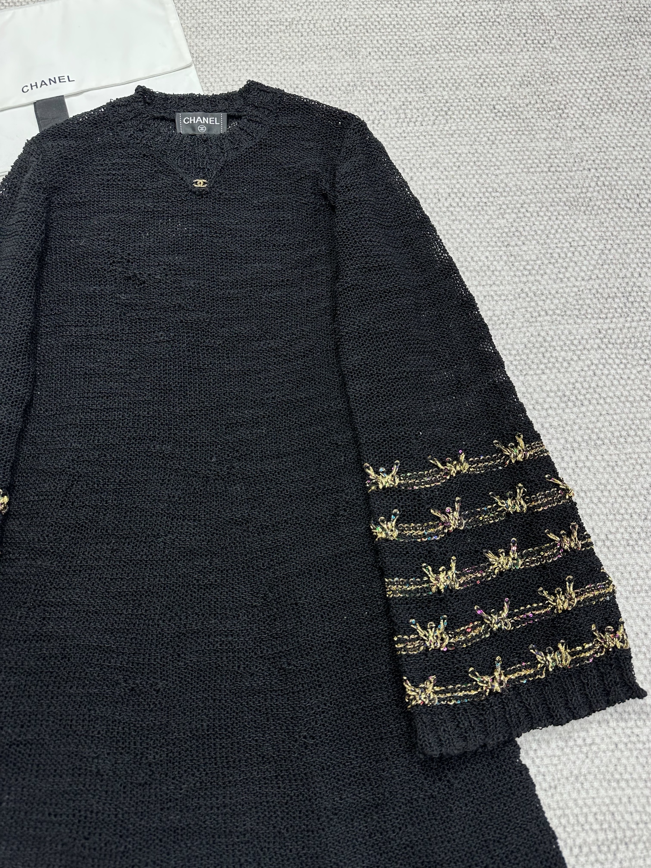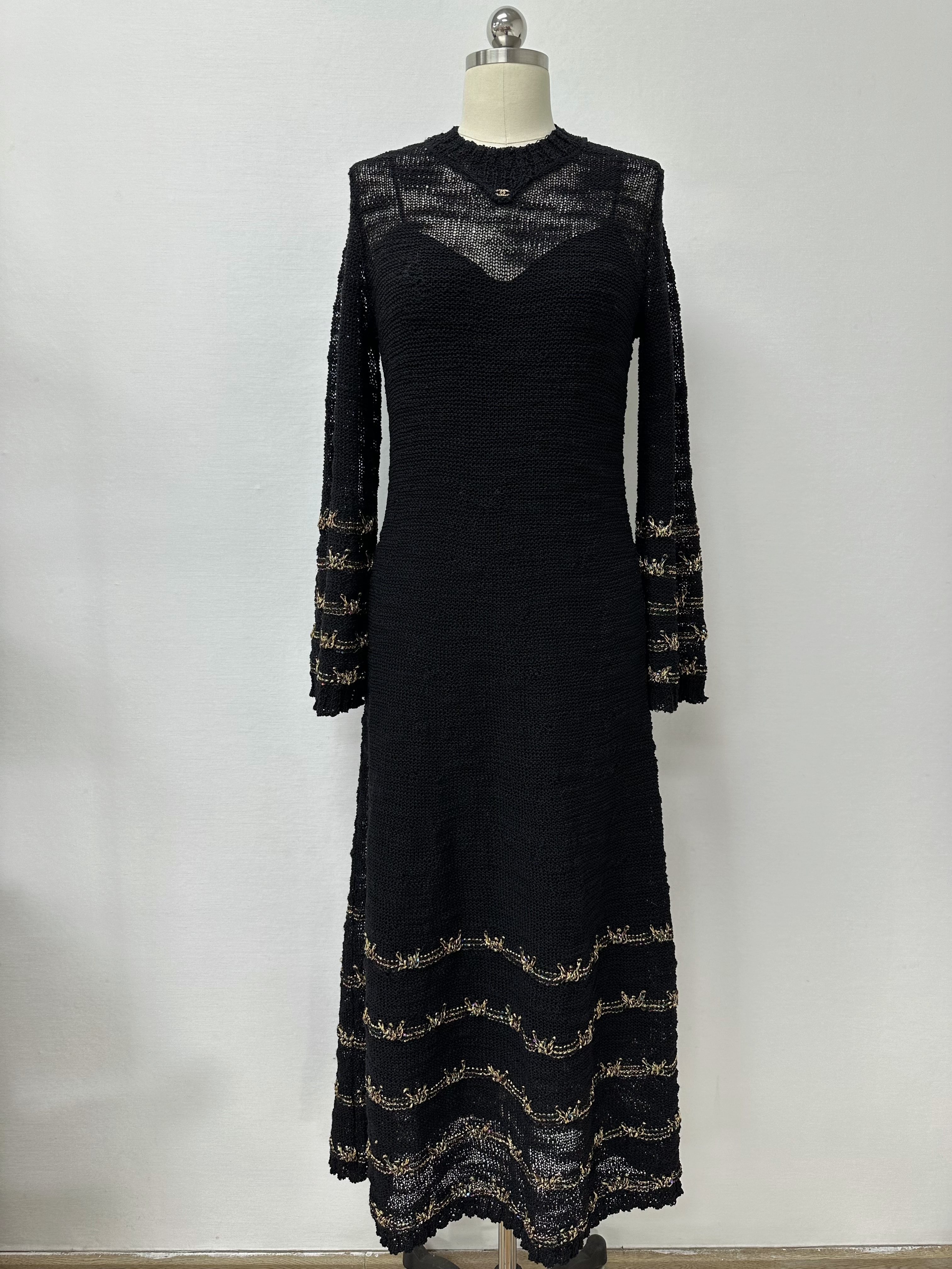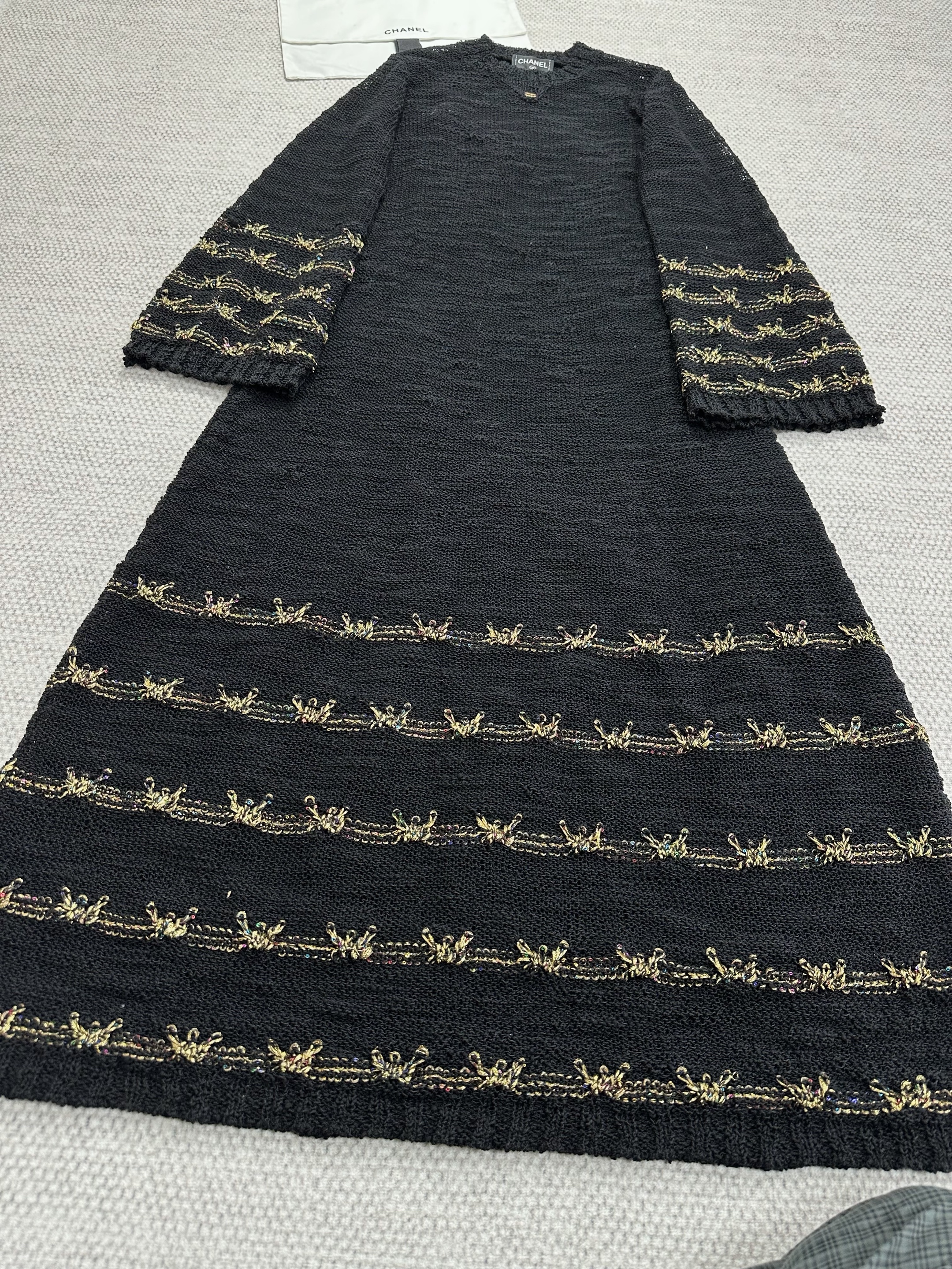 NIGO Chanel 25A Women's Long Dress Embroidered Virgin Wool Black and Gold #nigo332236