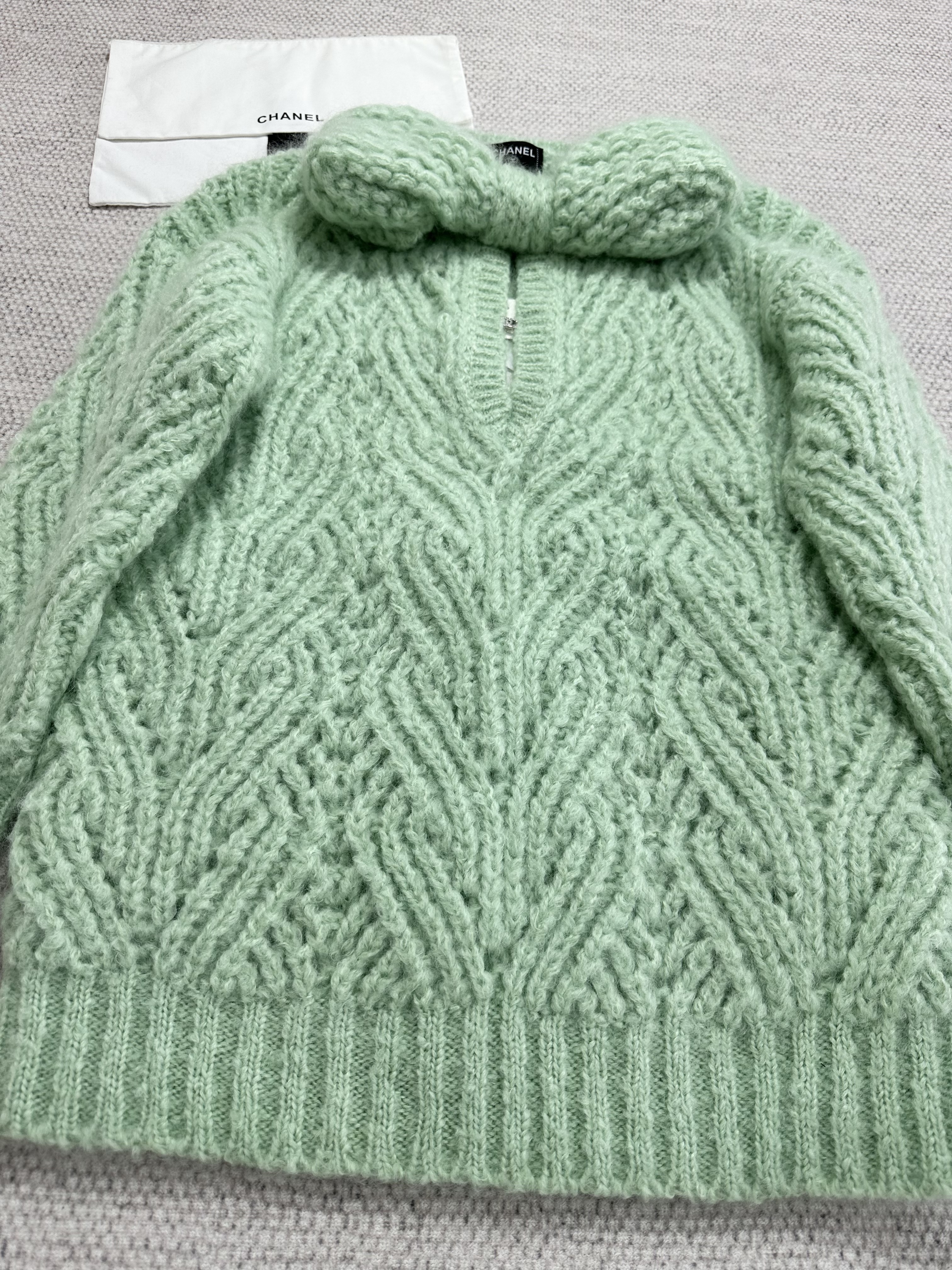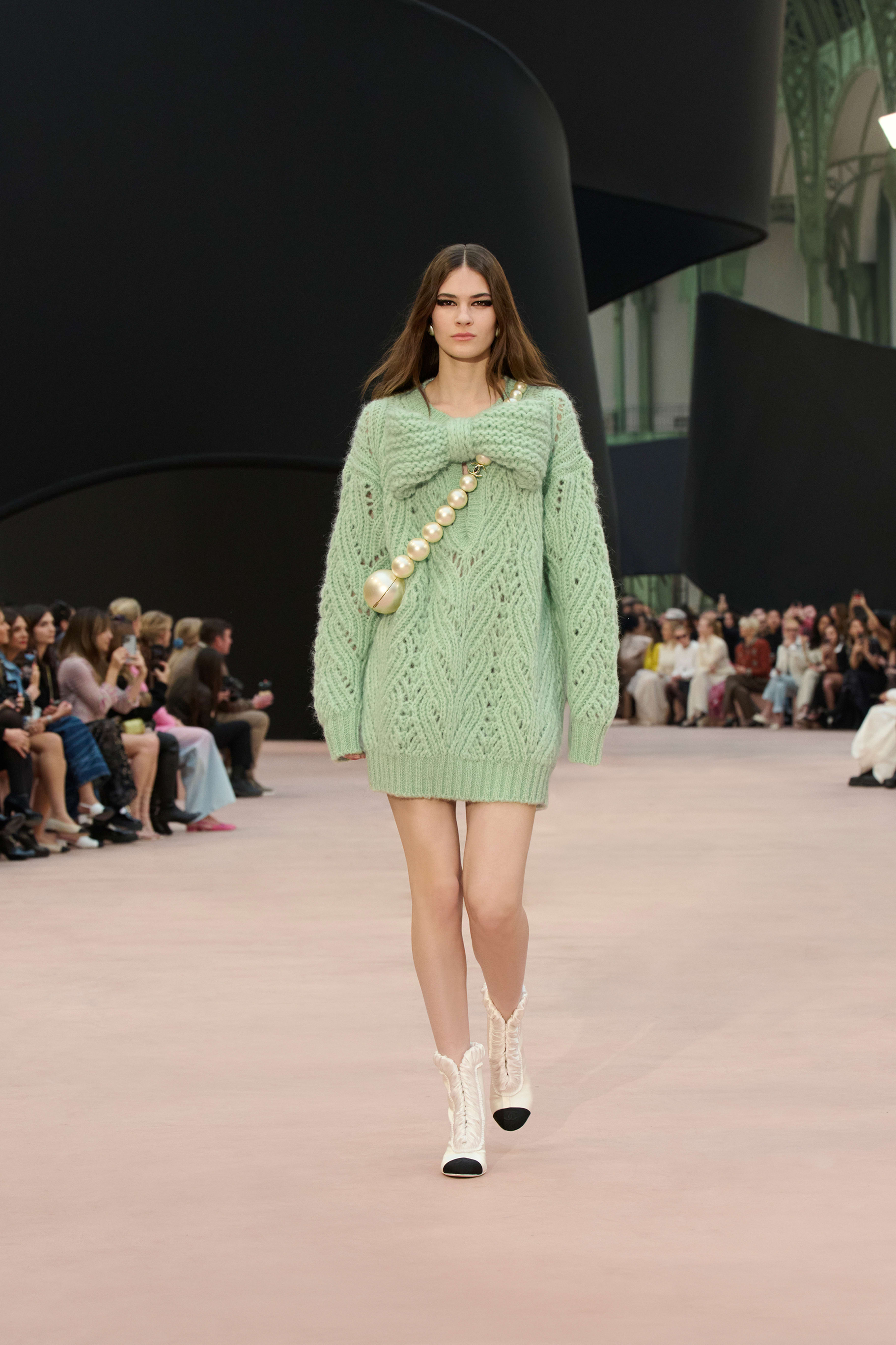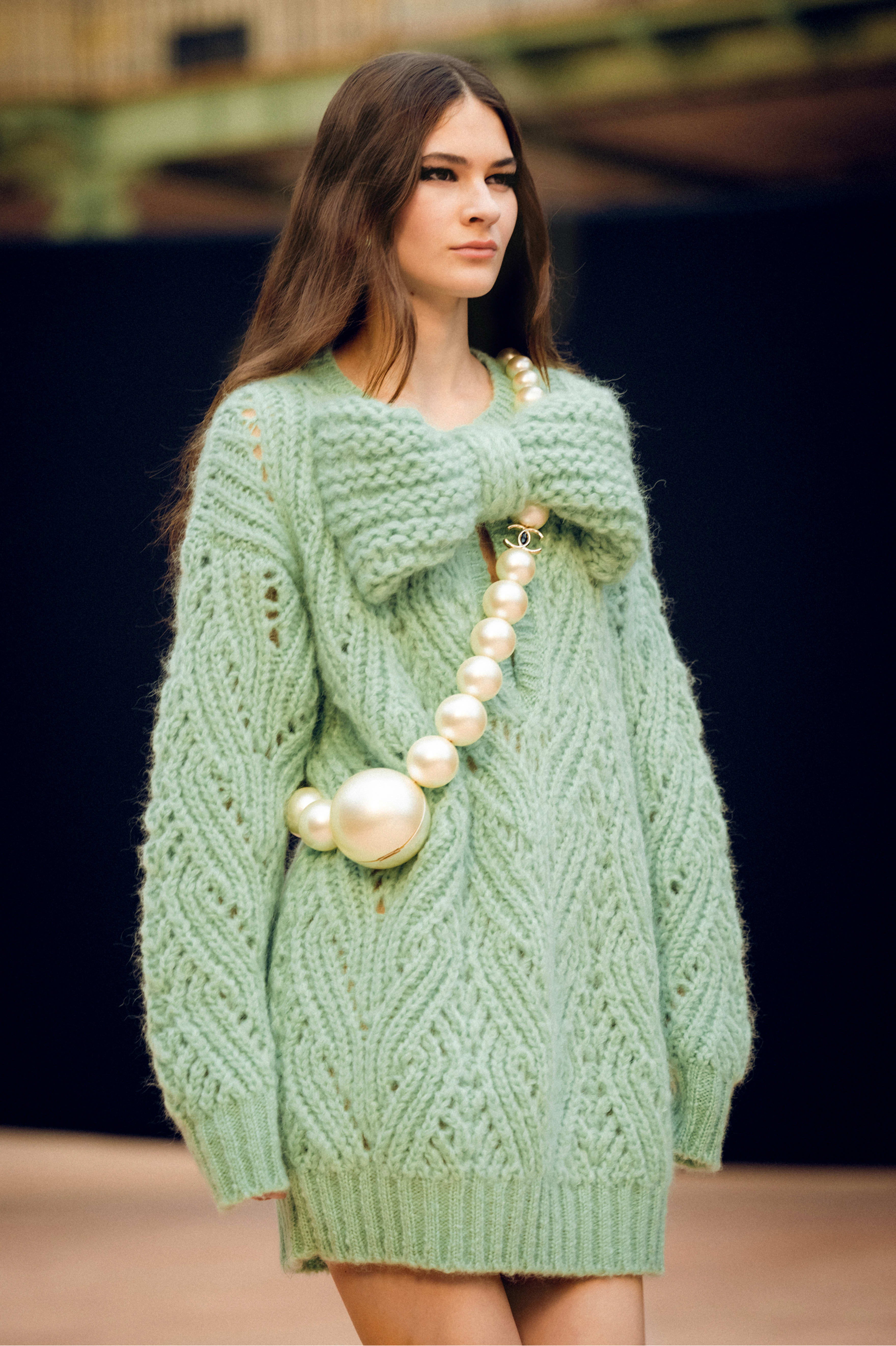 NIGO Chanel 25K Fall/Winter Haute Couture Collection Long Sleeves Short Dress Mohair And Wool Light Green #nigo332110
