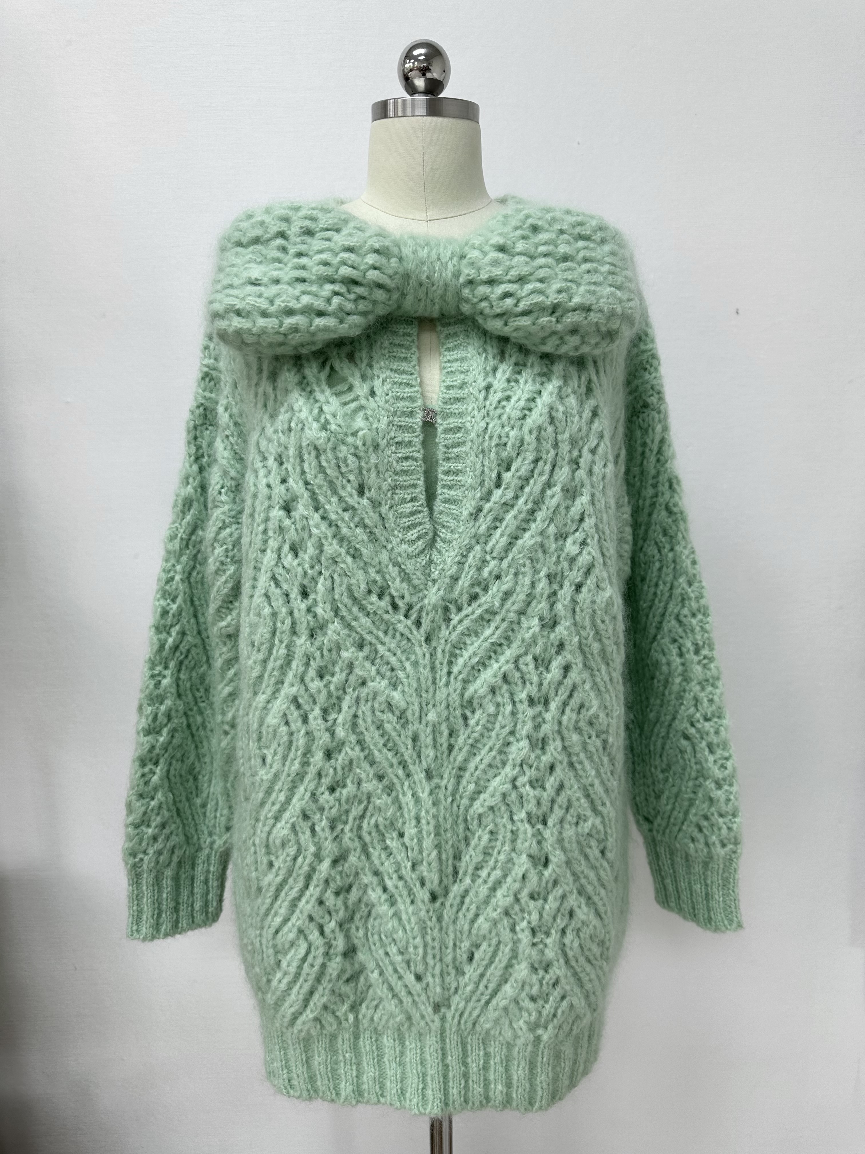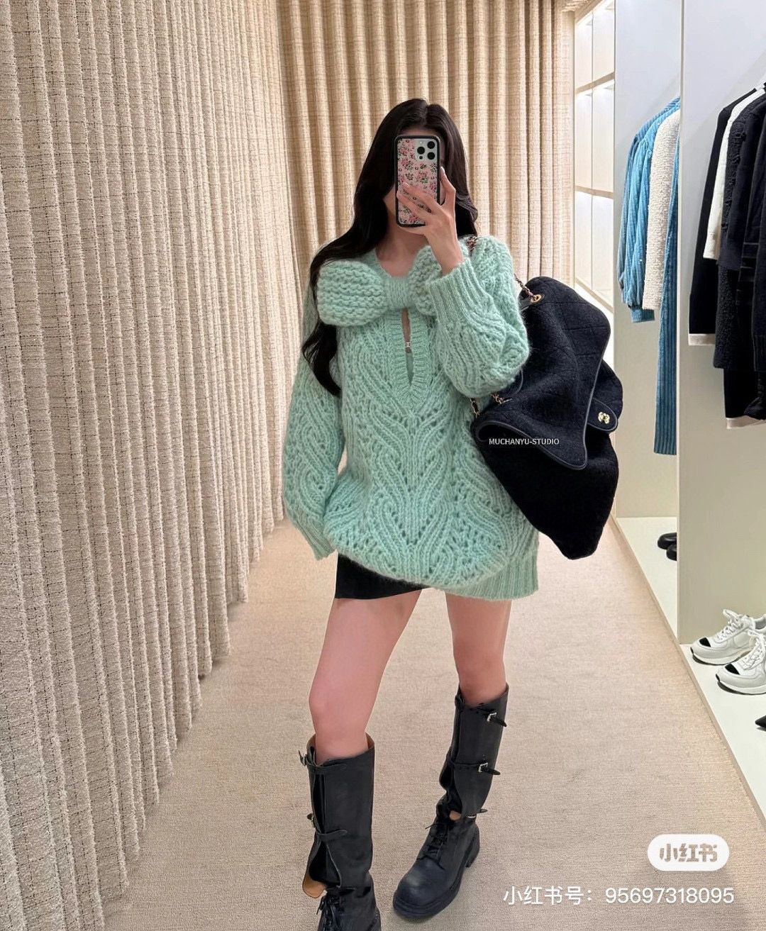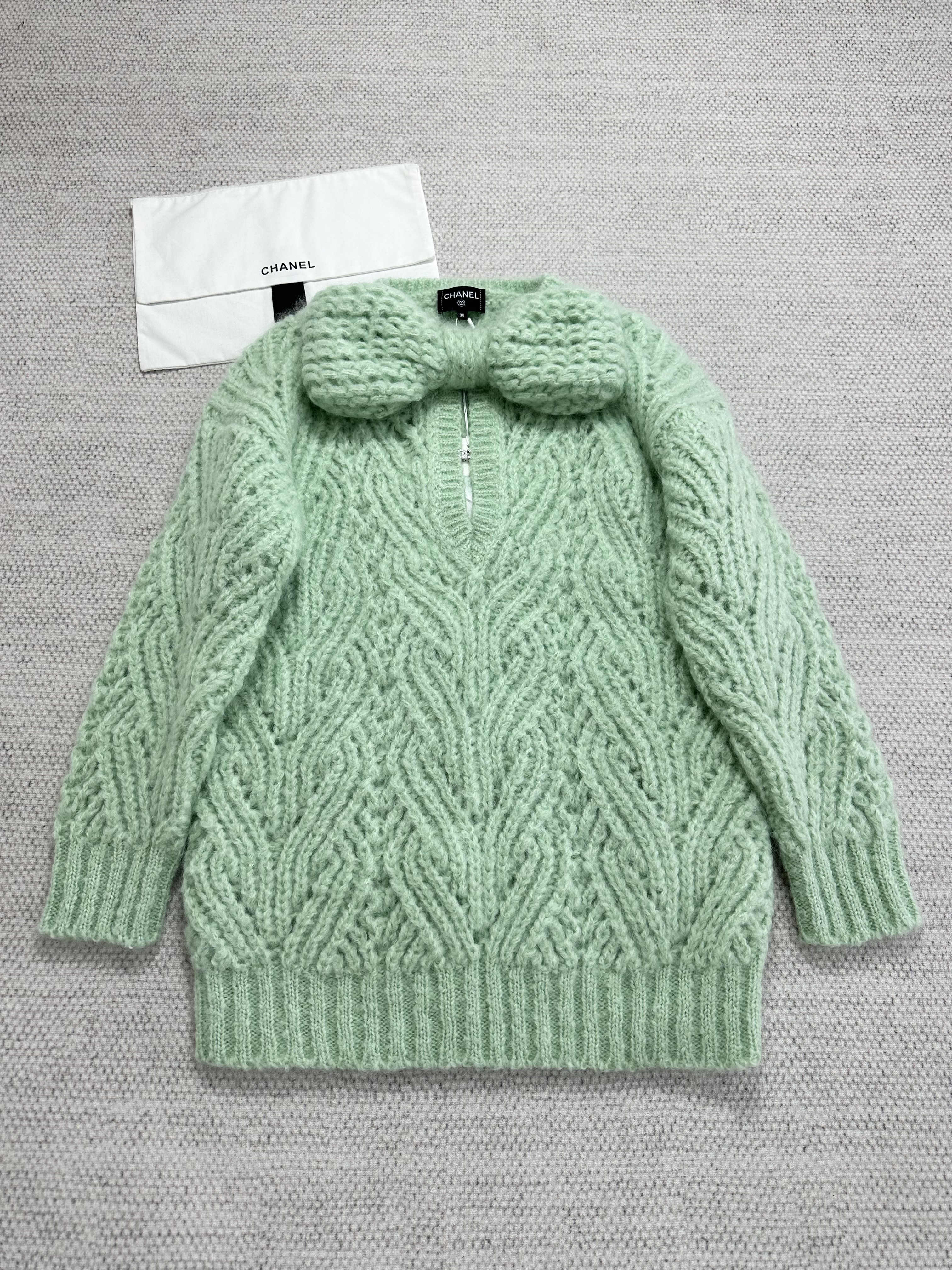 NIGO Chanel 25K Fall/Winter Haute Couture Collection Long Sleeves Short Dress Mohair And Wool Light Green #nigo332110