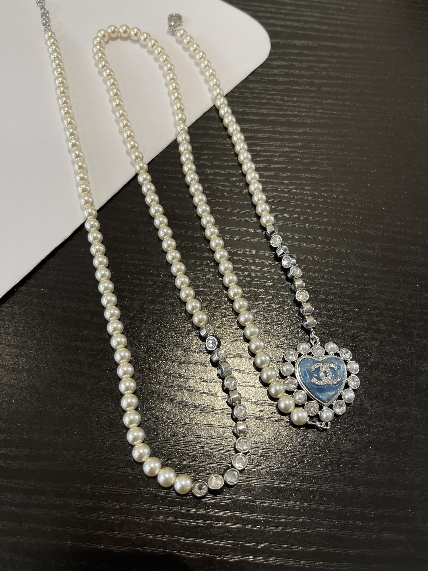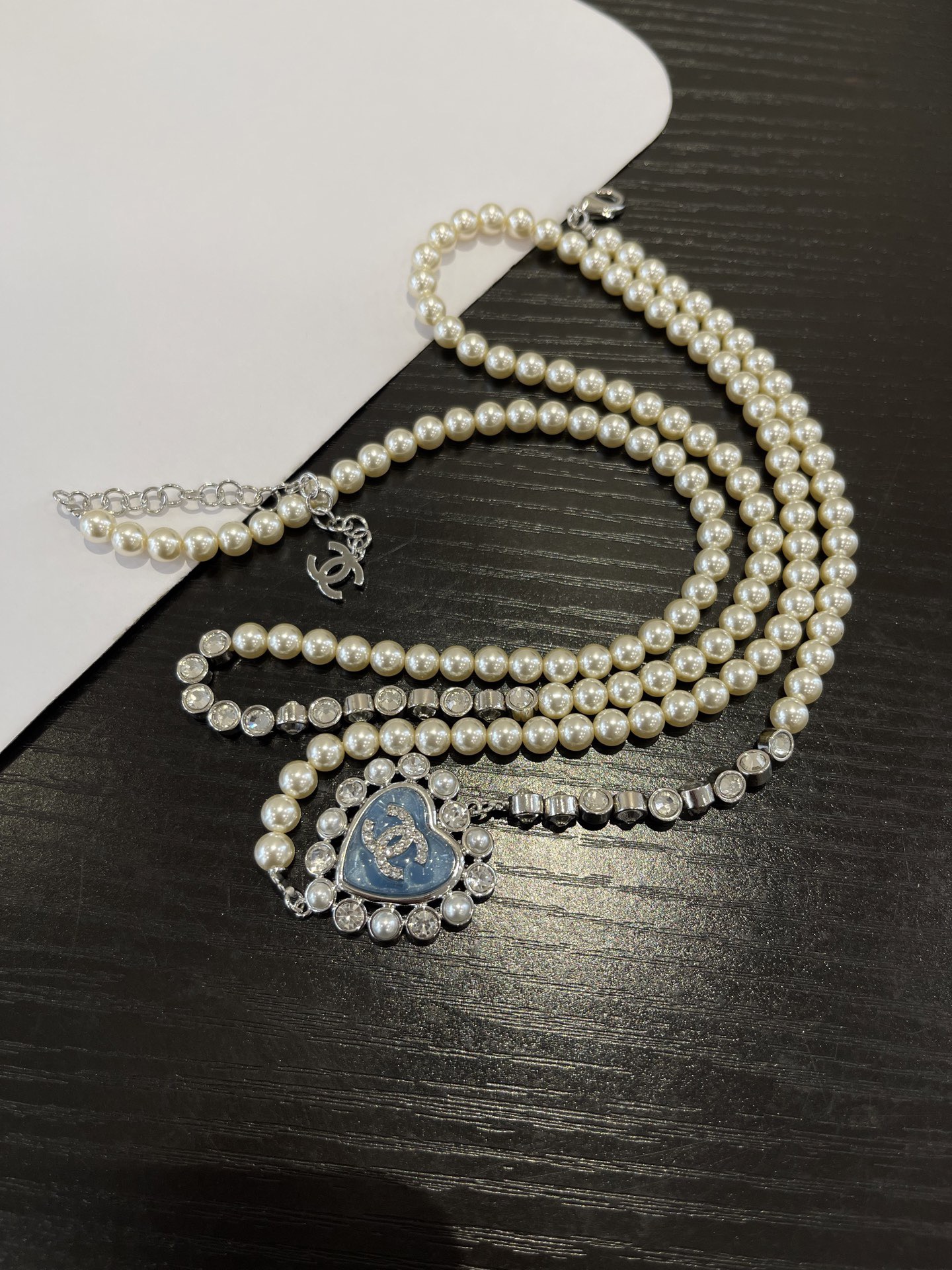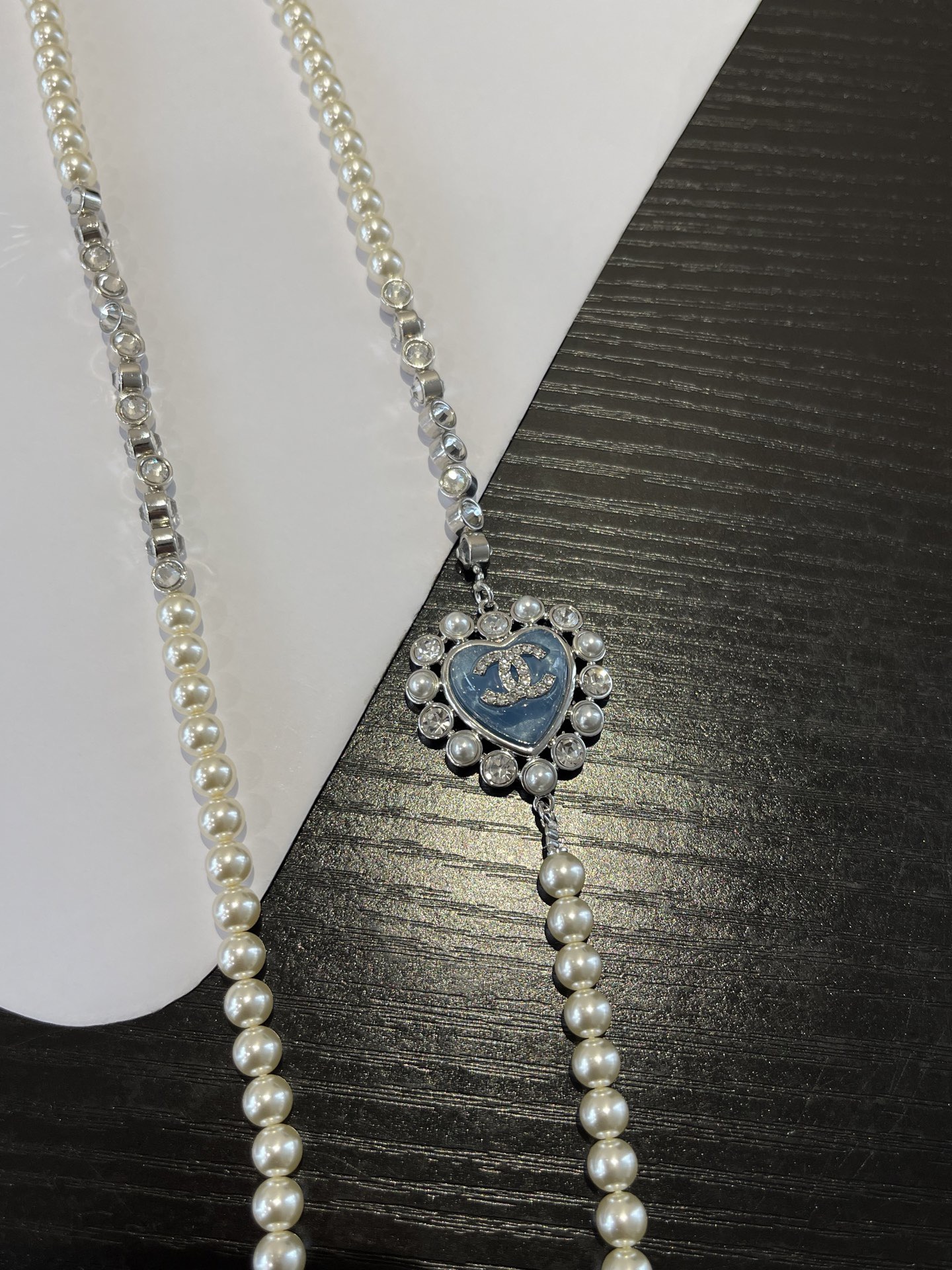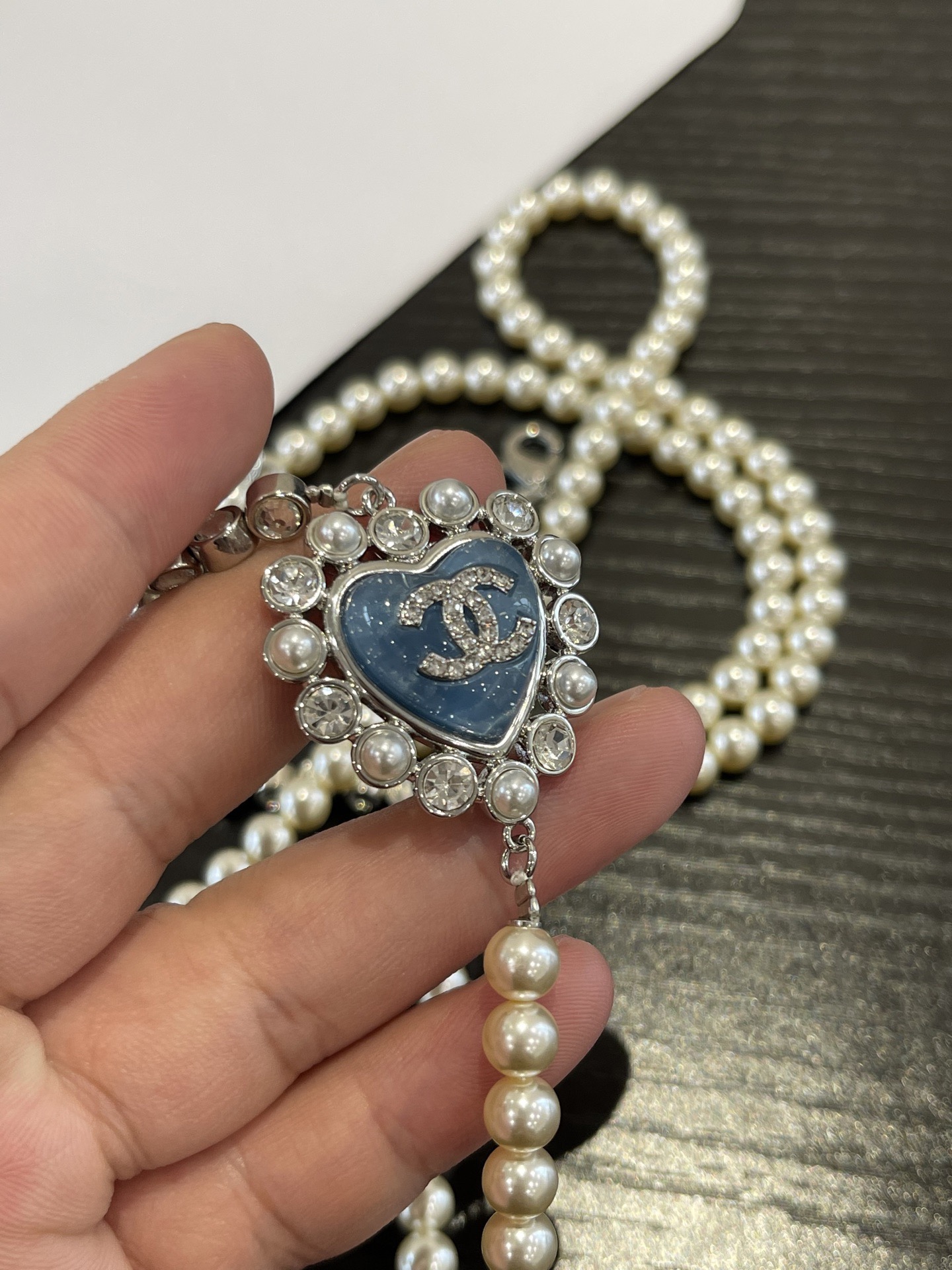 NIGO Chanel 25P New Blue Love Silver Full Diamond Double C Pearl Sweater Chain Advanced Resin #nigo317343