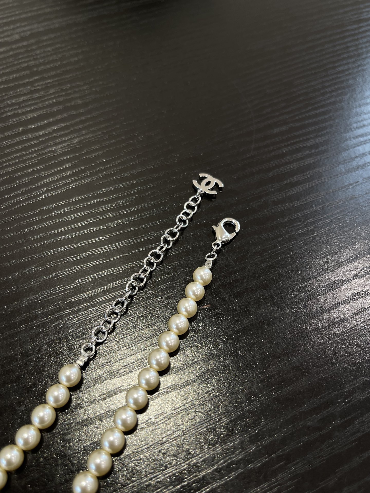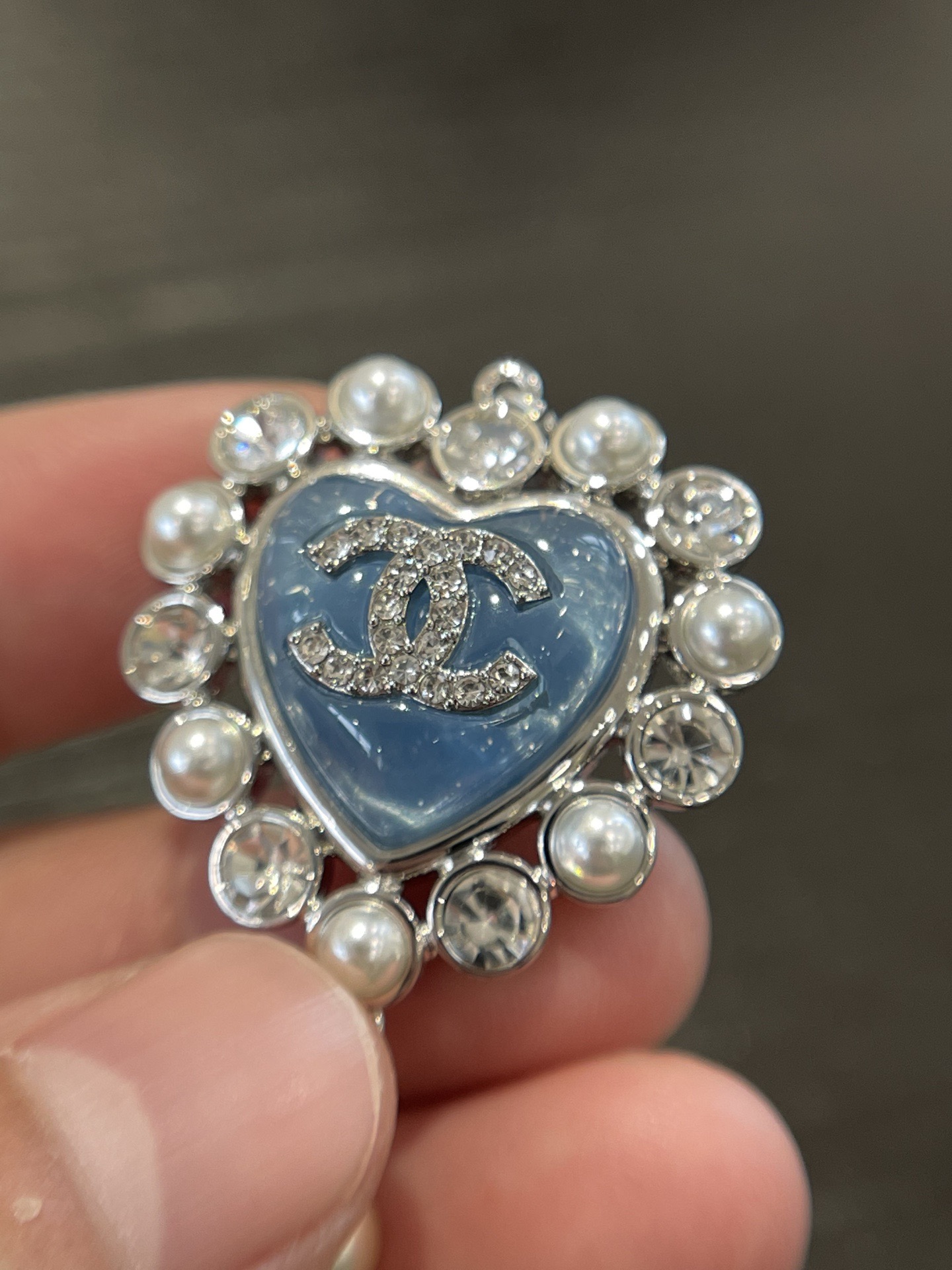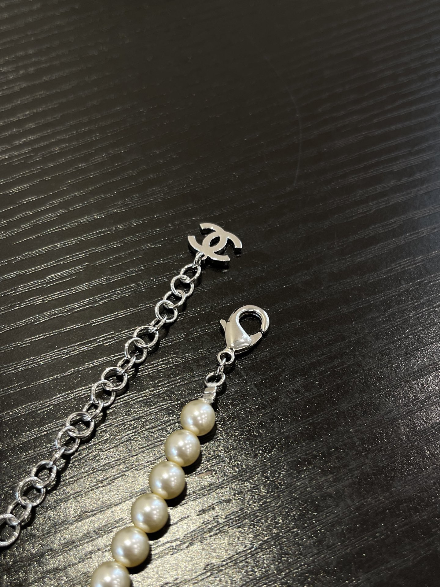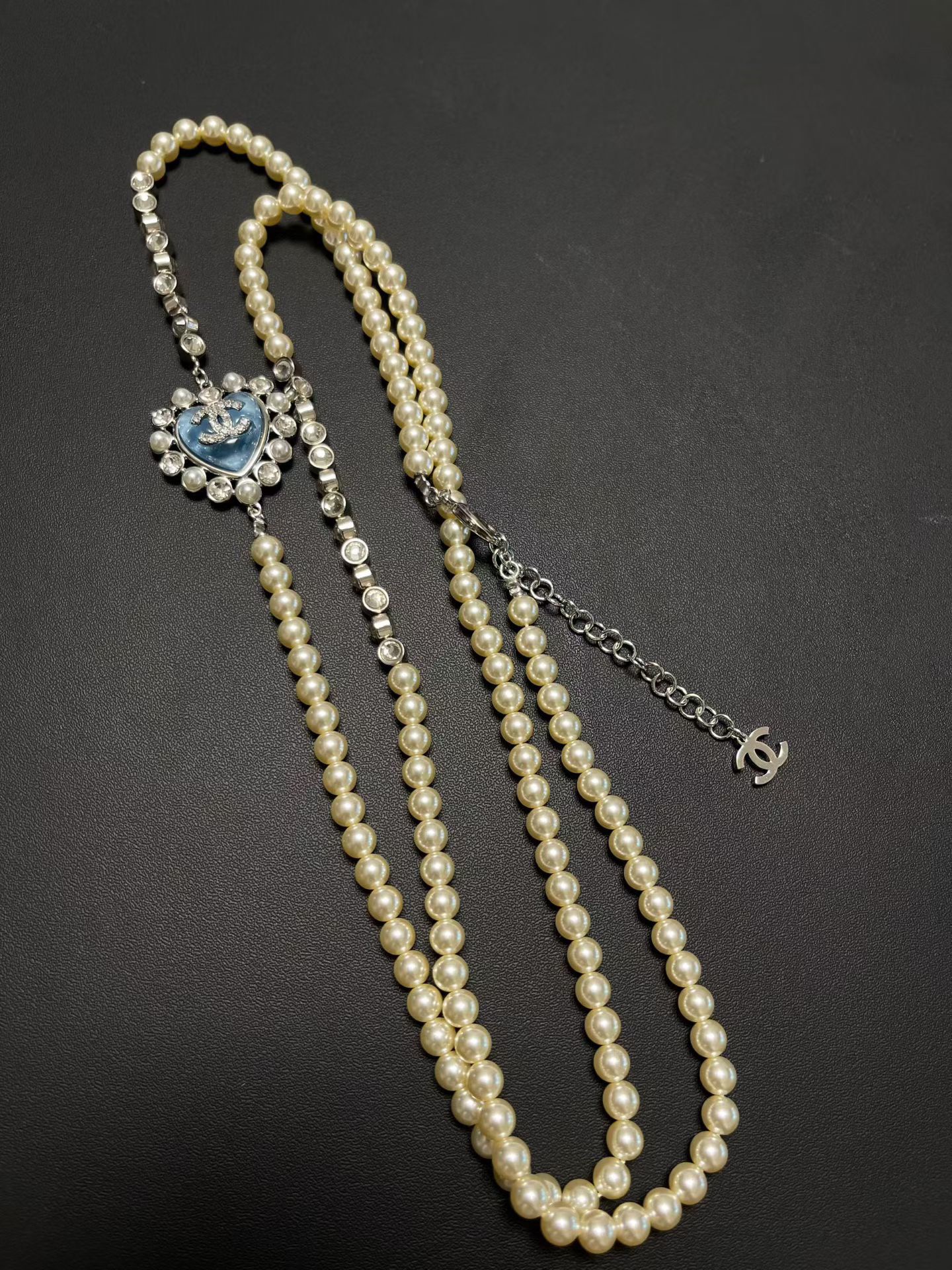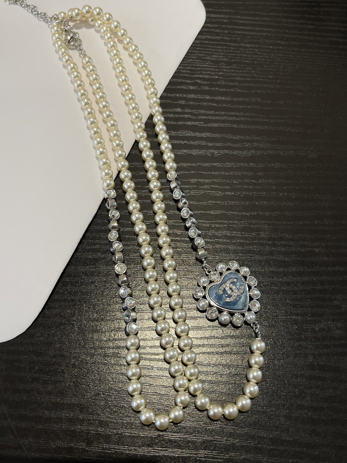 NIGO Chanel 25P New Blue Love Silver Full Diamond Double C Pearl Sweater Chain Advanced Resin #nigo317343