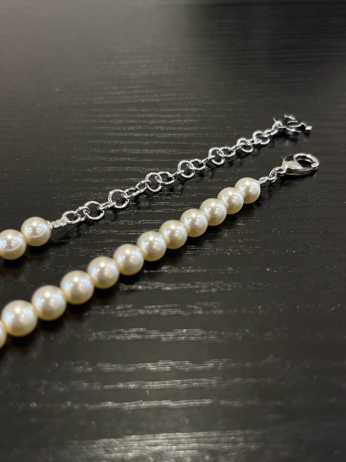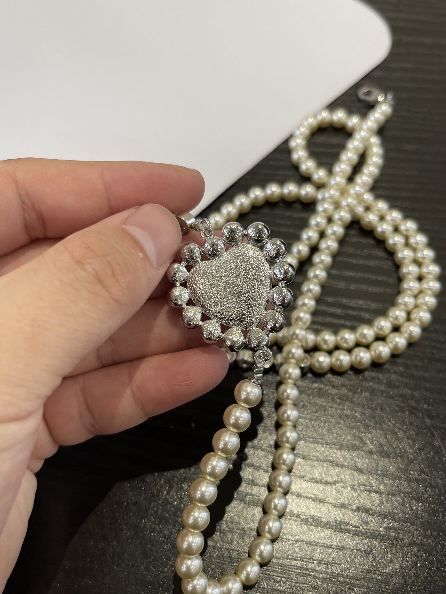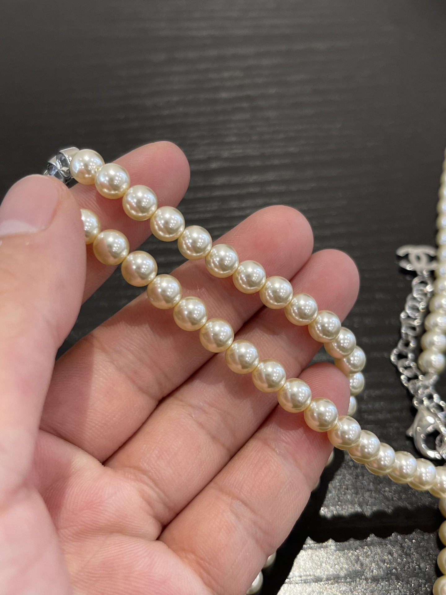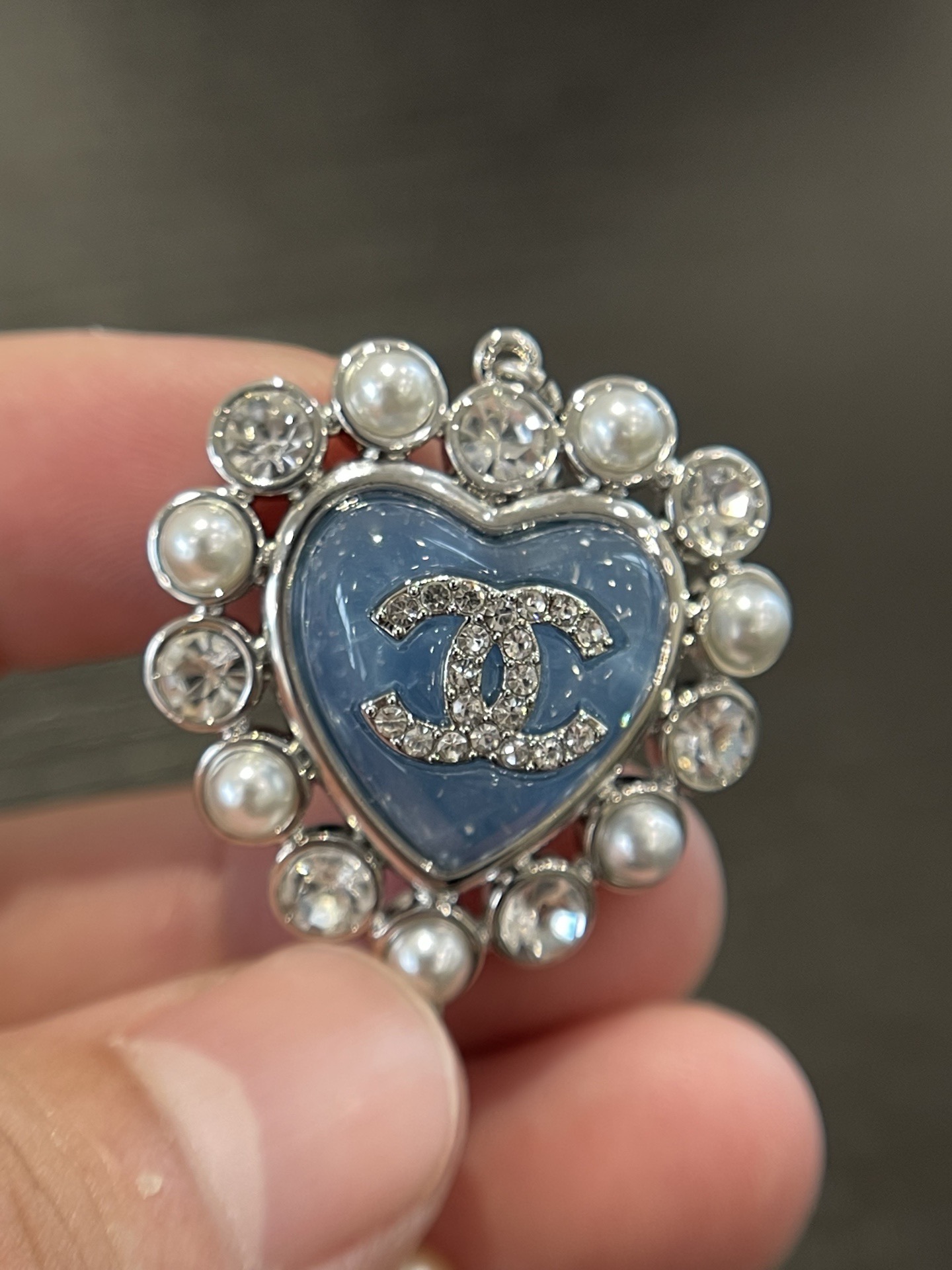 NIGO Chanel 25P New Blue Love Silver Full Diamond Double C Pearl Sweater Chain Advanced Resin #nigo317343
