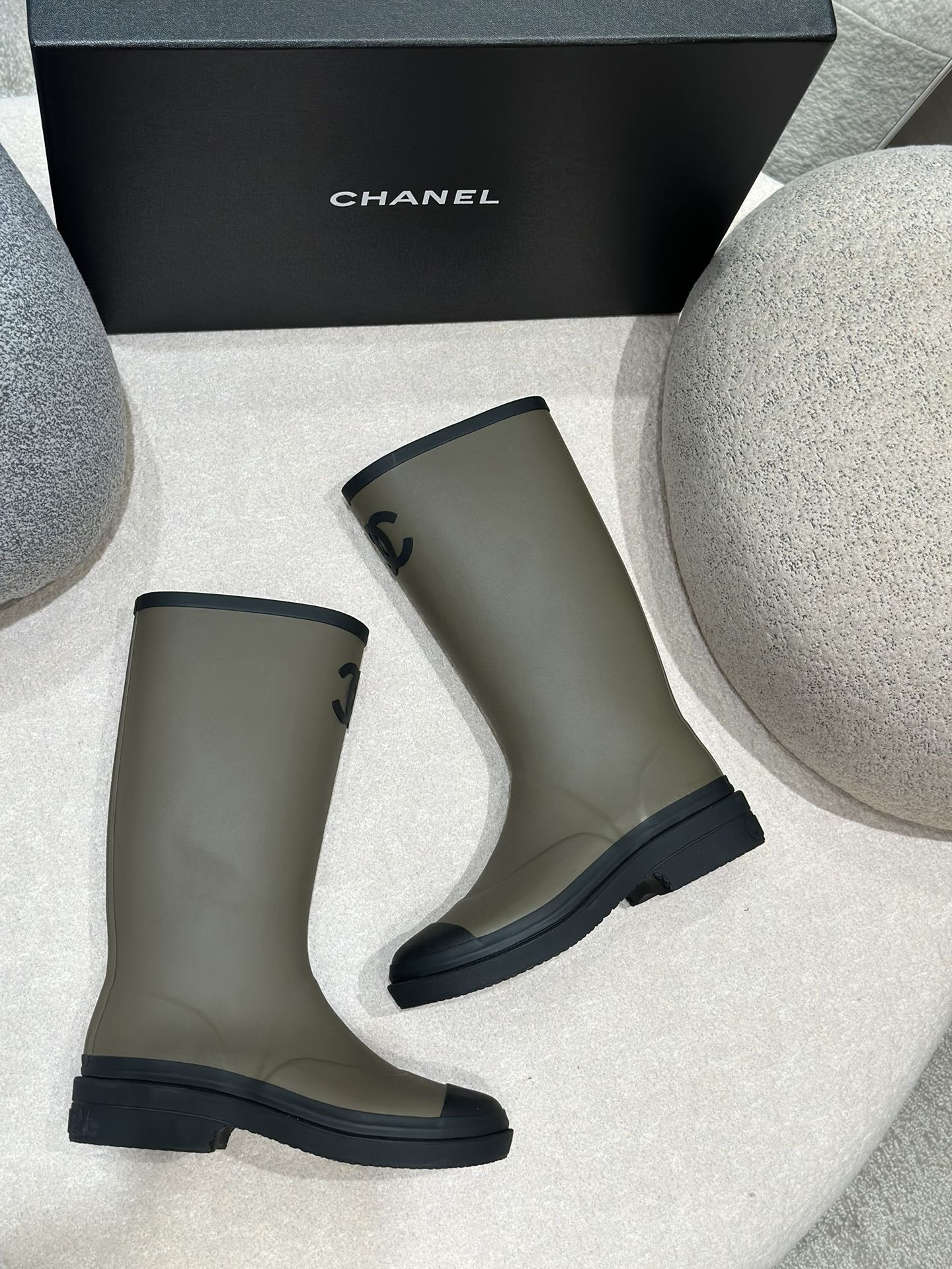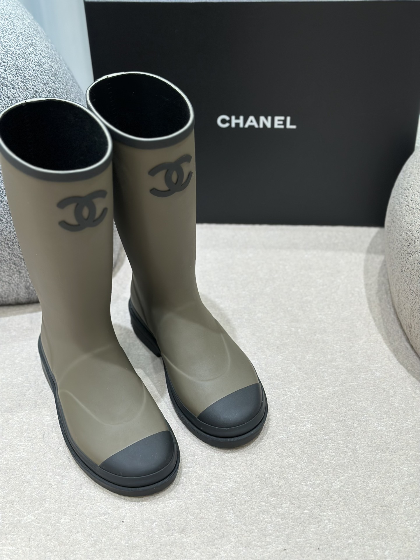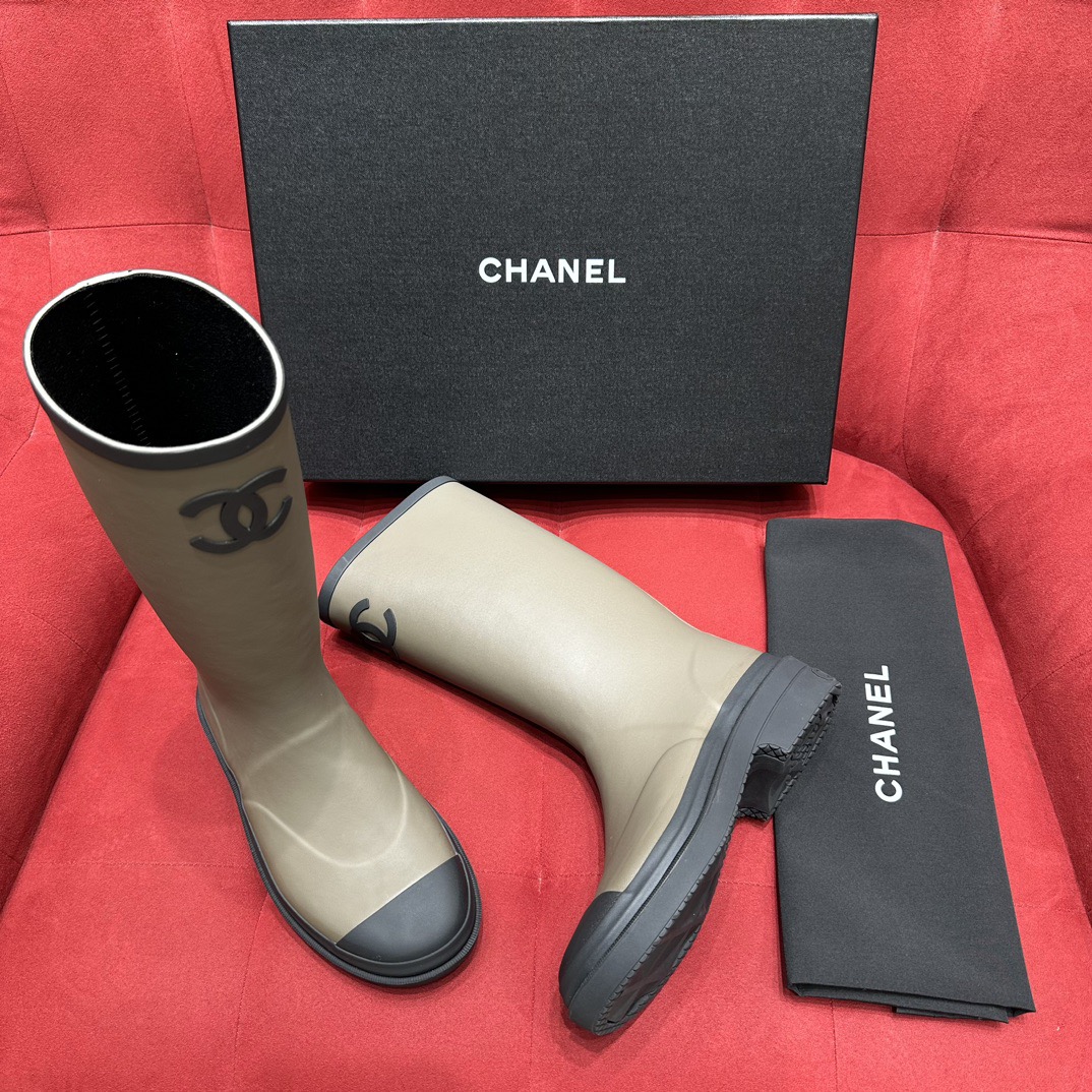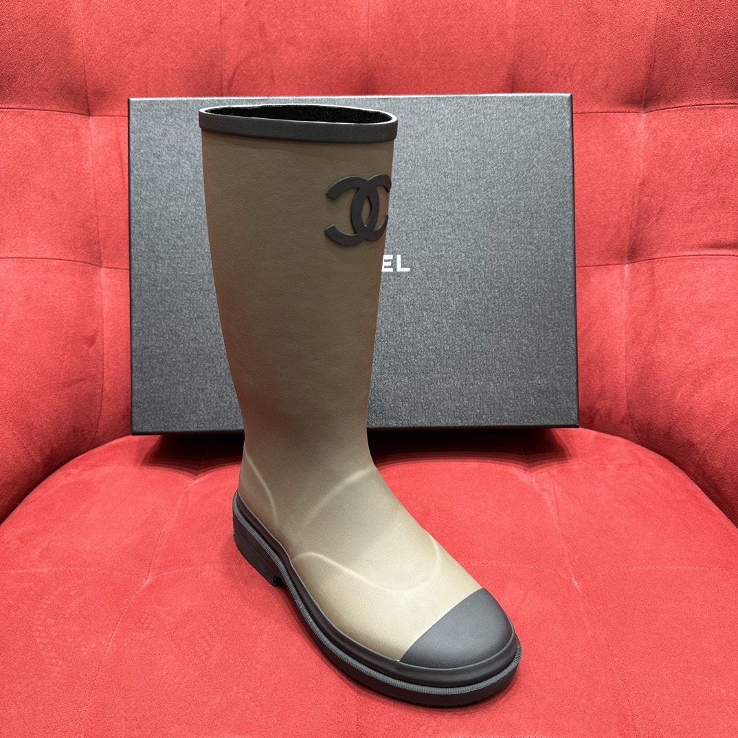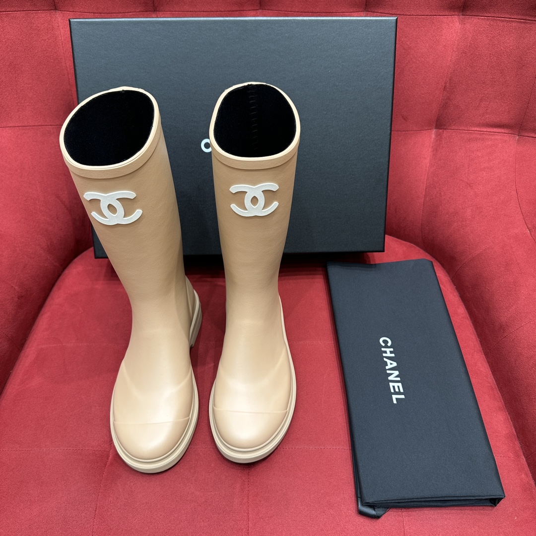 NIGO Chanel 25S Fashion Overalls Tall Boots Women's Beige Anti-Slip Rain Boots #nigo332426