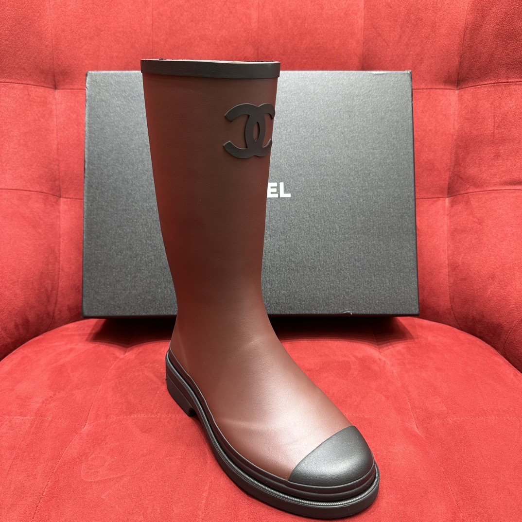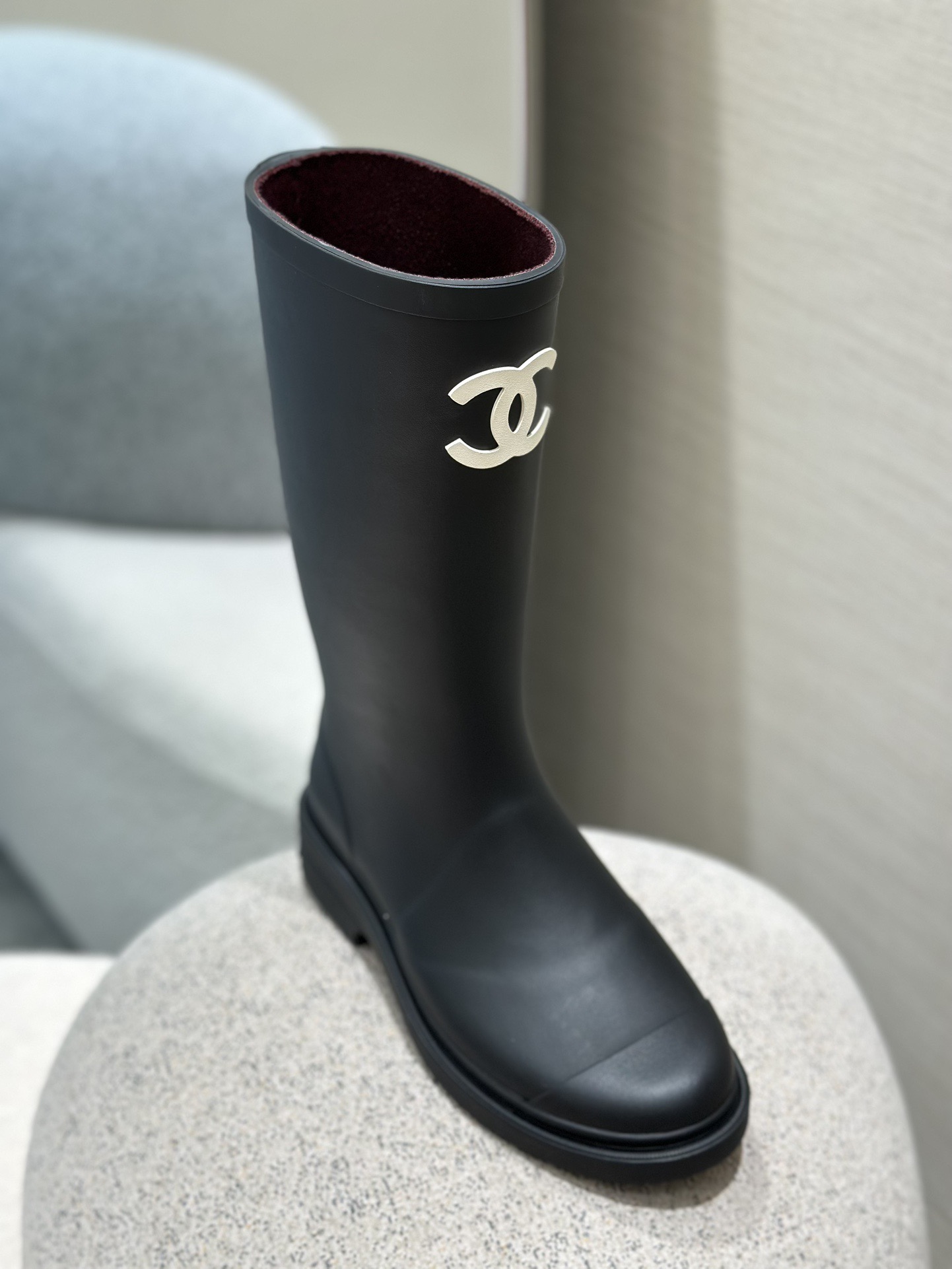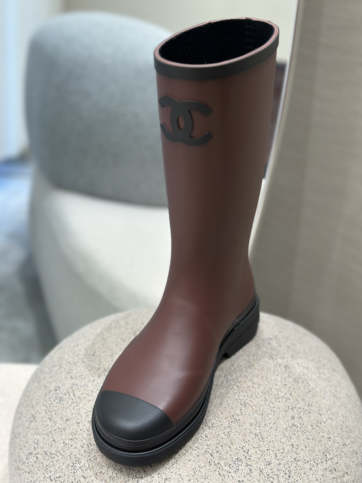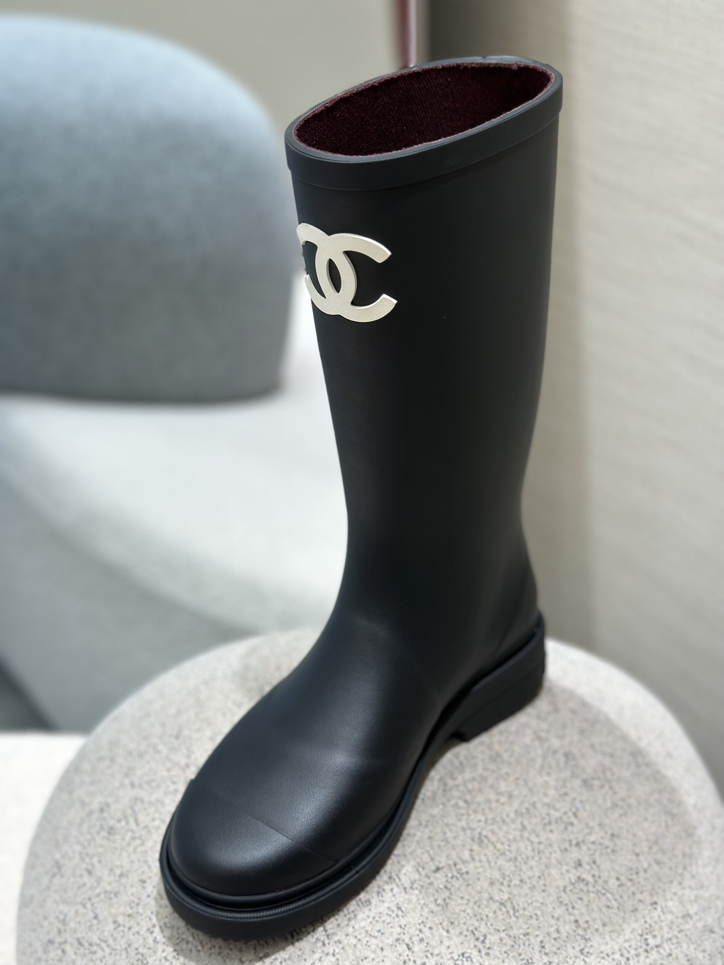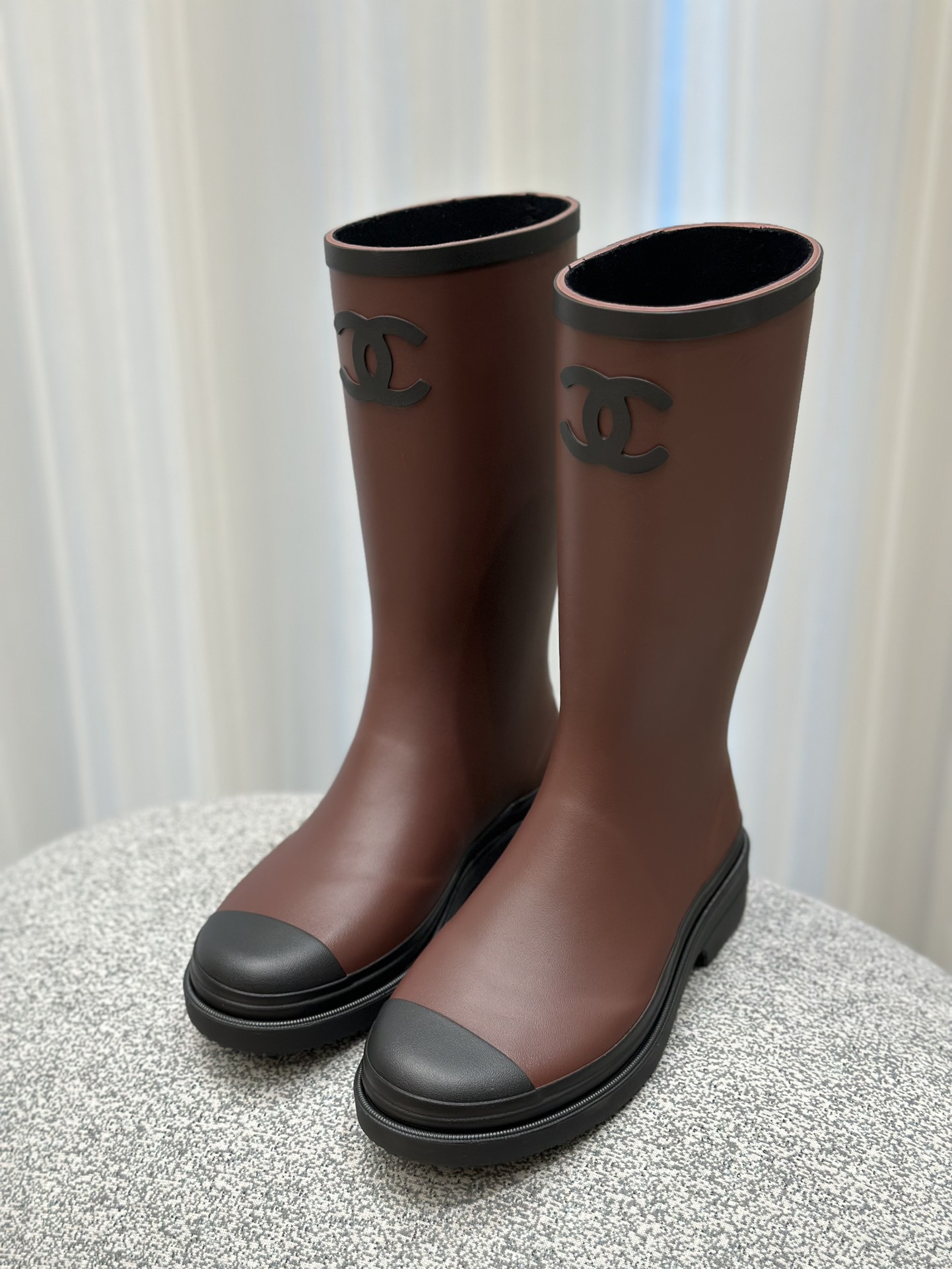 NIGO Chanel 25S Fashion Overalls Tall Boots Women's Beige Anti-Slip Rain Boots #nigo332426