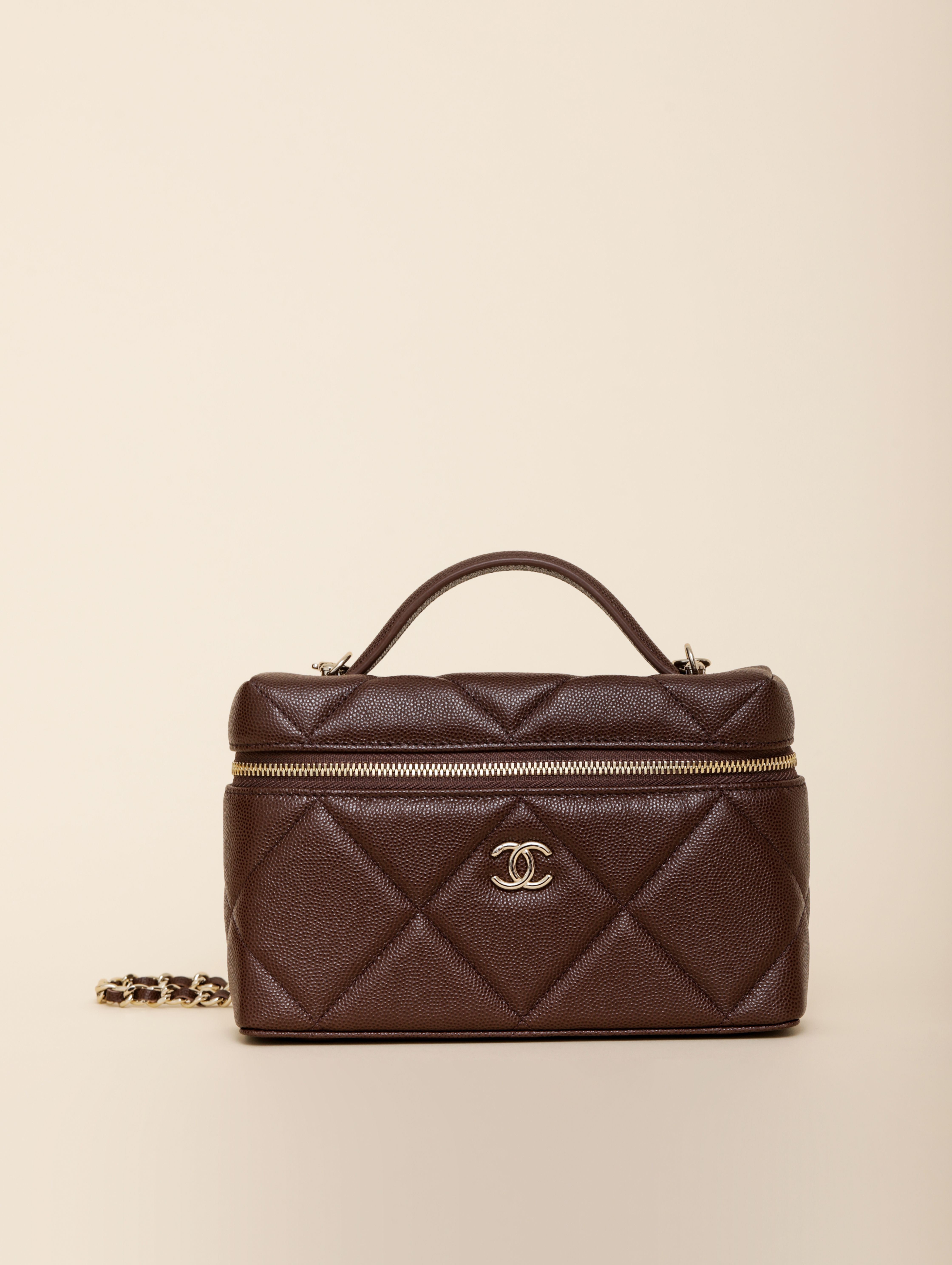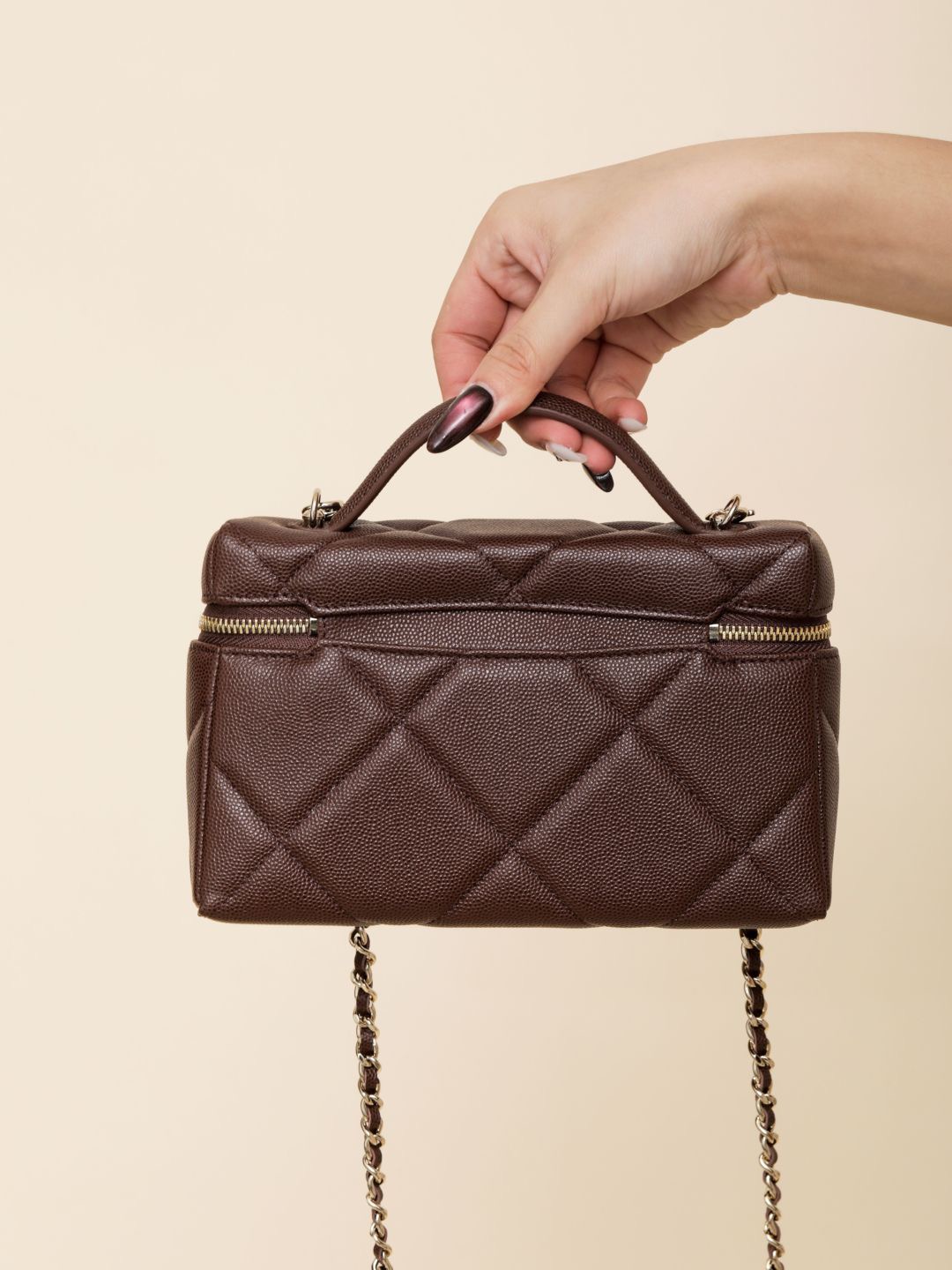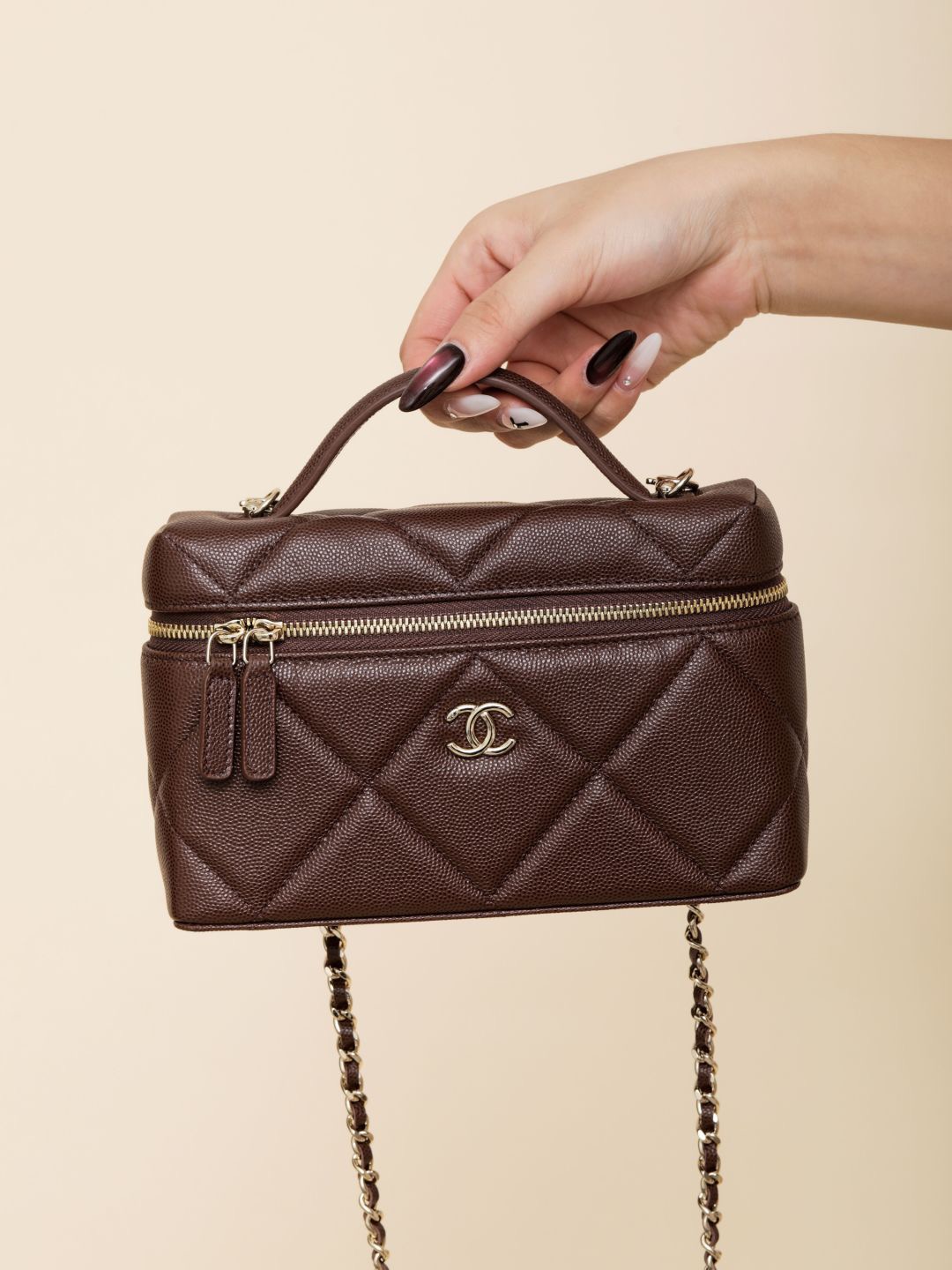 NIGO Chanel Chain Dressing Table Grained Shiny Calfskin with Gold Metal Dark Brown Fashion #nigo332778