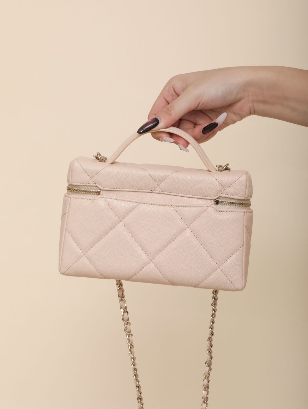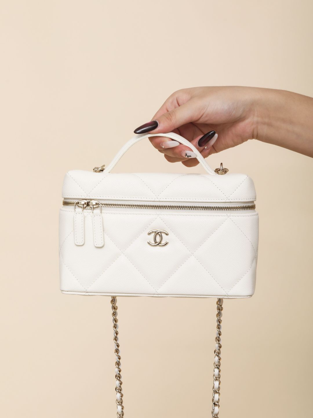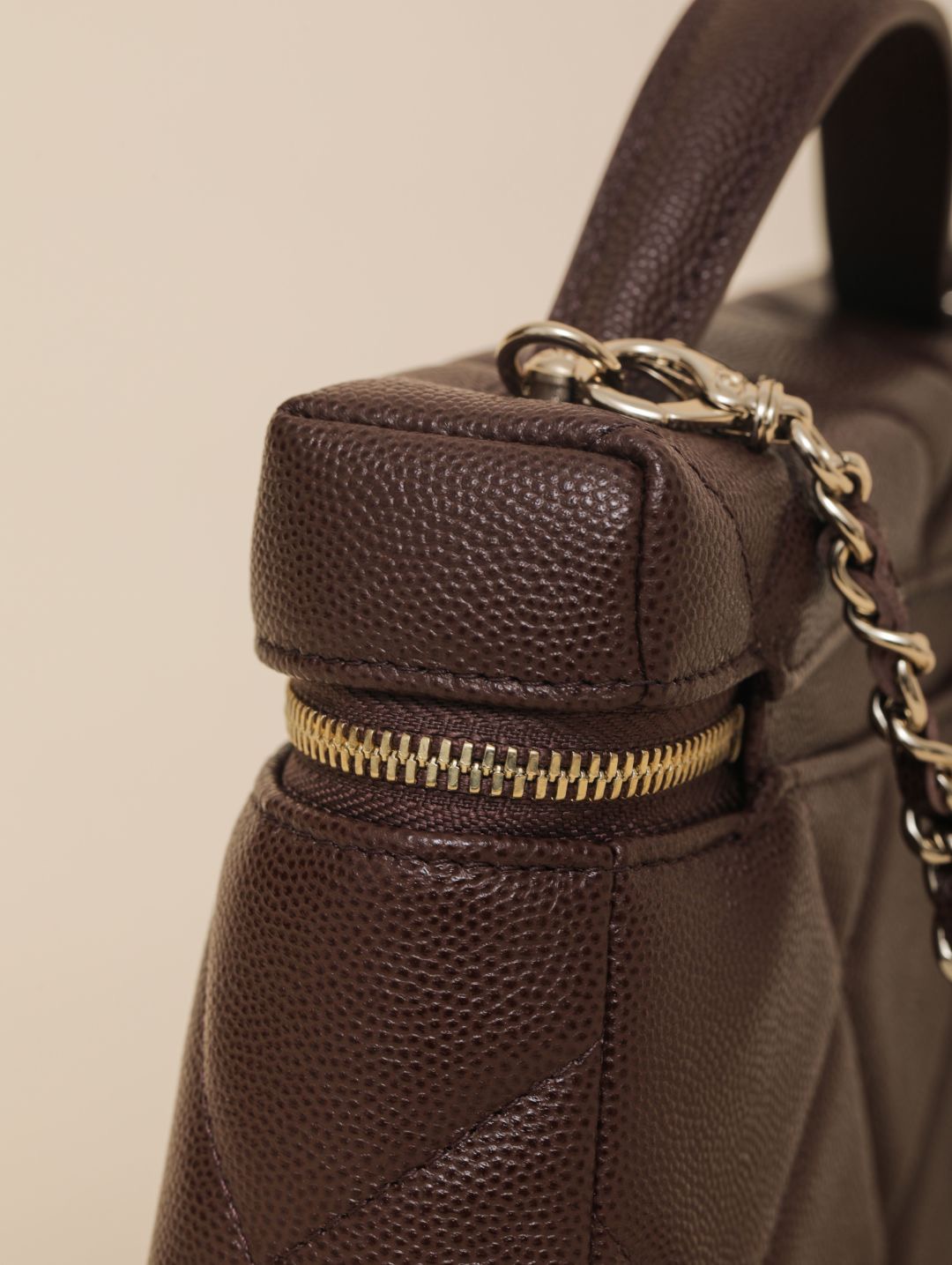 NIGO Chanel Chain Dressing Table Grained Shiny Calfskin with Gold Metal Dark Brown Fashion #nigo332778