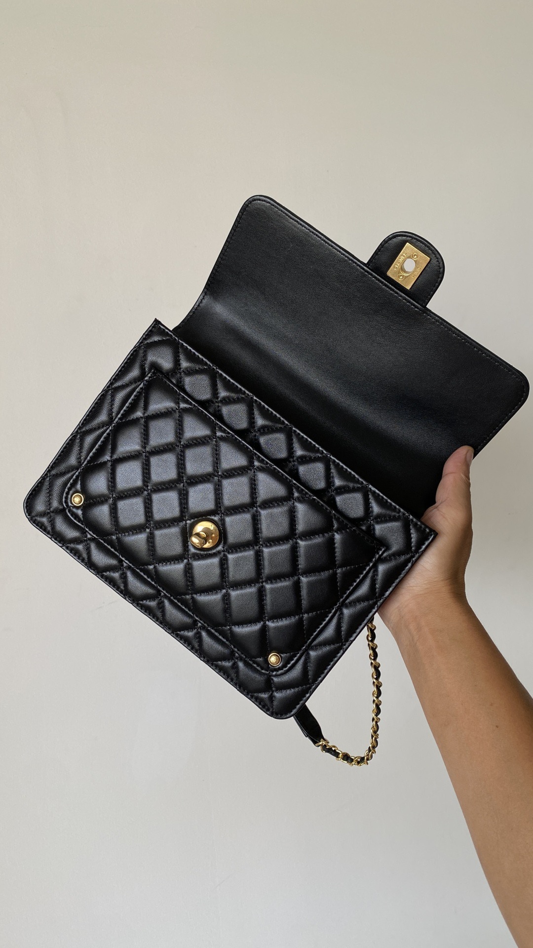 NIGO Chanel Chain WalletIn Polished Lambskin And Gold Tone Metal Retro College Style Backpack #nigo332641