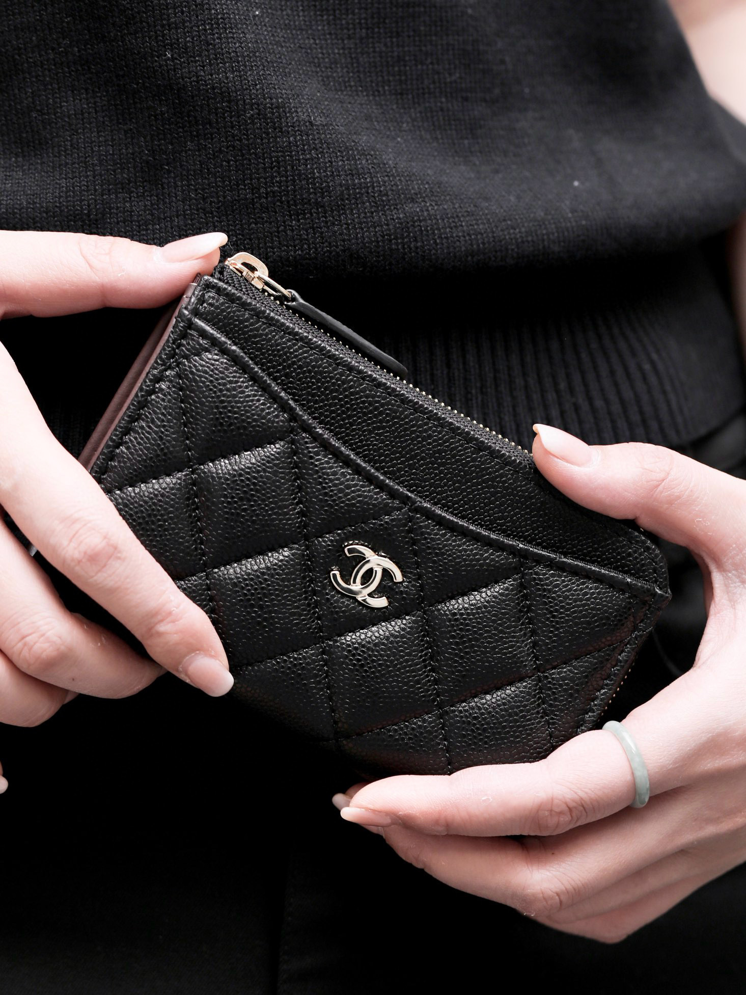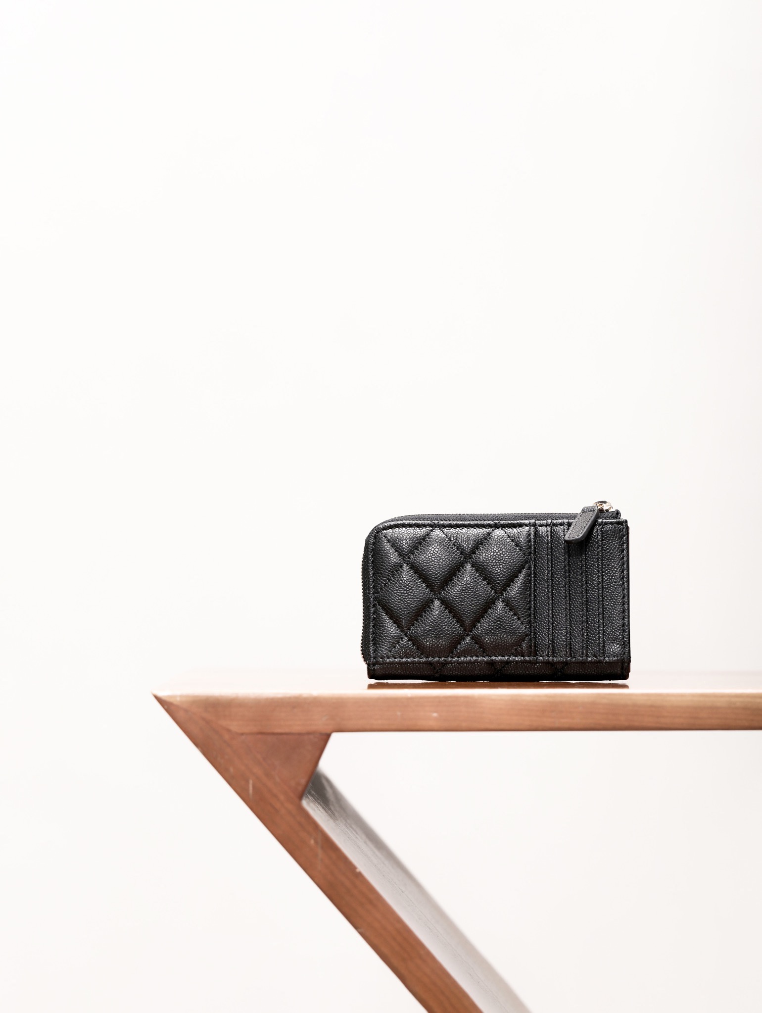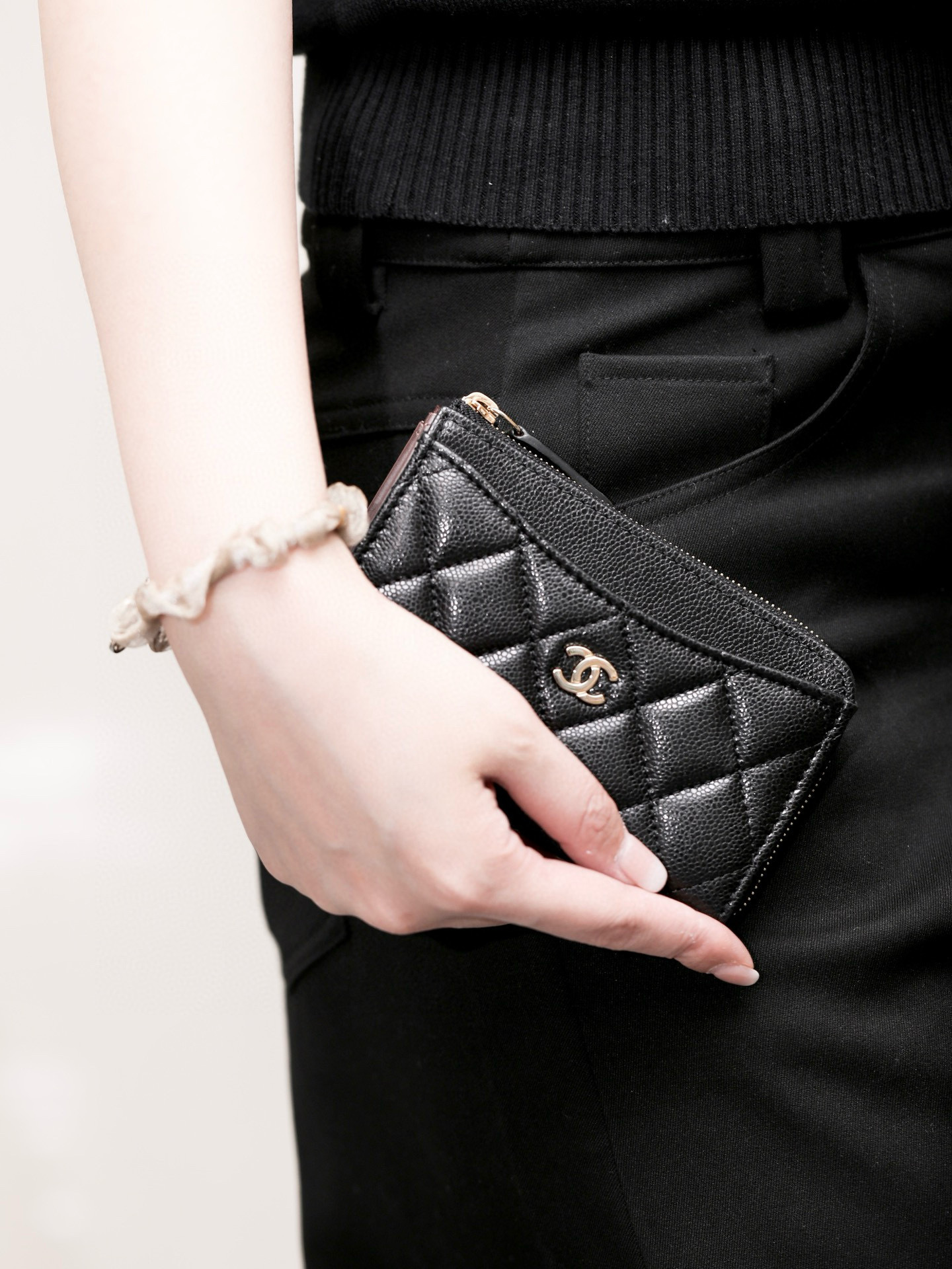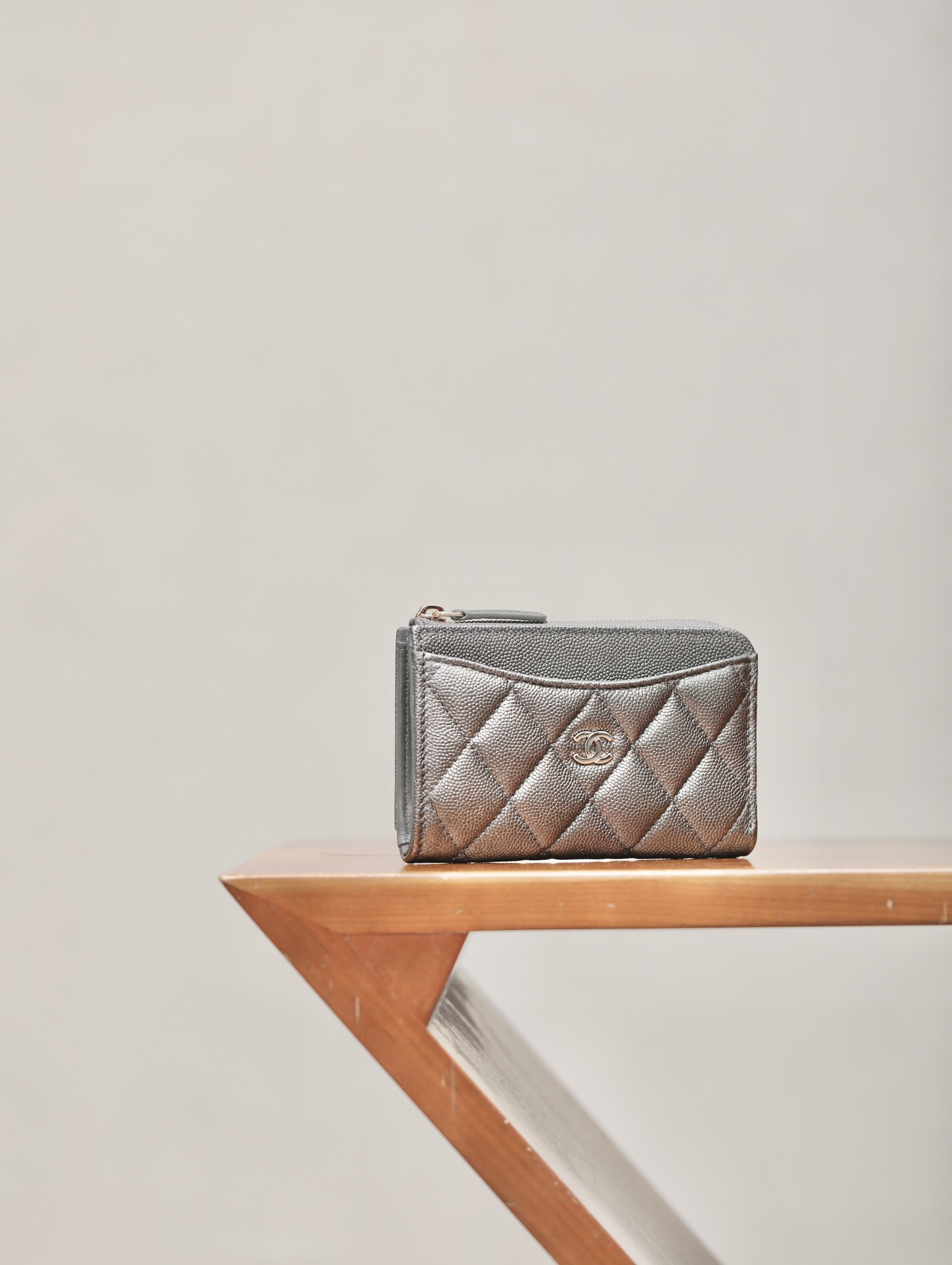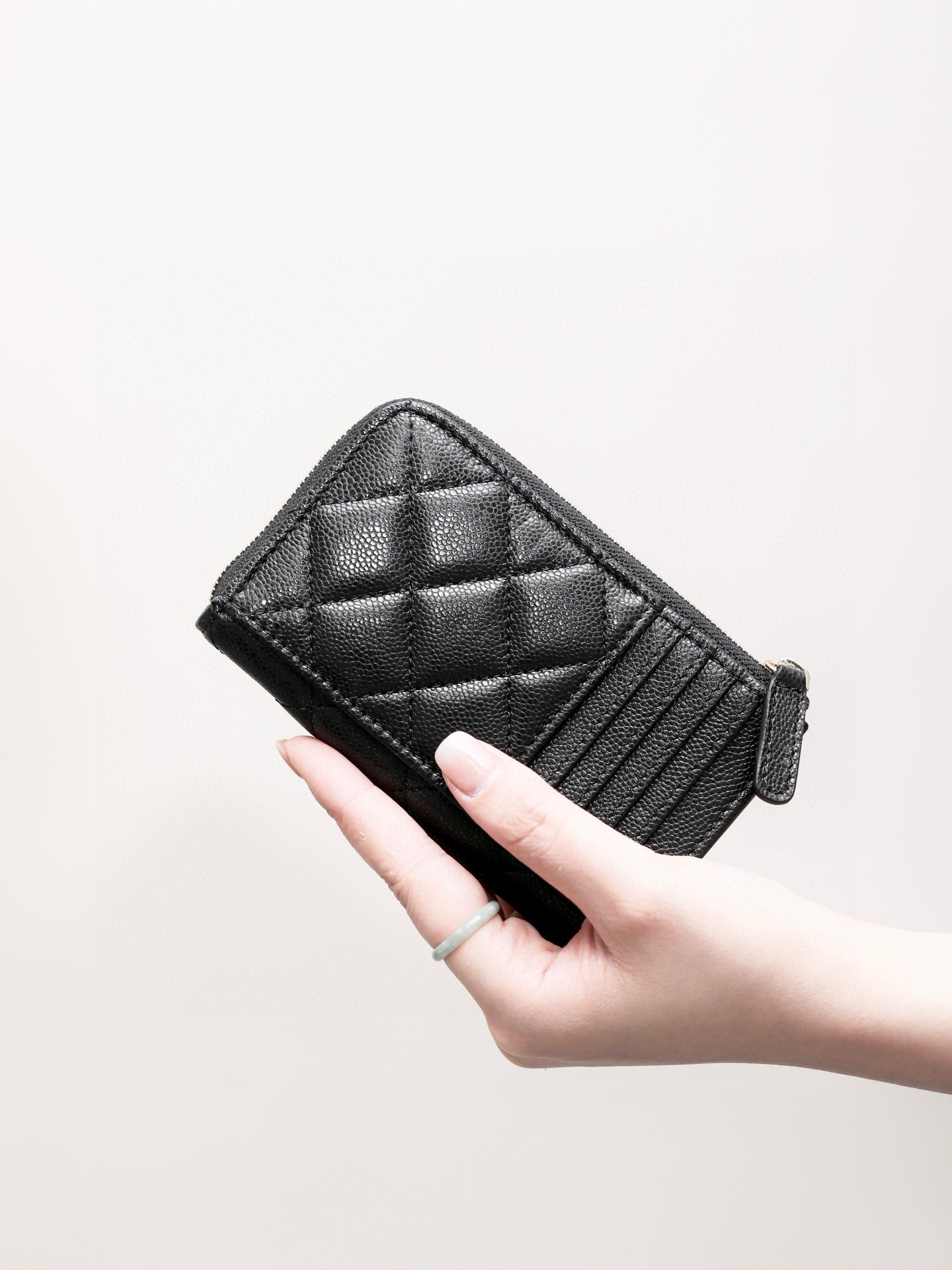 NIGO Chanel Diamond Pattern Design Brand Logo Grained Calfskin Card Holder Wallet #nigo262345