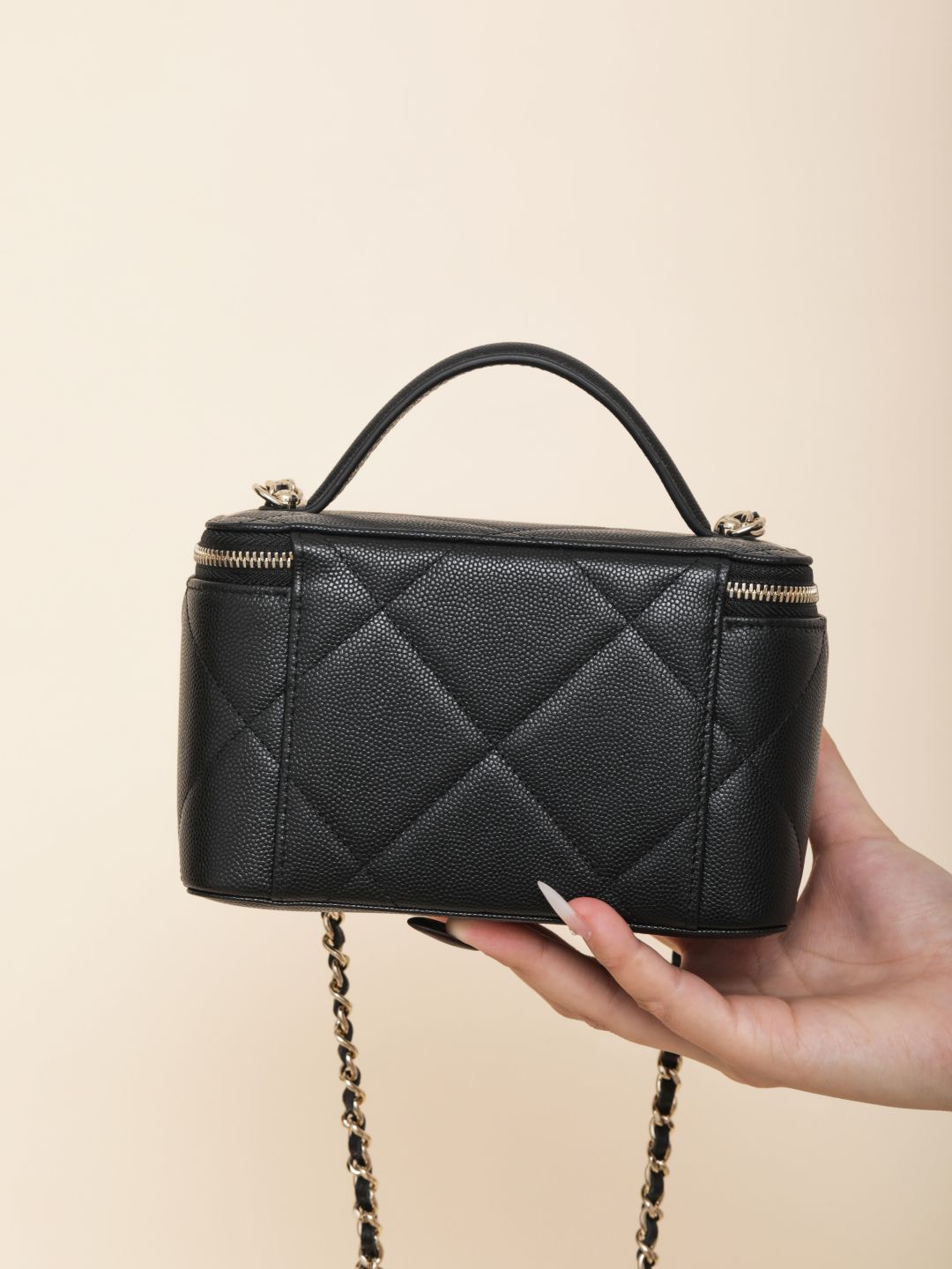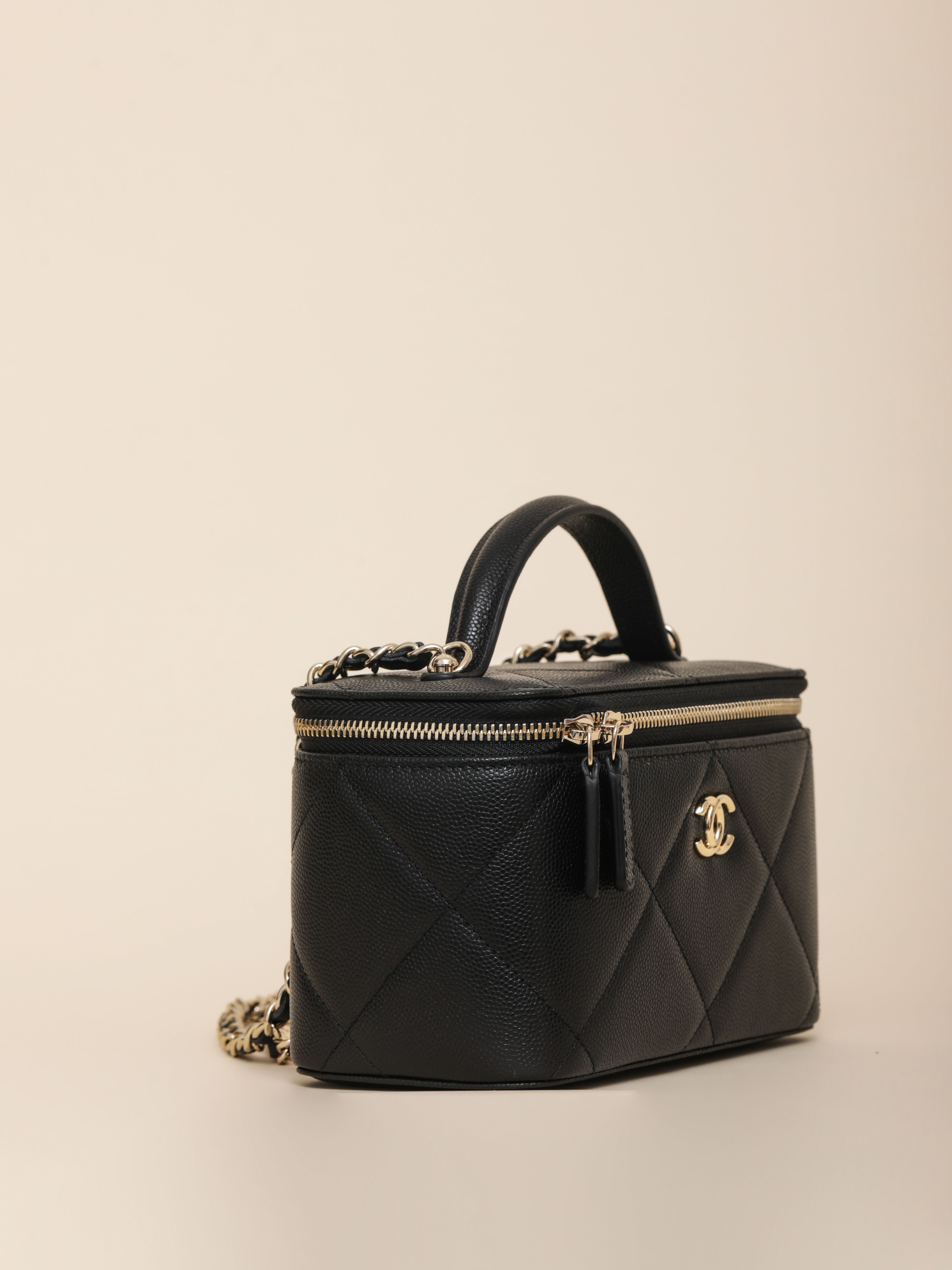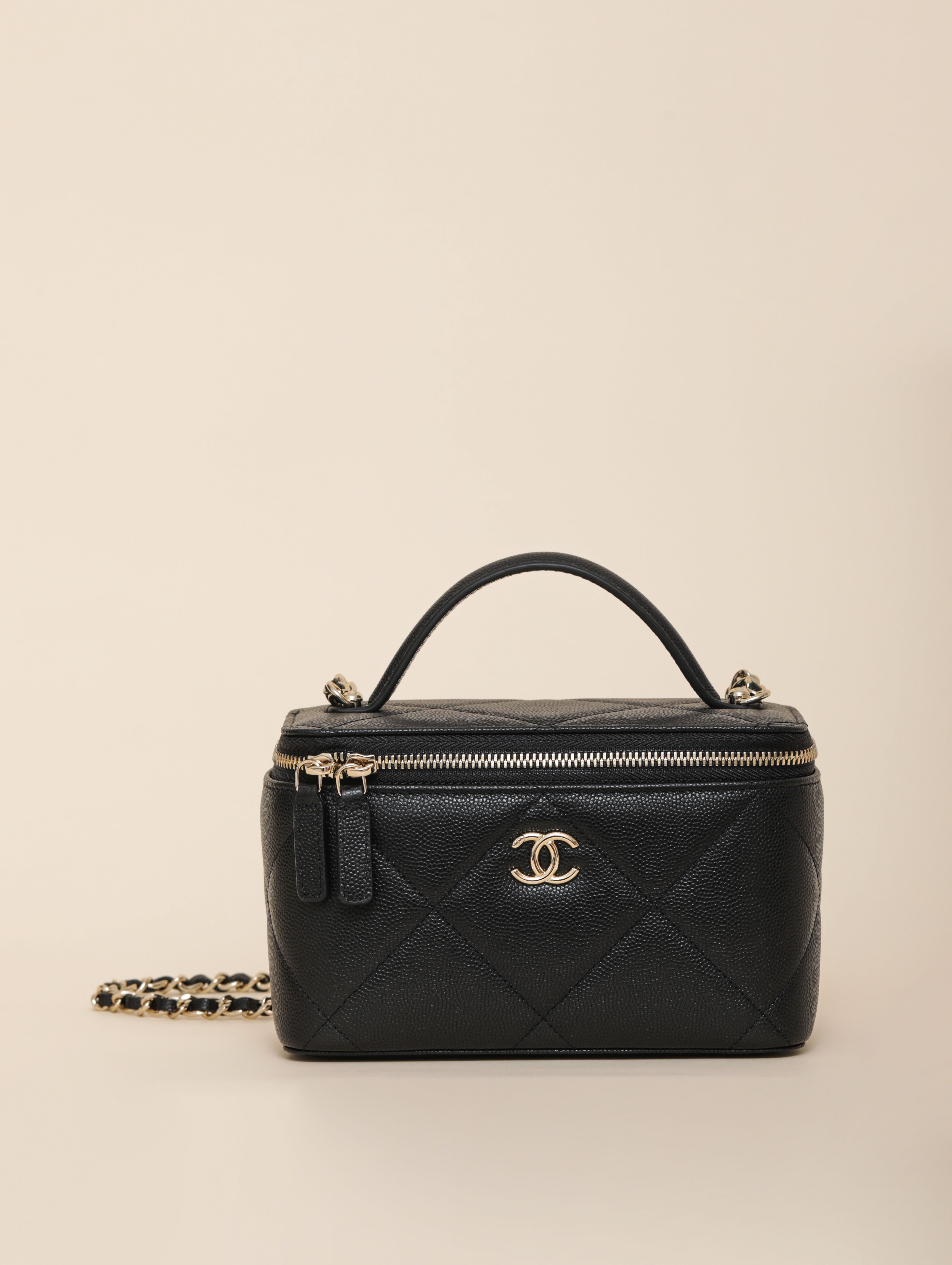 NIGO Chanel Long Vanity With Chain Grained Shiny Calfskin Gold Tone Metal Black #nigo332777