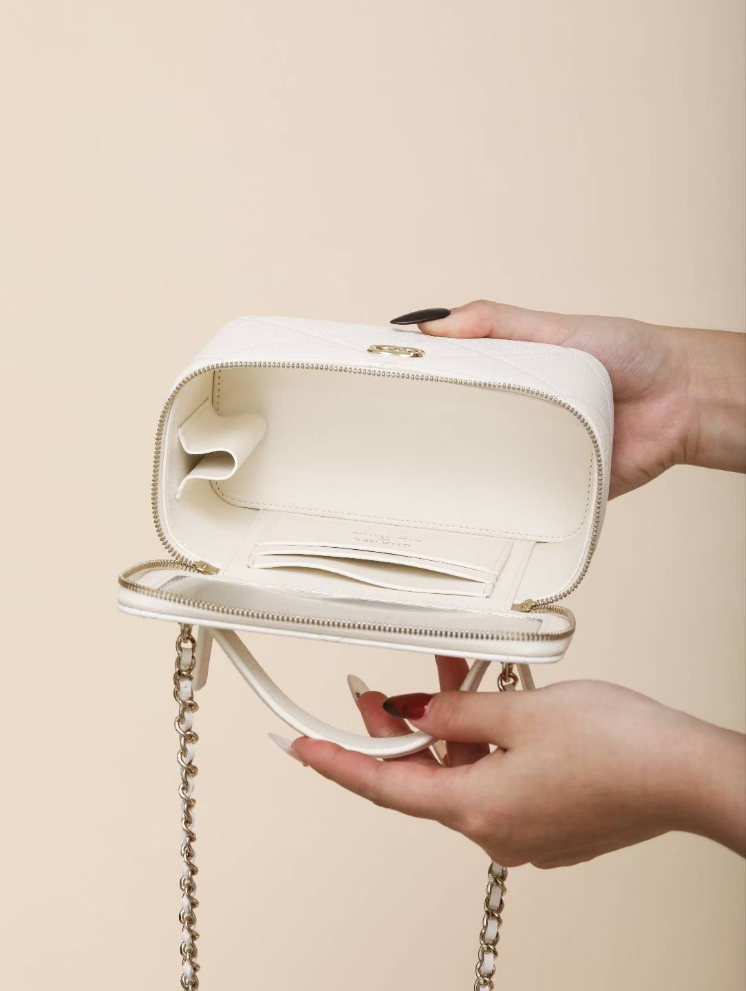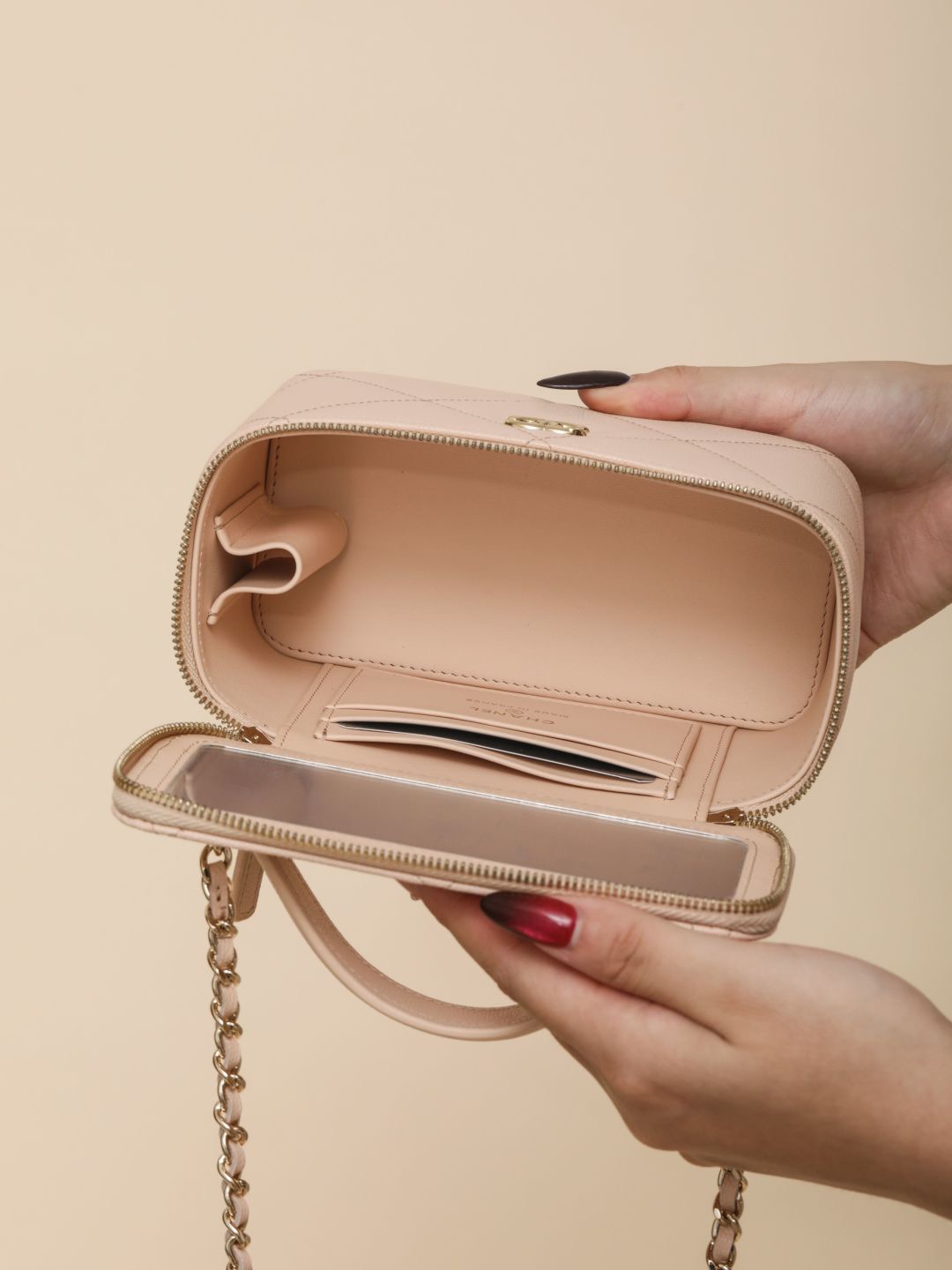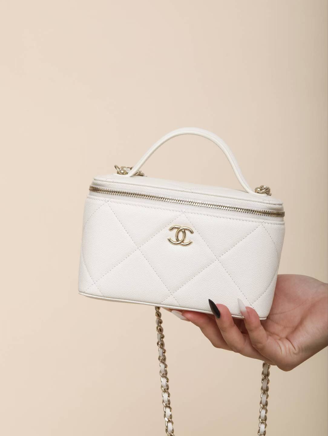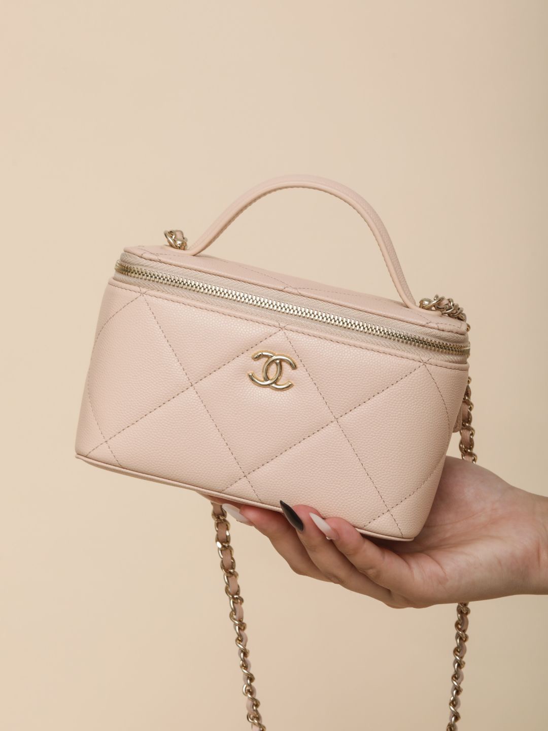 NIGO Chanel Long Vanity With Chain Grained Shiny Calfskin Gold Tone Metal Black #nigo332777