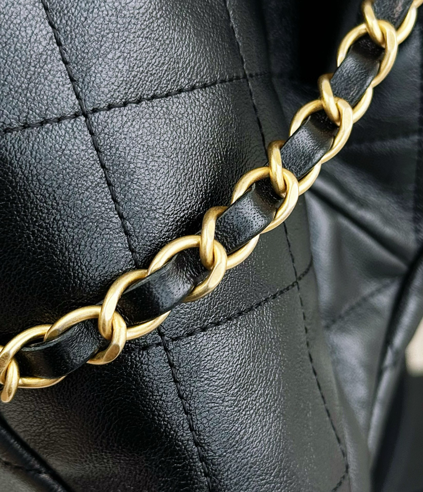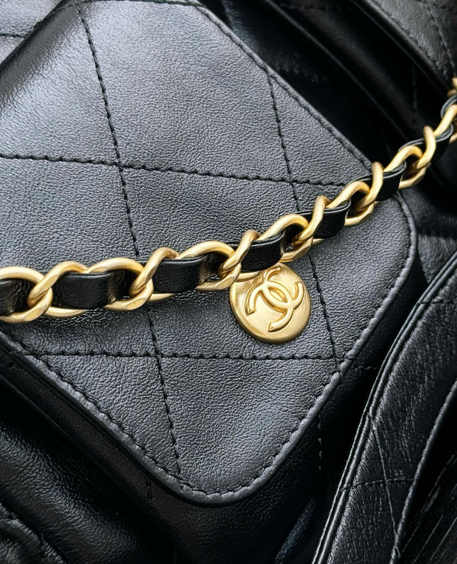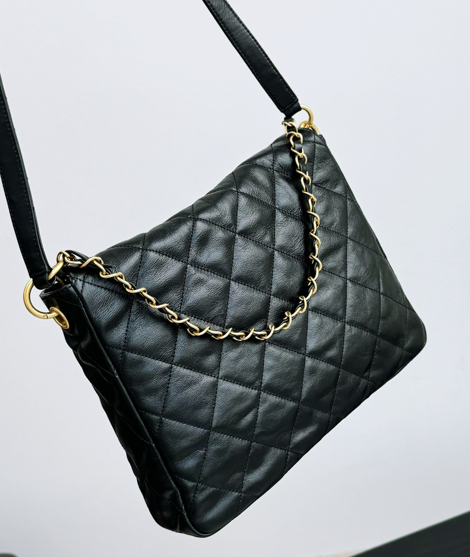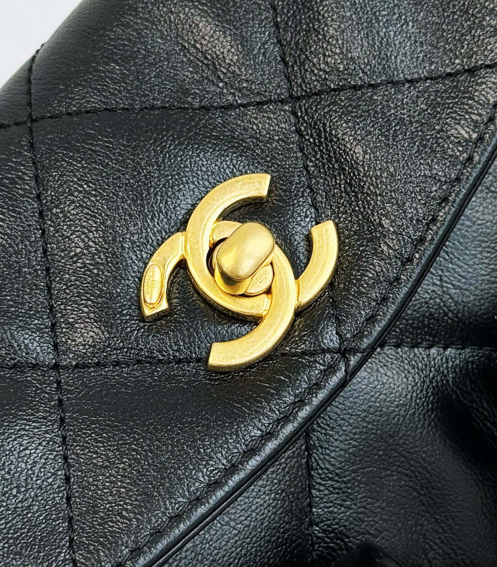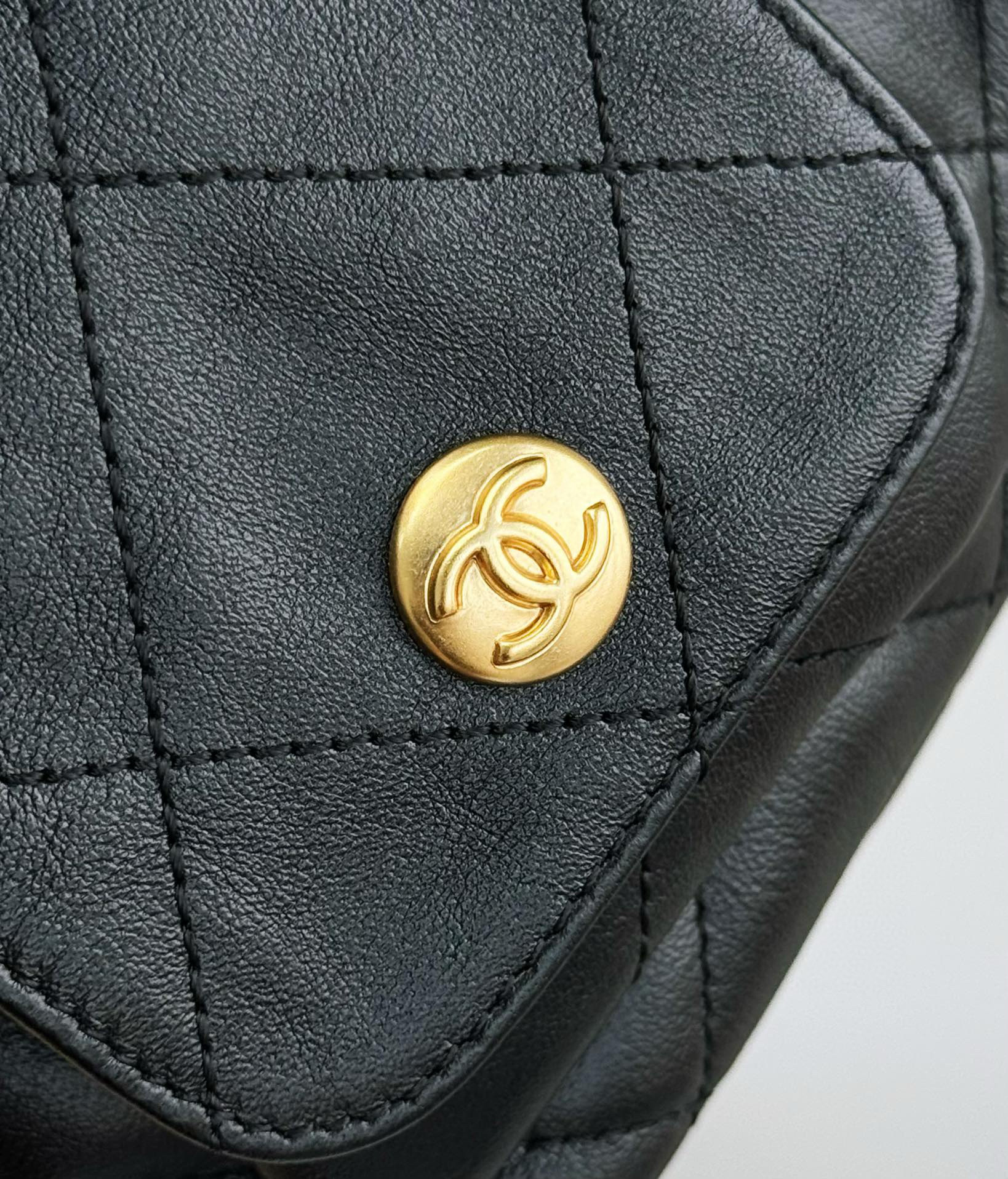 NIGO Chanel Supple Twins Women's Black Diamond Pattern Gold Buckle Chain Cowhide Shoulder Crossbody Bag #nigo99148