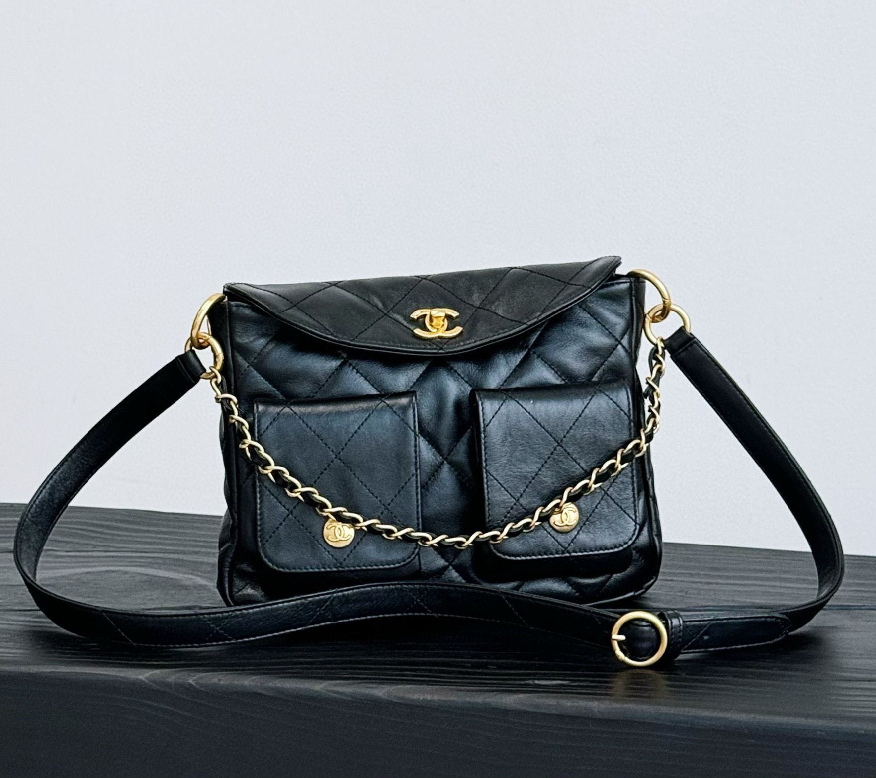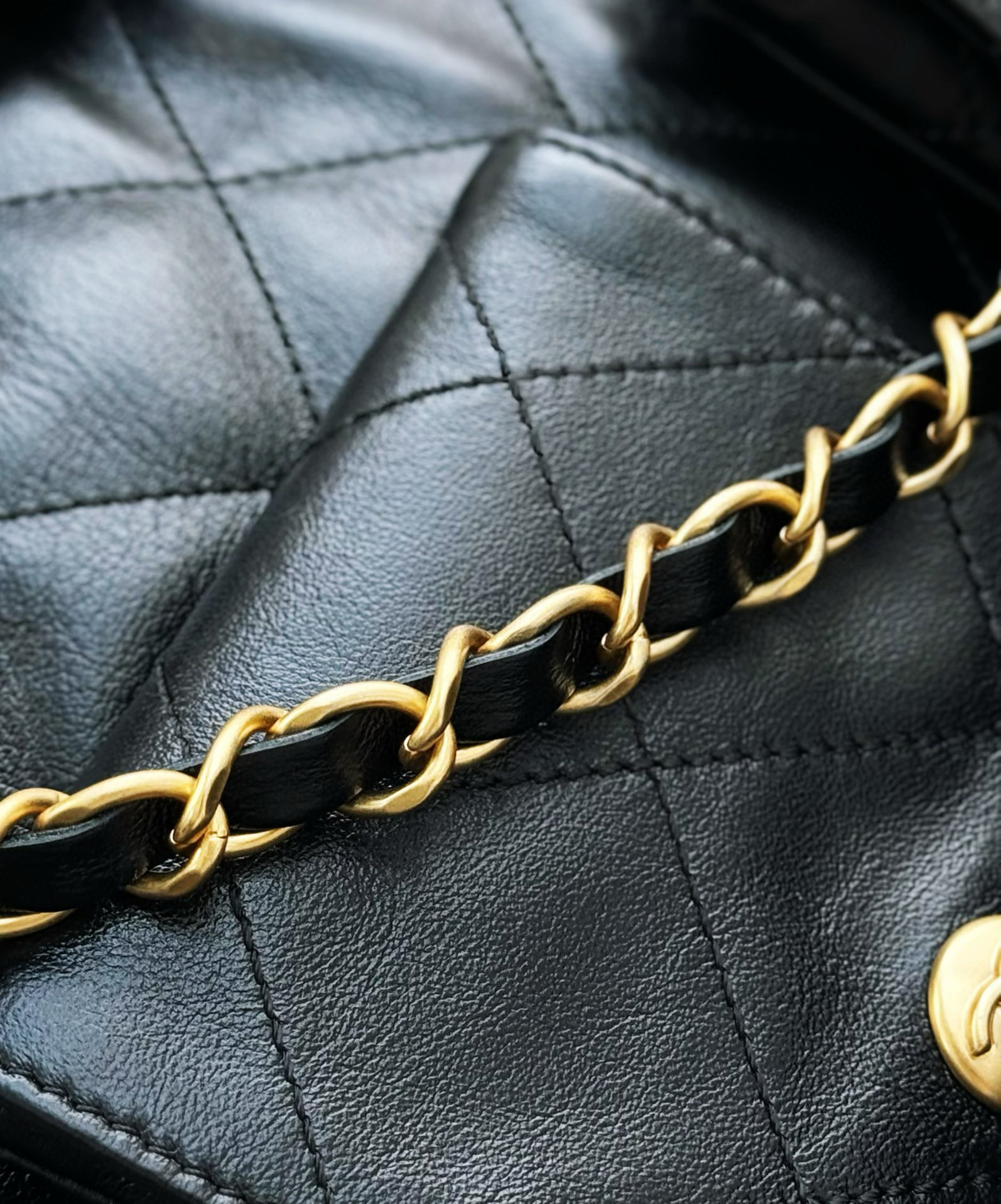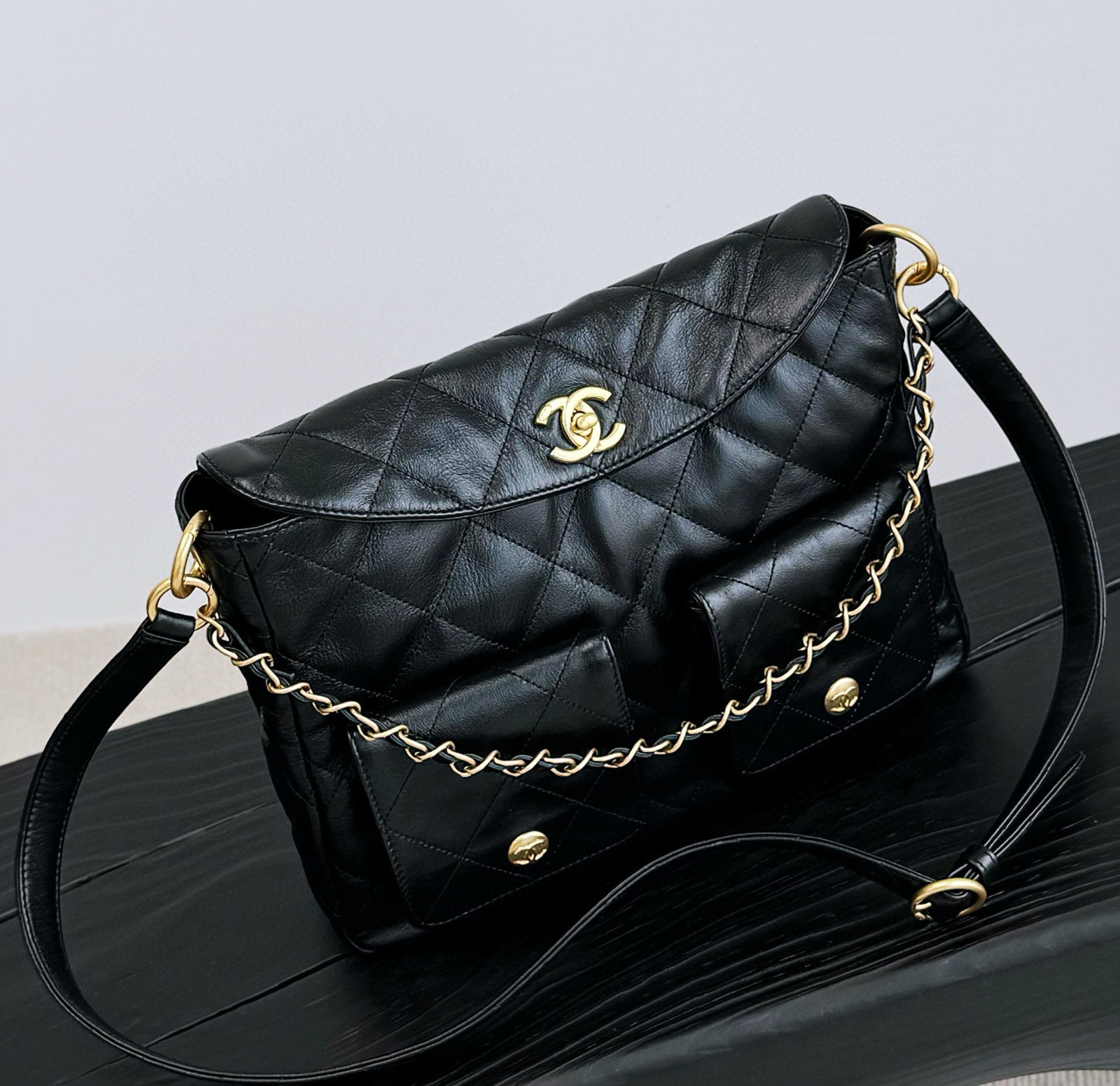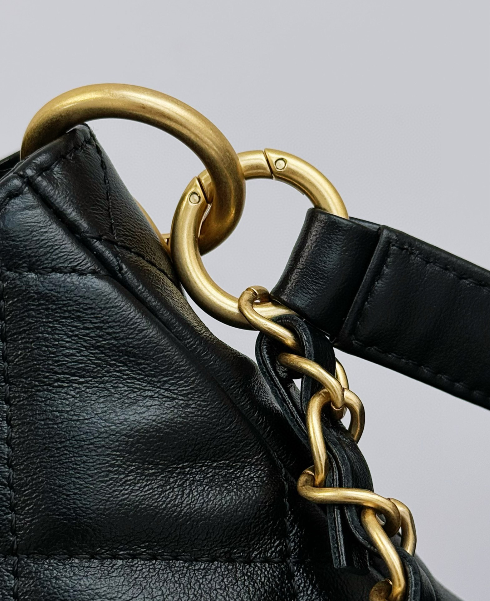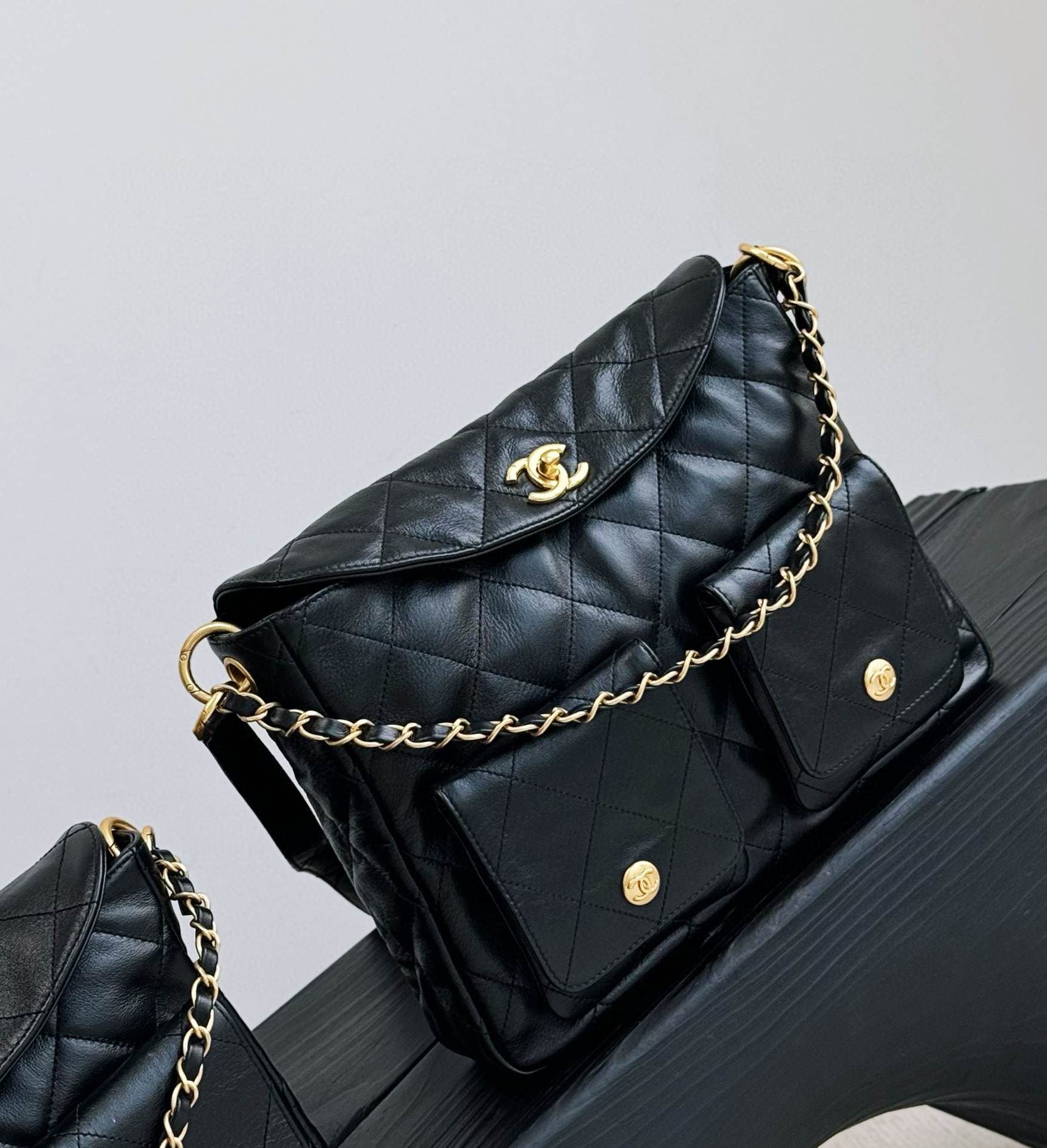 NIGO Chanel Supple Twins Women's Black Diamond Pattern Gold Buckle Chain Cowhide Shoulder Crossbody Bag #nigo99148