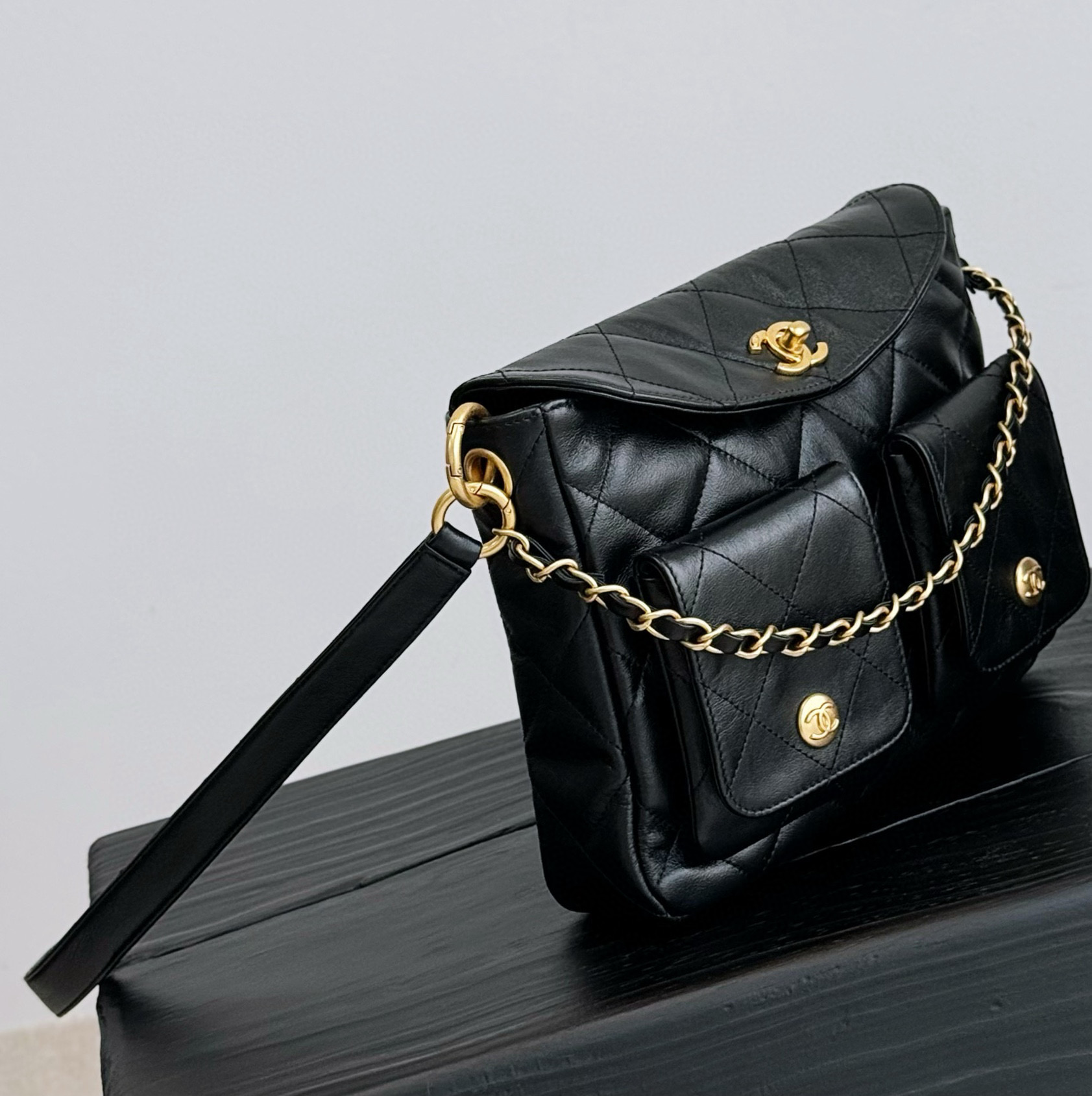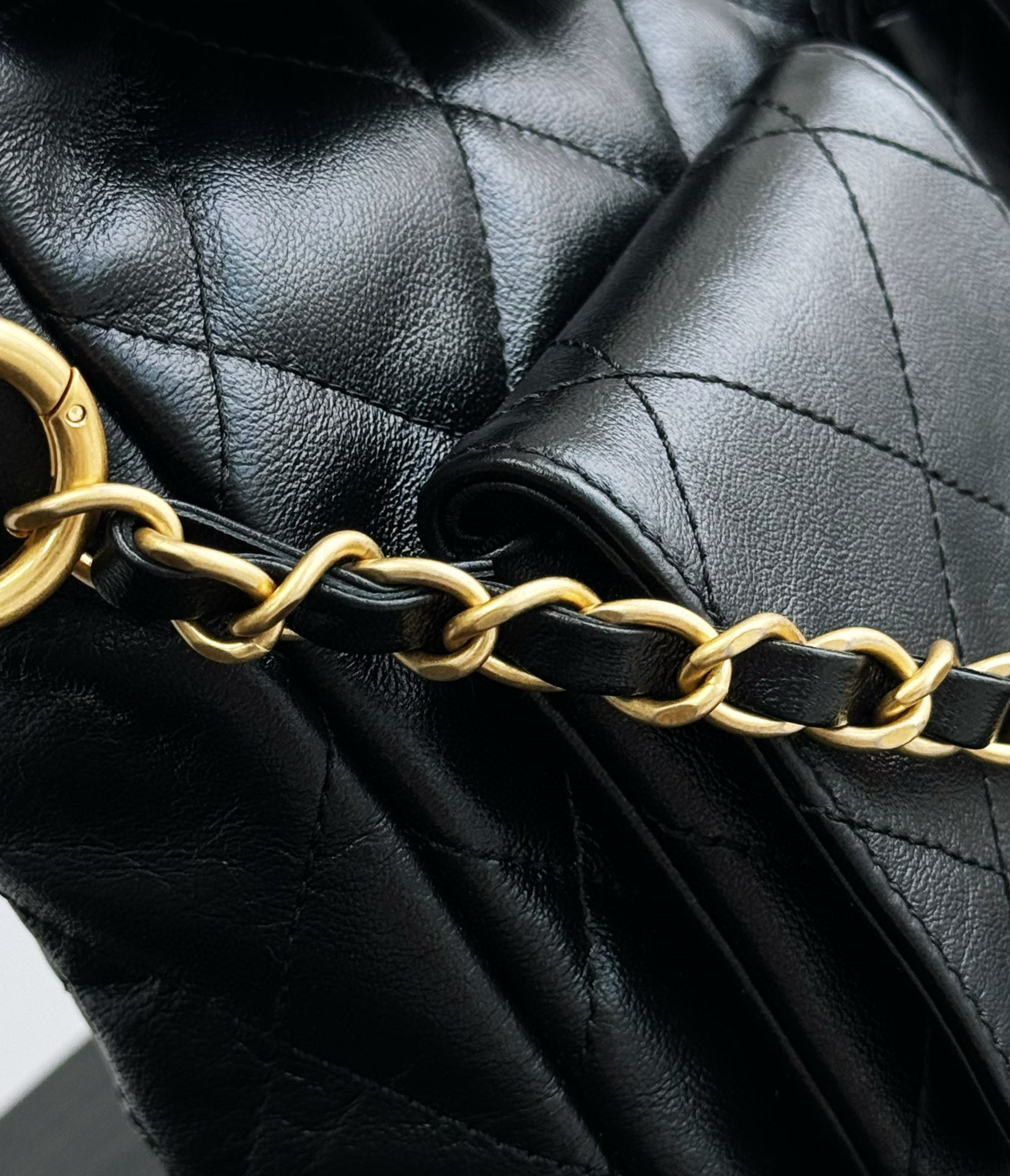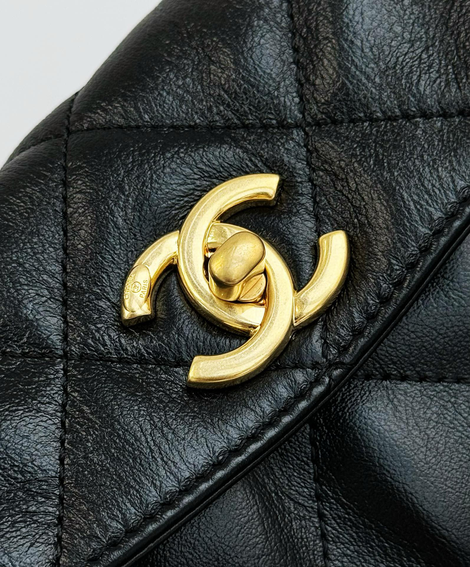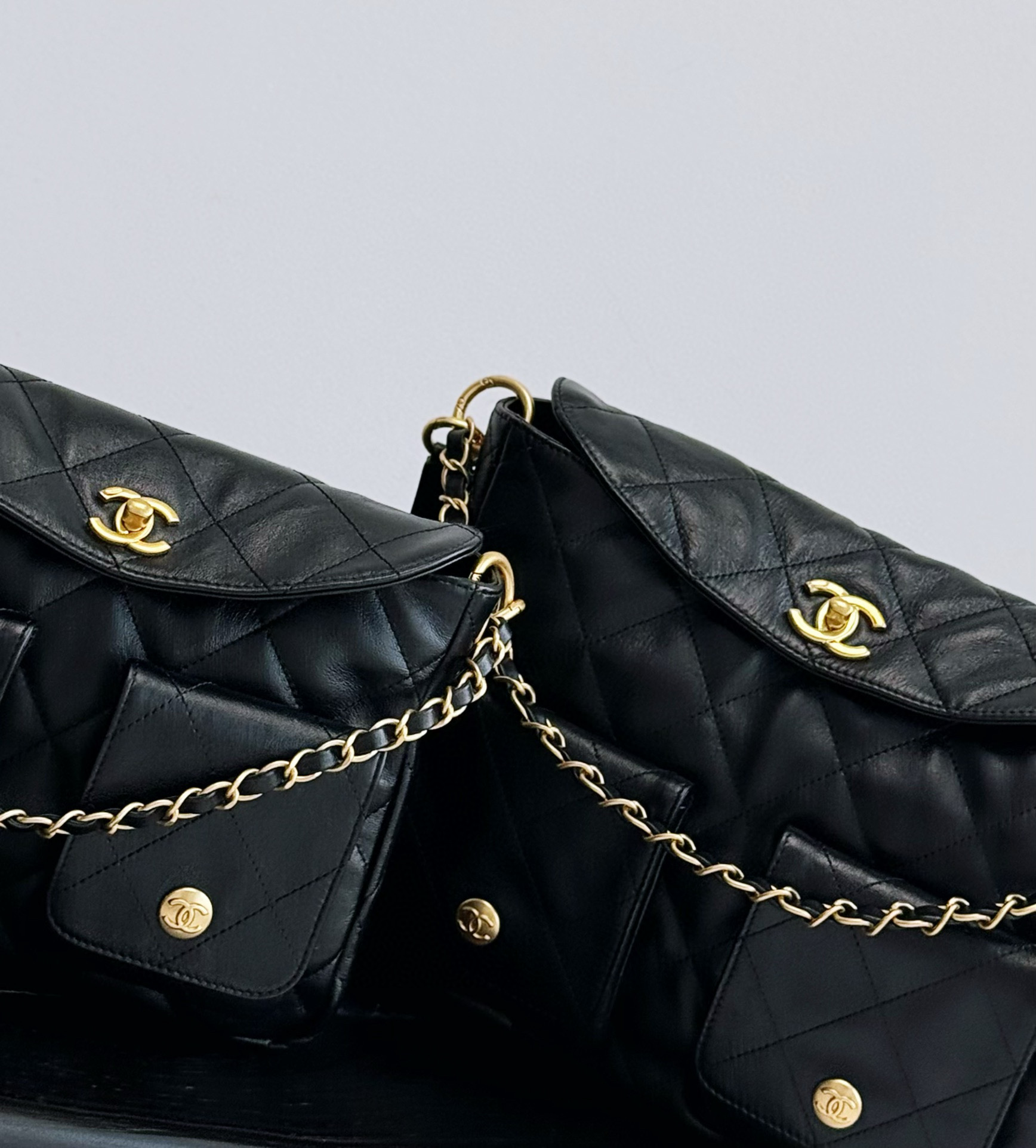NIGO Chanel Supple Twins Women's Black Diamond Pattern Gold Buckle Chain Cowhide Shoulder Crossbody Bag #nigo99148
