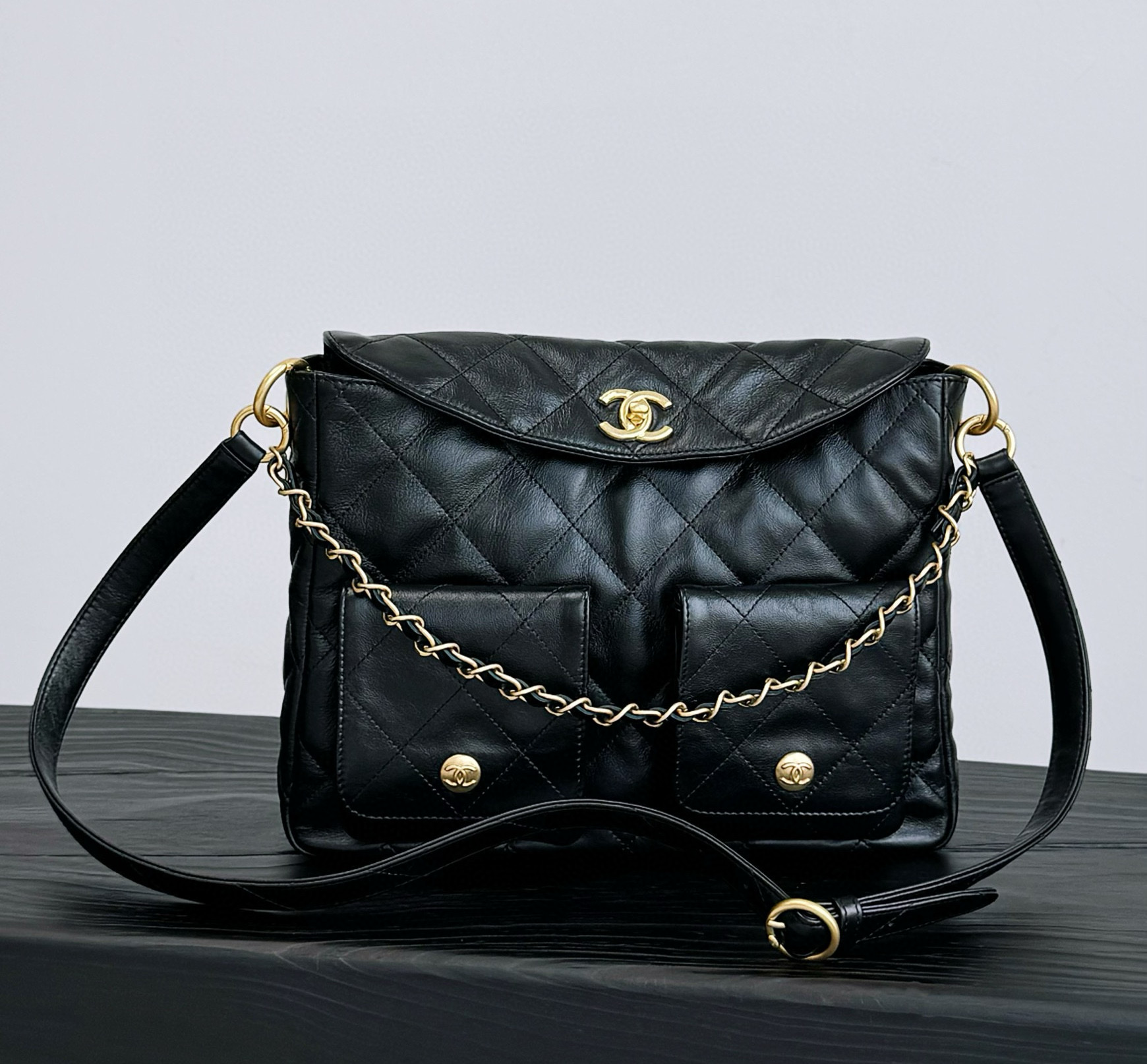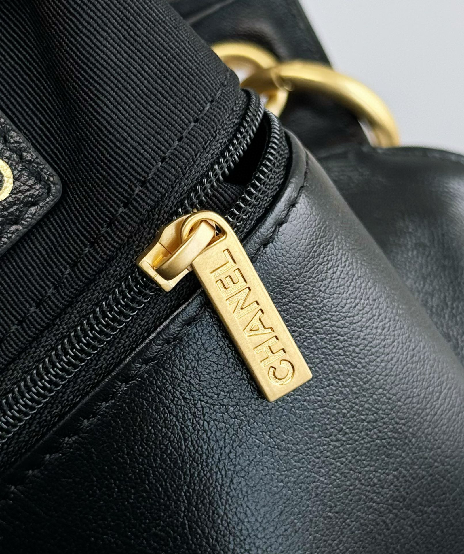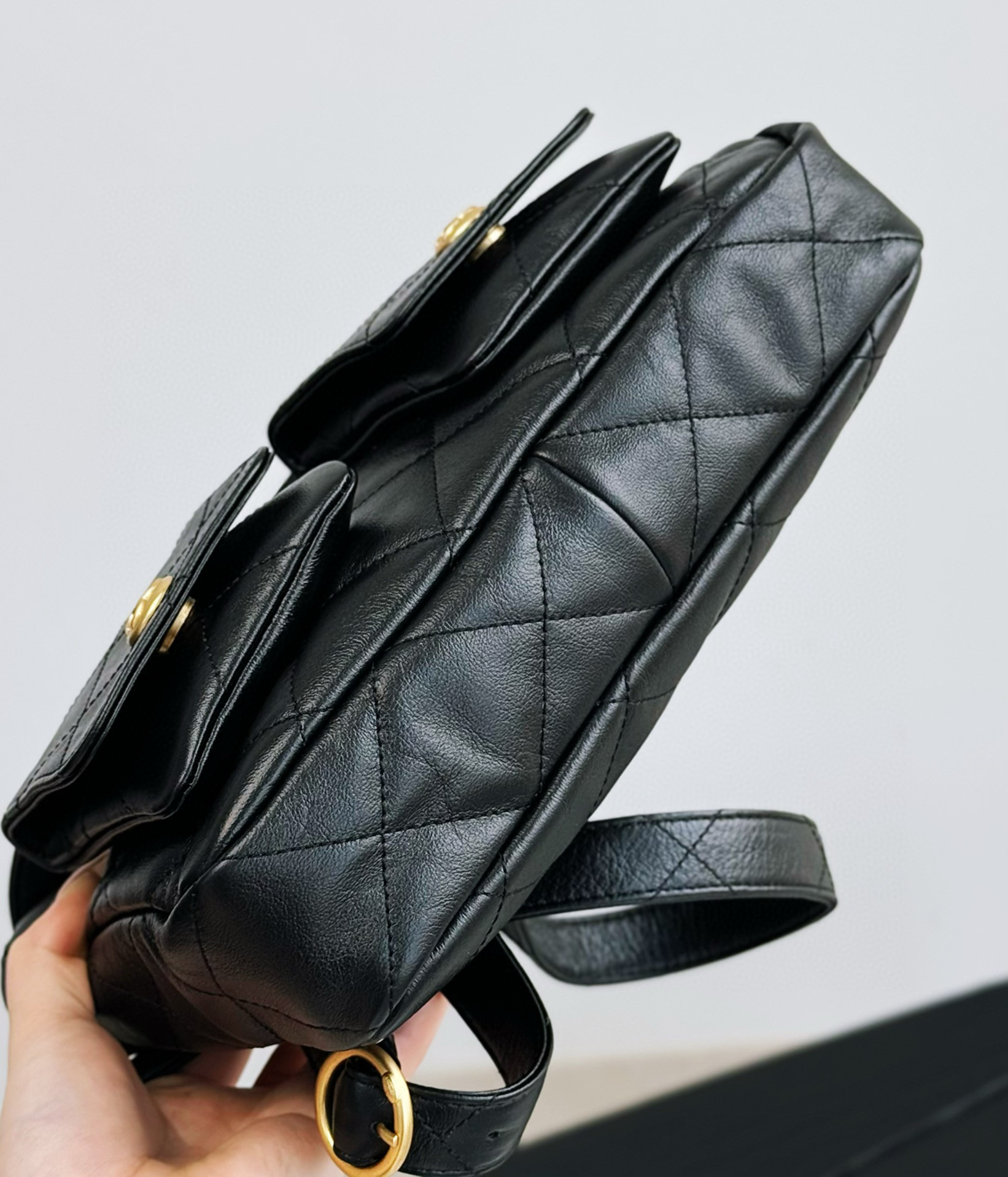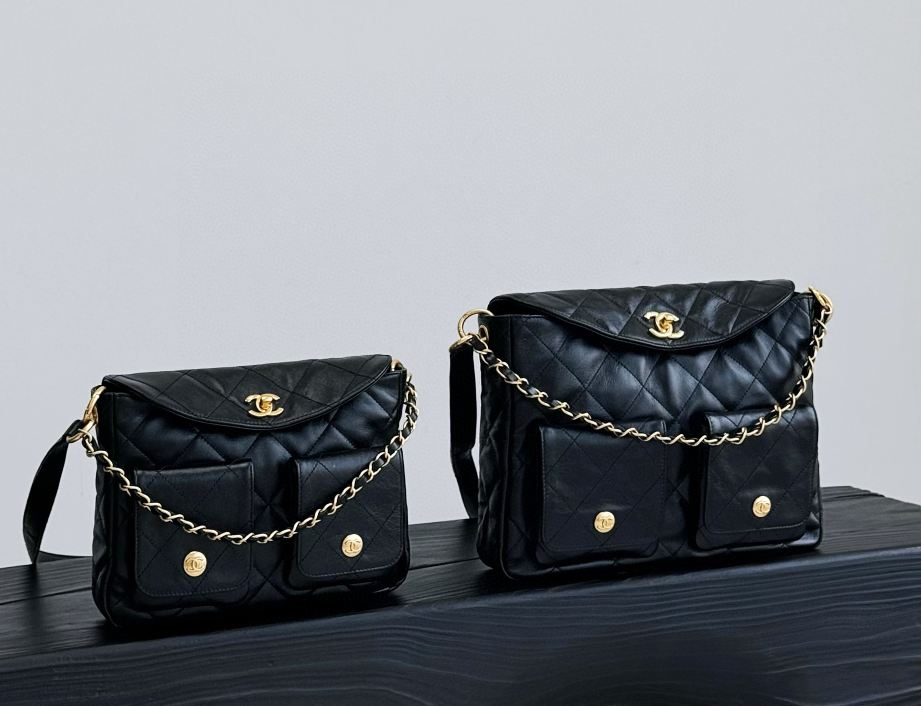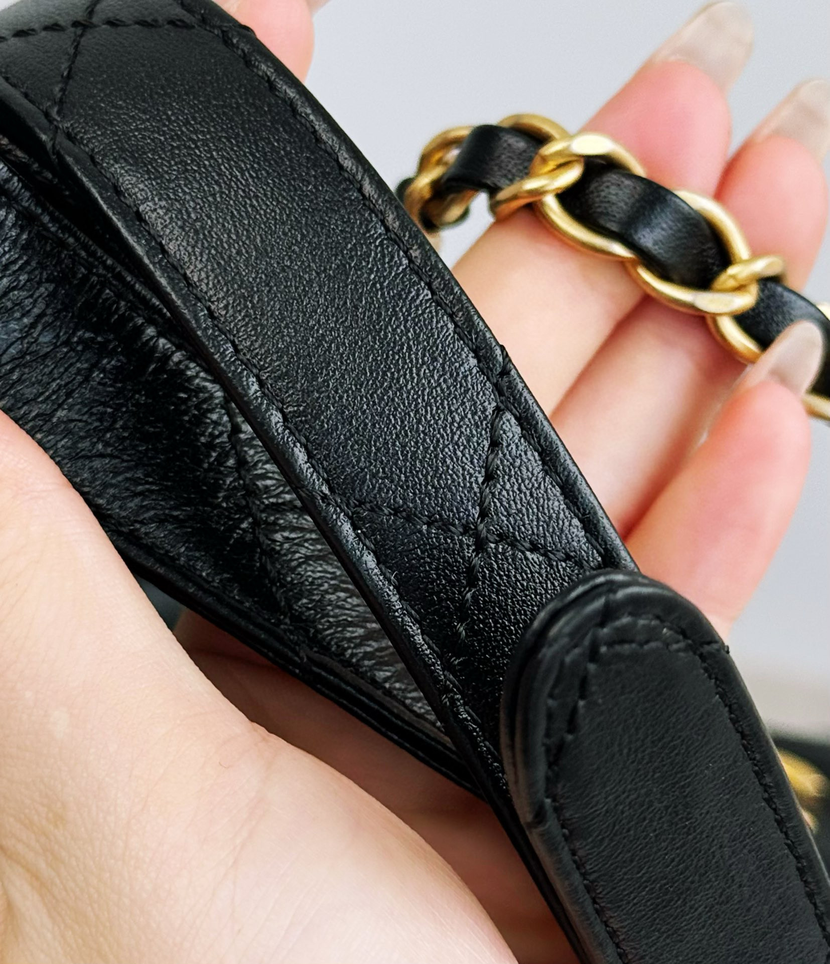 NIGO Chanel Supple Twins Women's Black Diamond Pattern Gold Buckle Chain Cowhide Shoulder Crossbody Bag #nigo99148