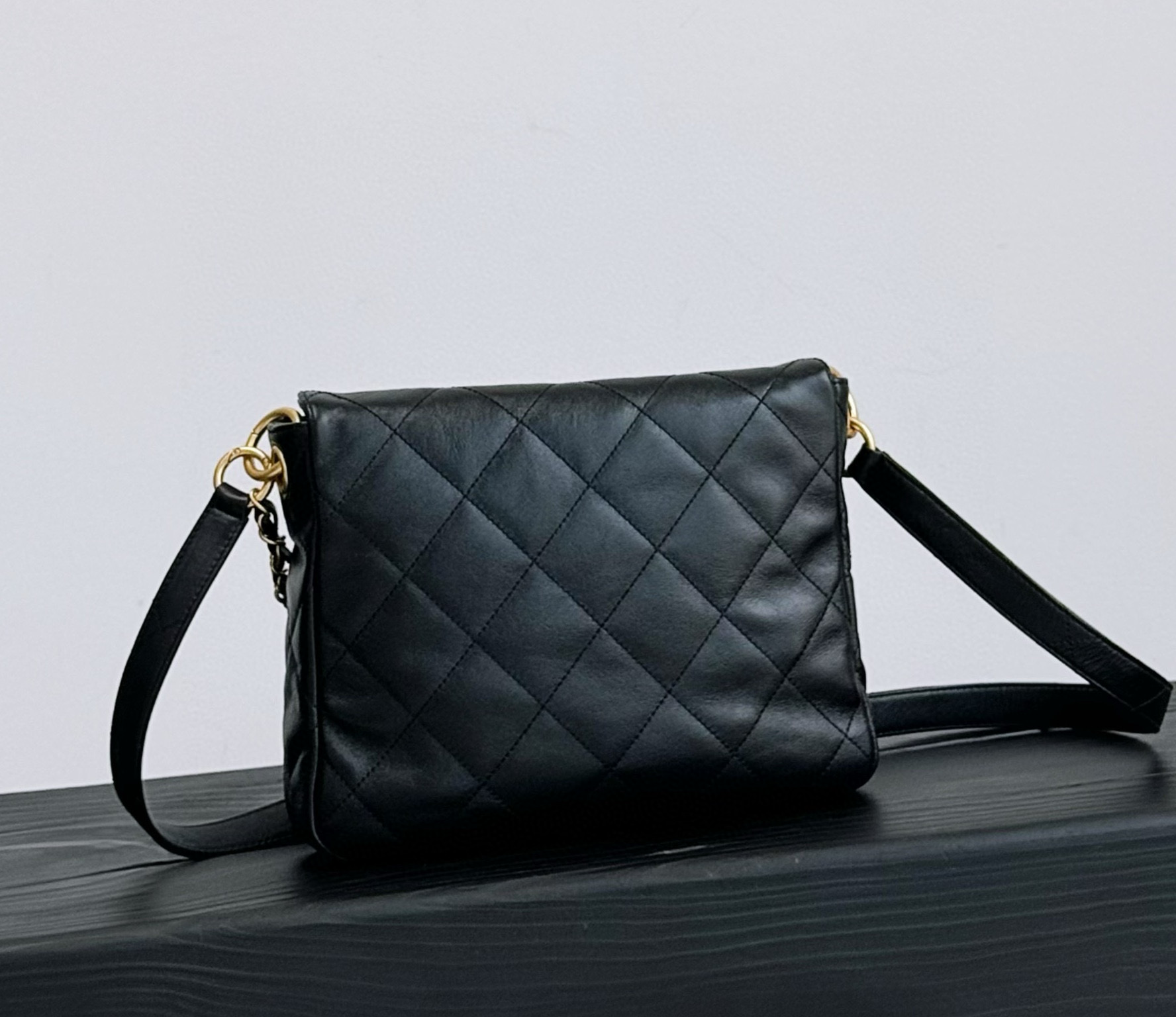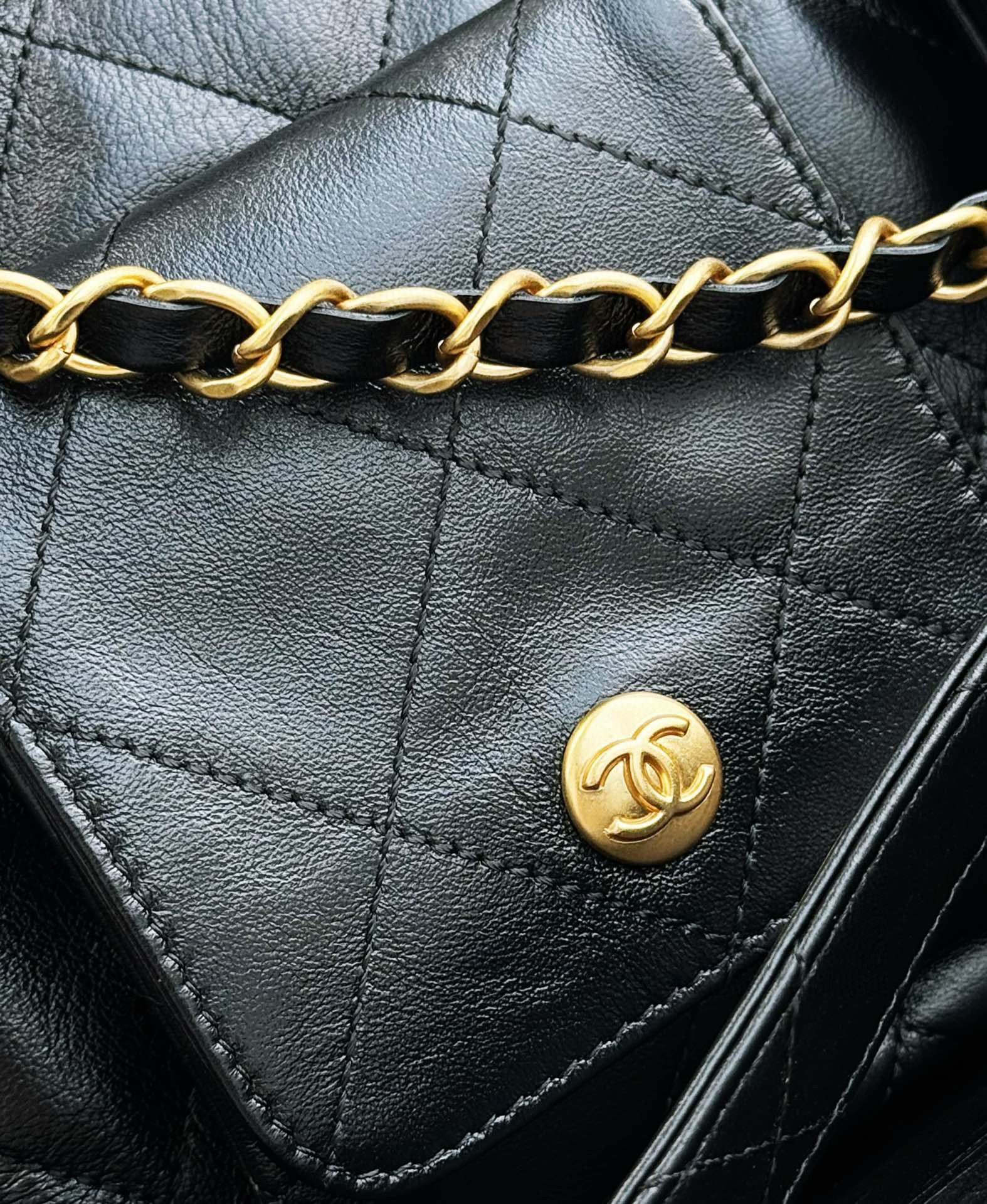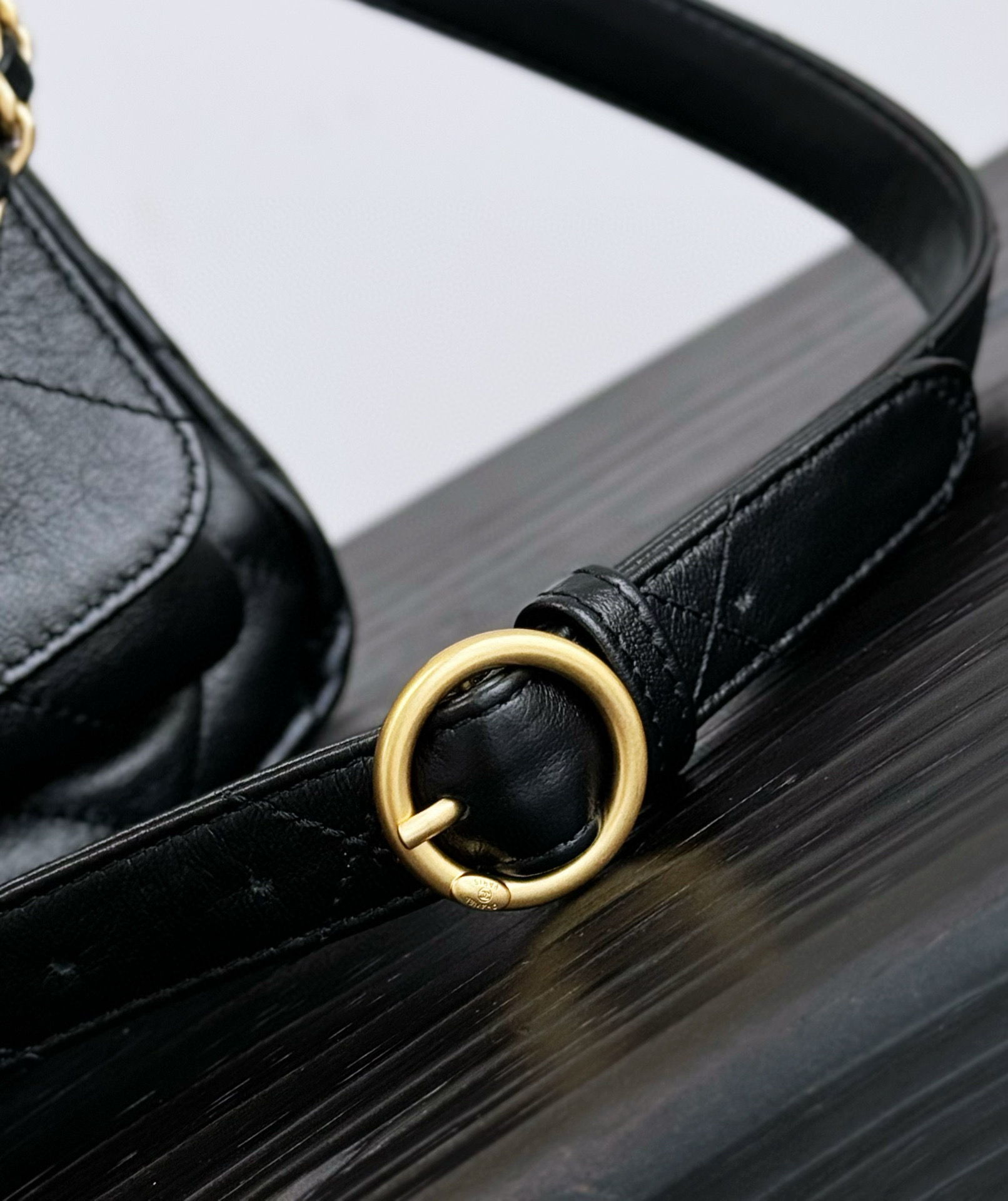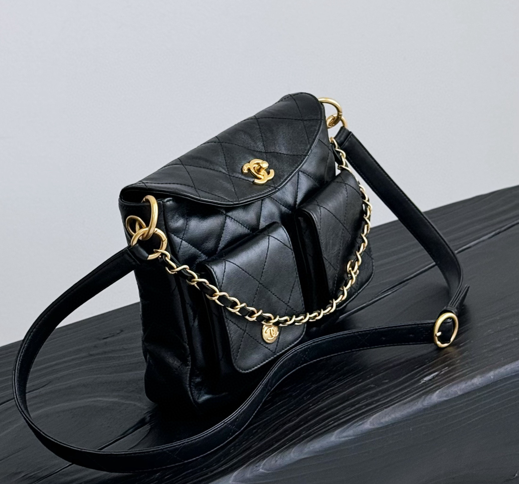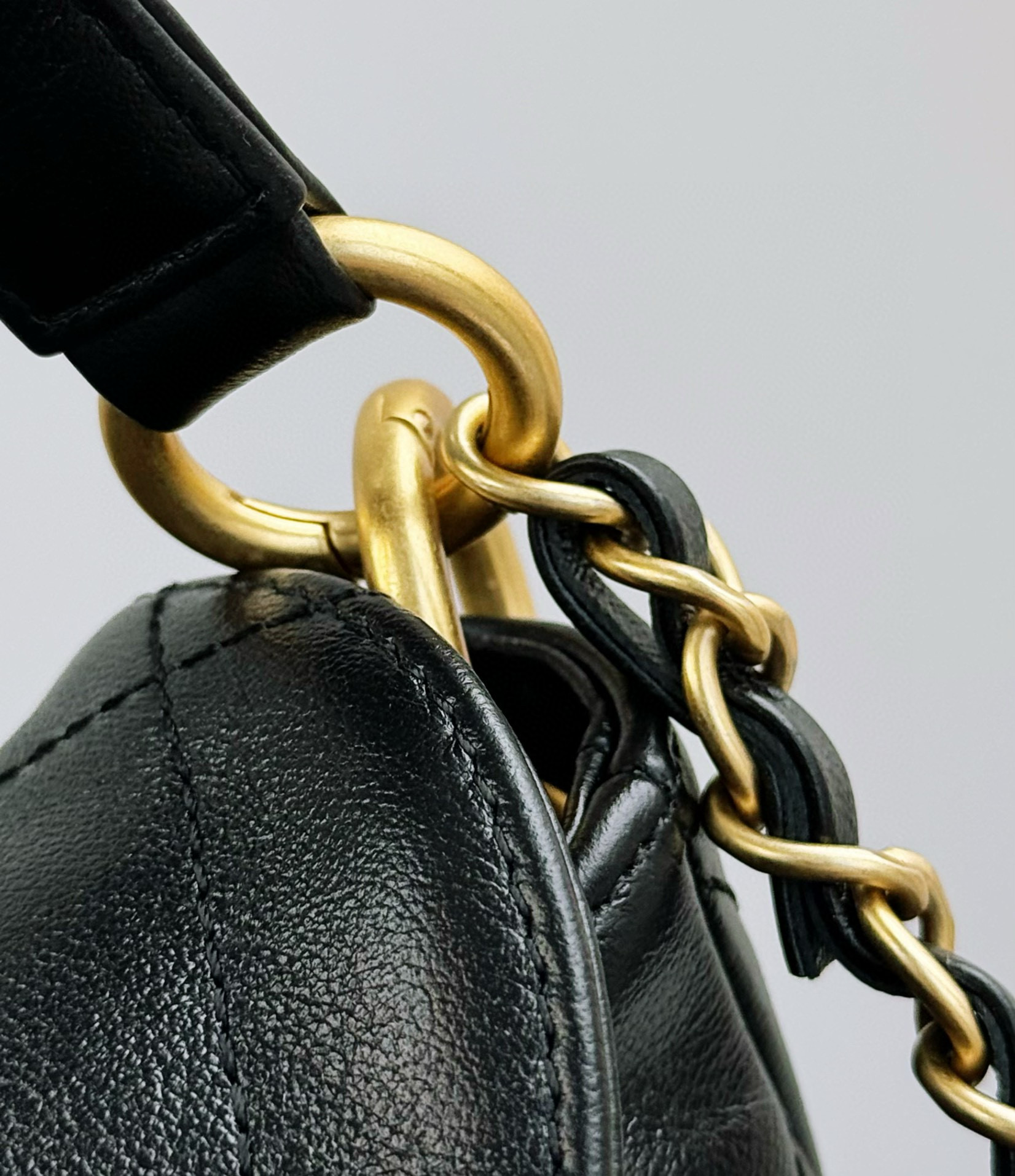 NIGO Chanel Supple Twins Women's Black Diamond Pattern Gold Buckle Chain Cowhide Shoulder Crossbody Bag #nigo99148
