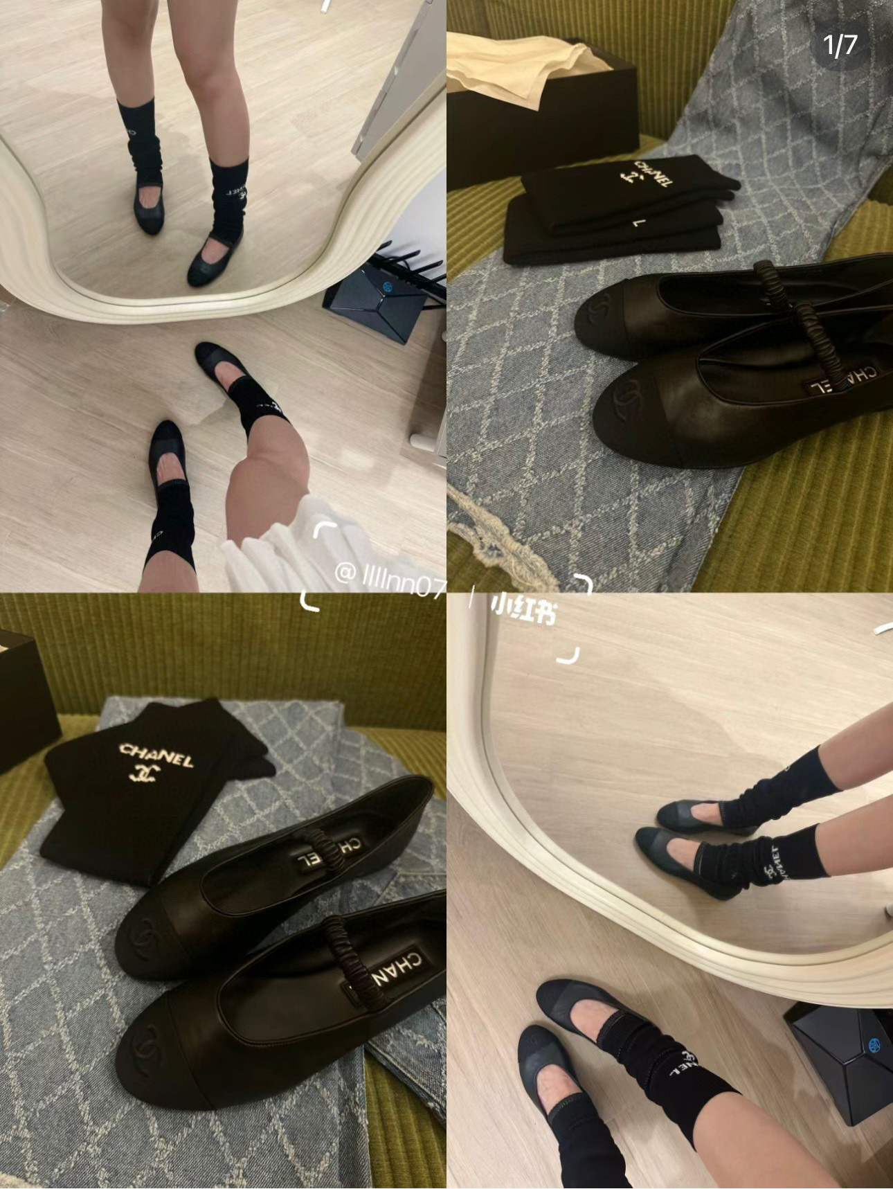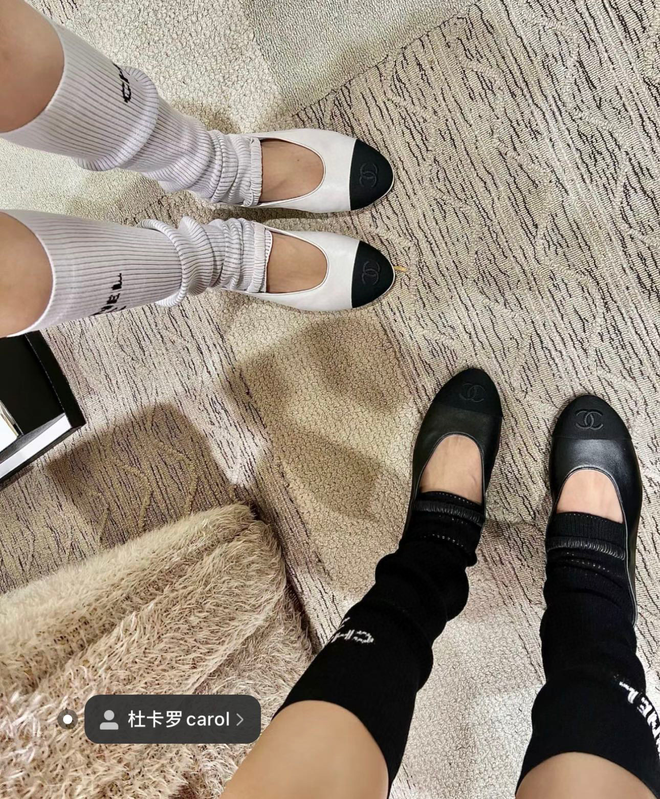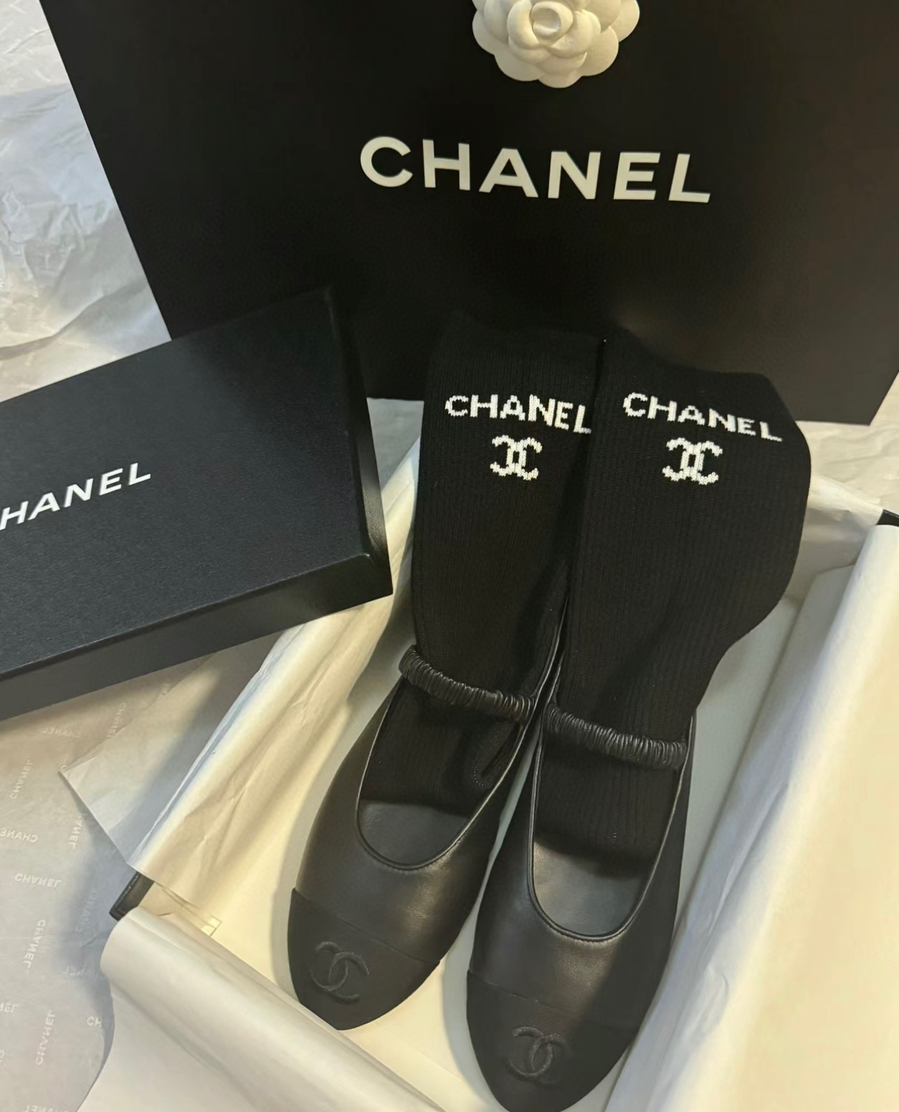 NIGO Chanel Women's 24C Sheepskin Ballet Flats Shoes With Sockliner Pair #nigo97255