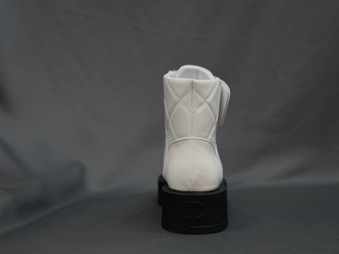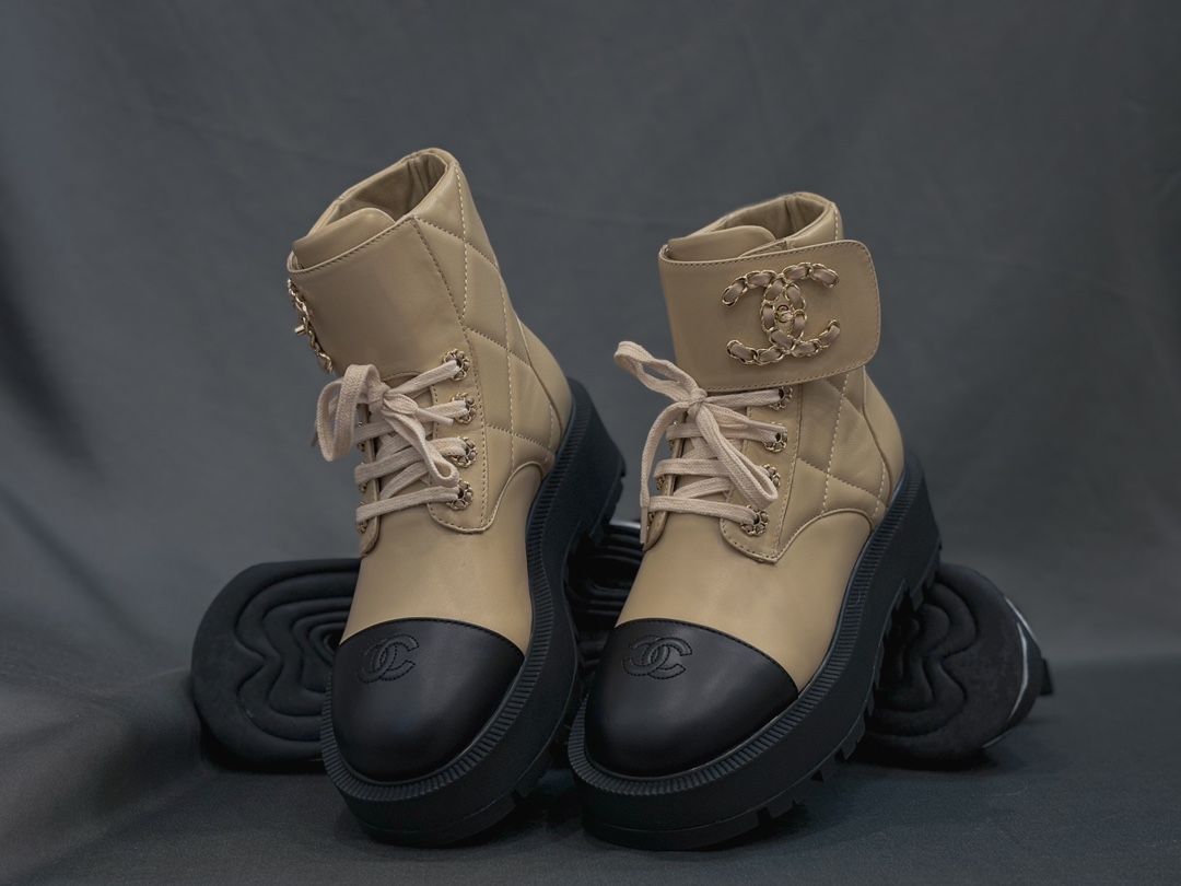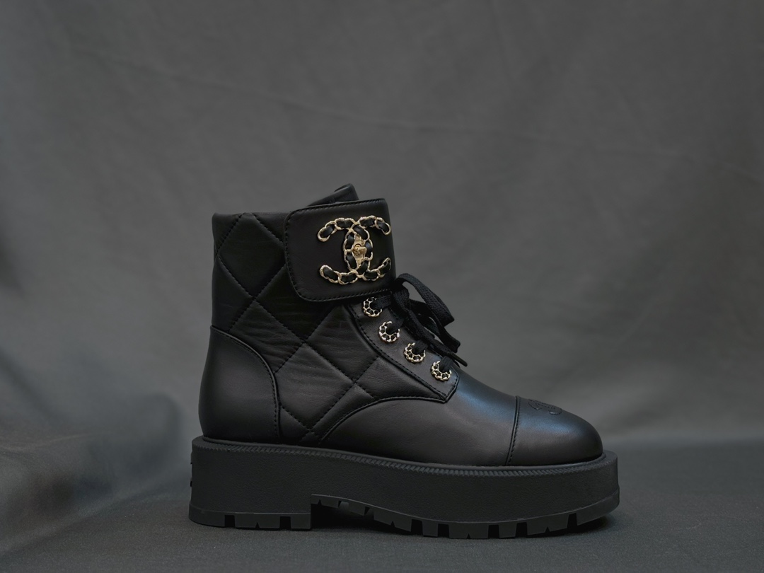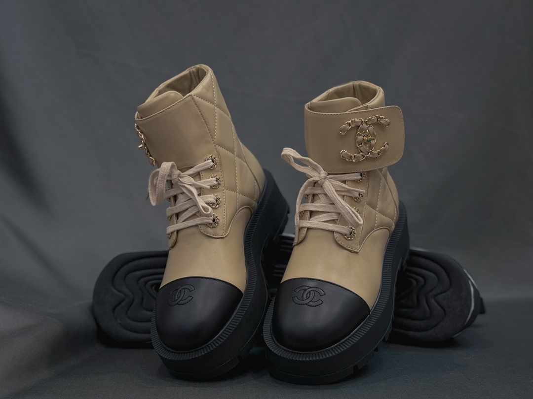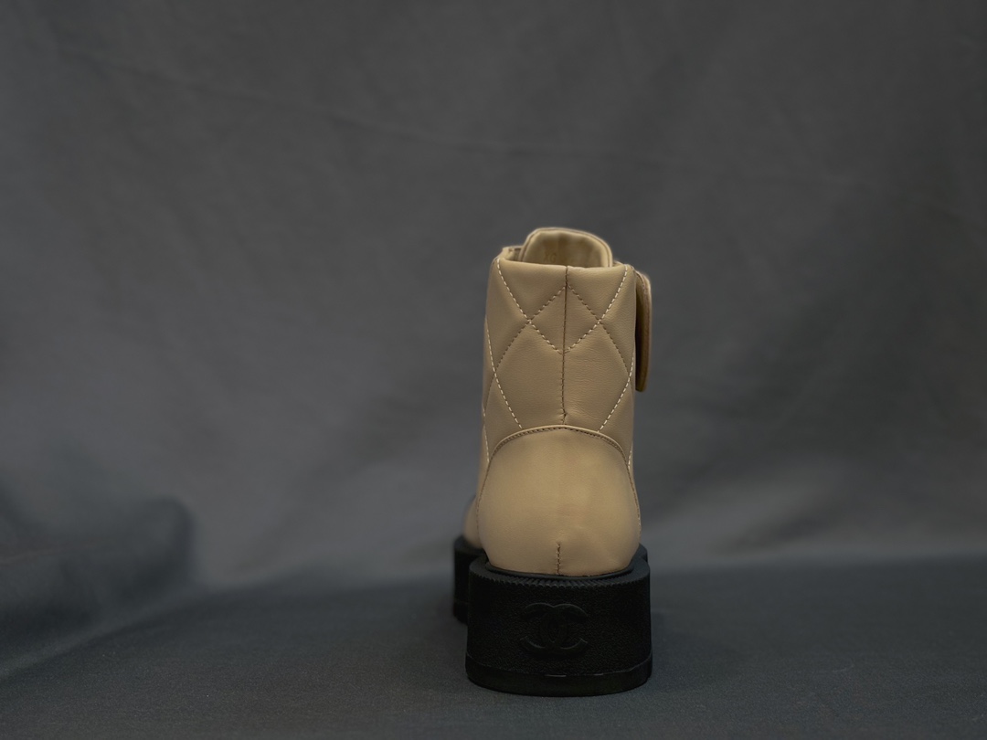 NIGO Chanel Women's Autumn and Winter Diamond Velcro Lace-up Leather Short Boots Shoes #nigo73461