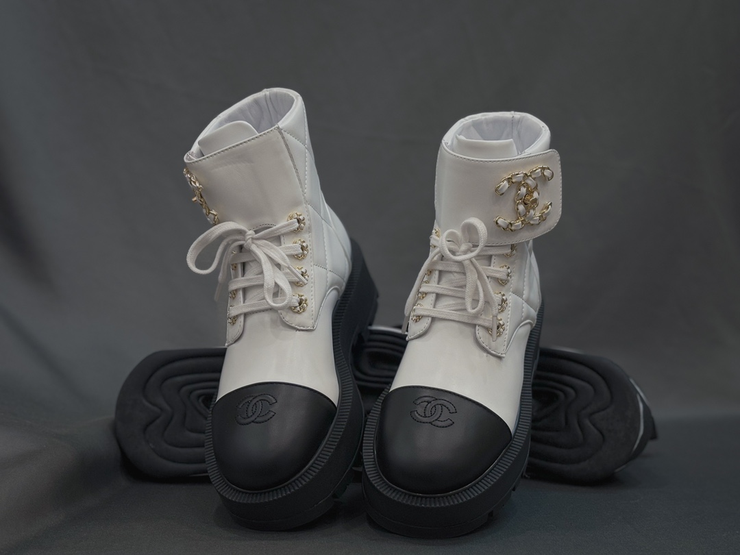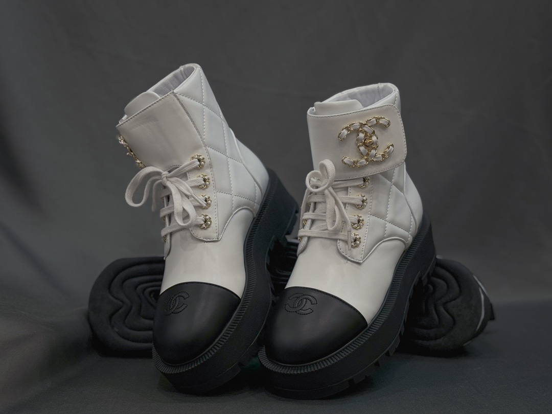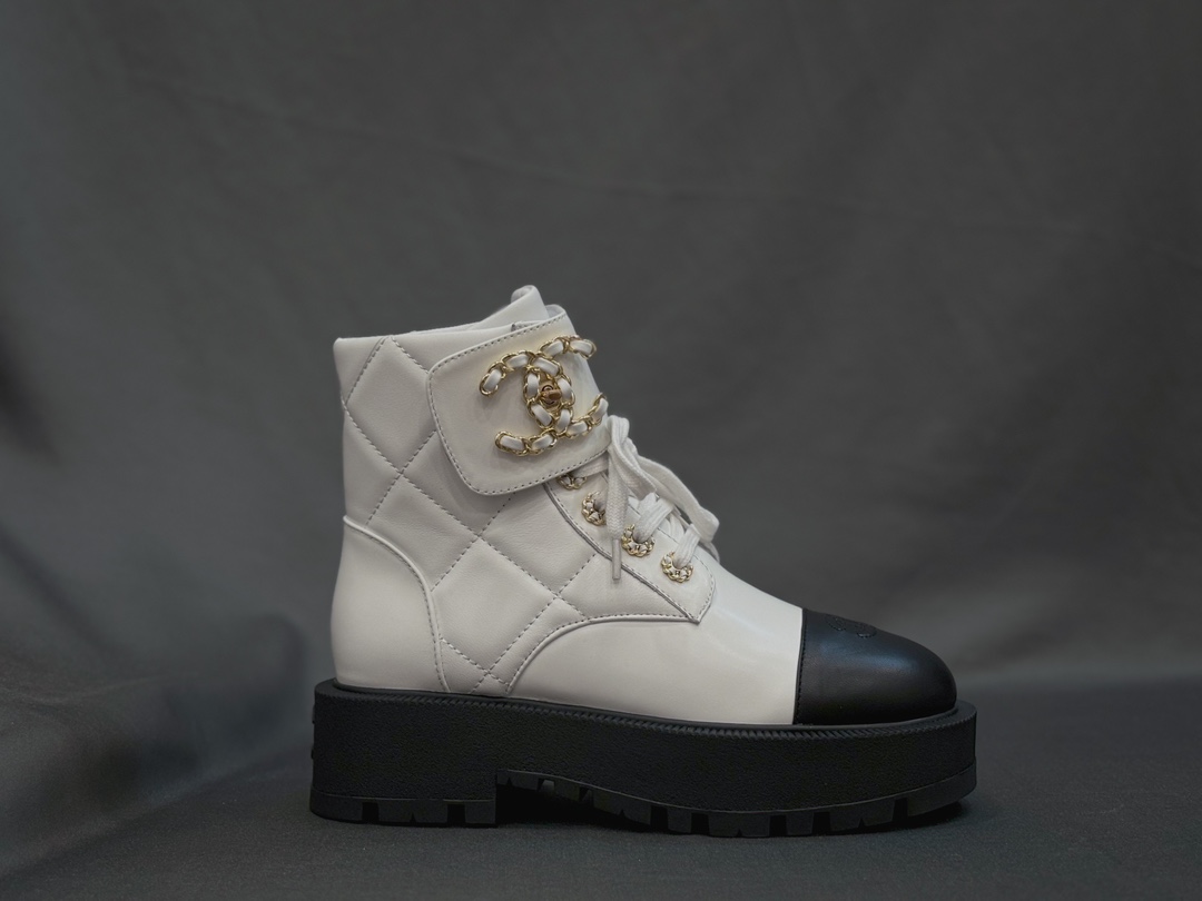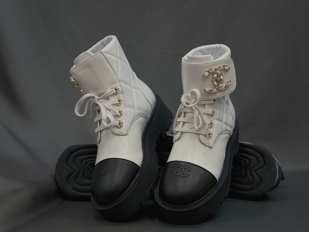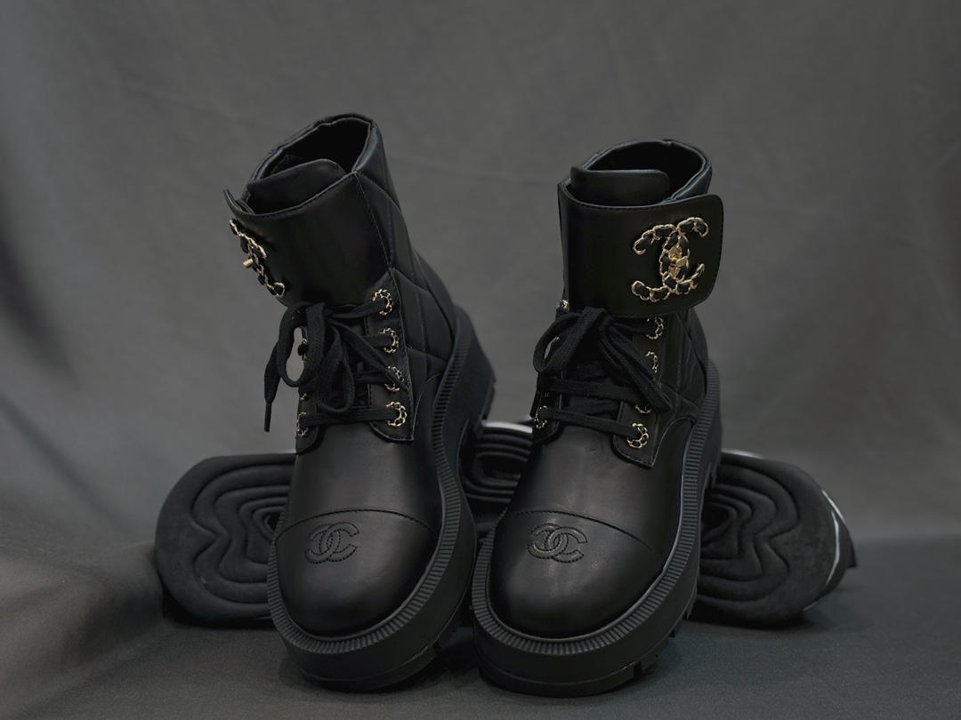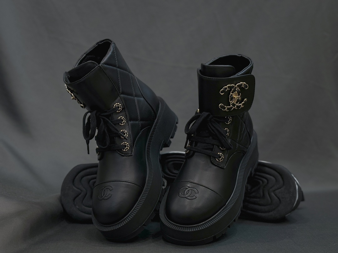 NIGO Chanel Women's Autumn and Winter Diamond Velcro Lace-up Leather Short Boots Shoes #nigo73461