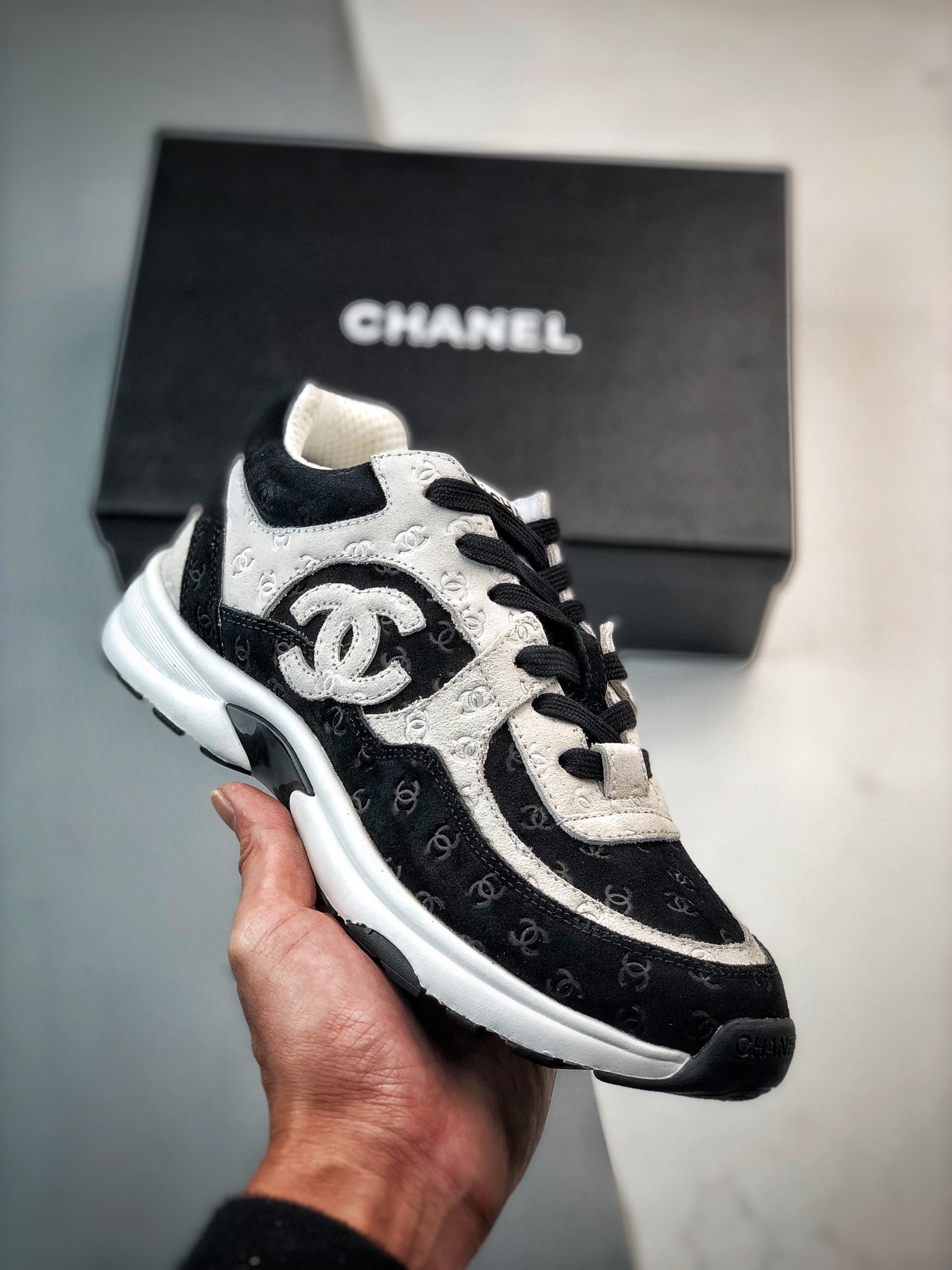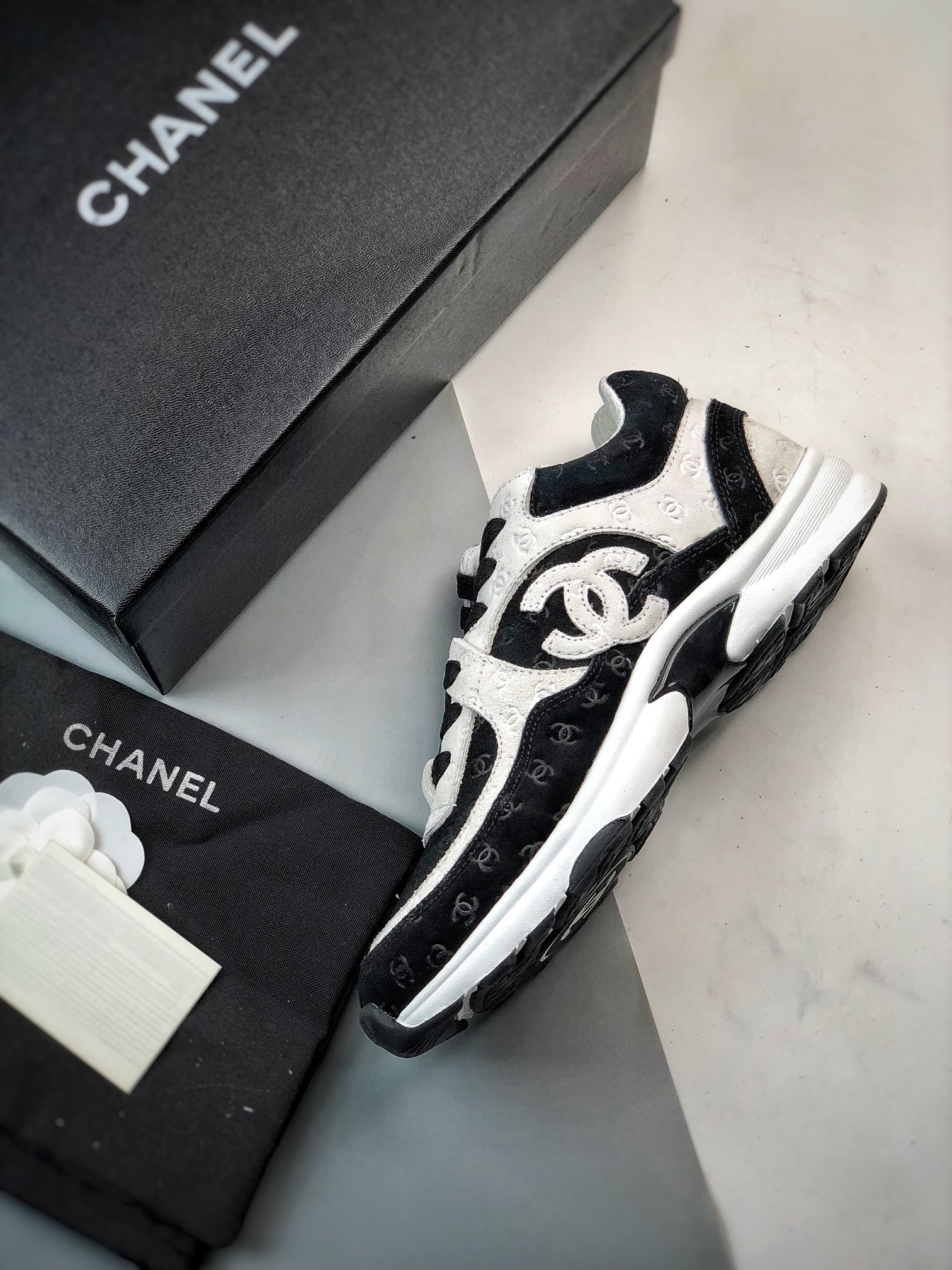 NIGO Chanel Women's Black And White Shock Absorbing Non Slip Wear Resistant Low Top Lace Up Casual Sneakers Shoes #nigo73261