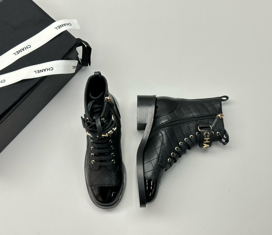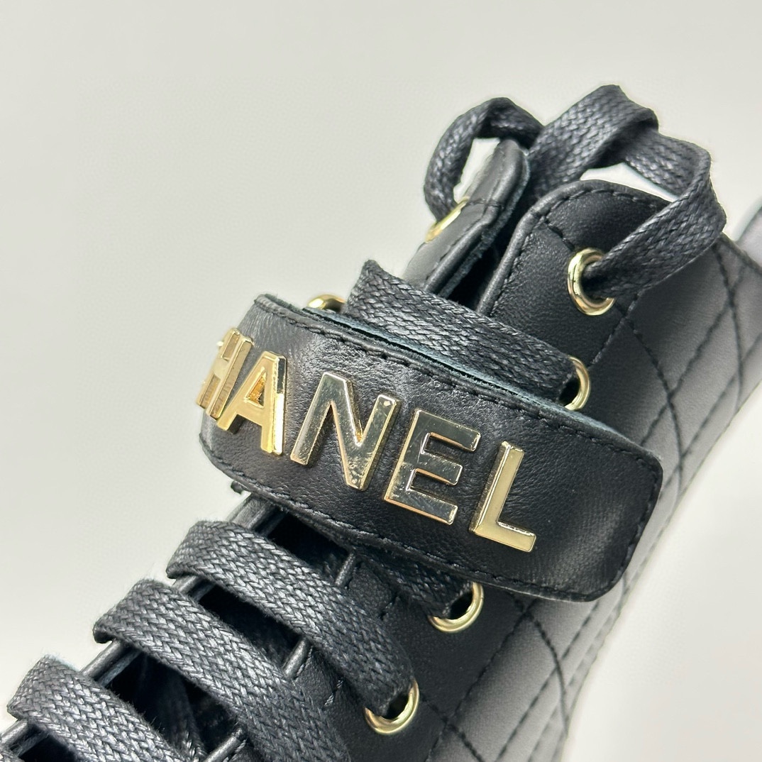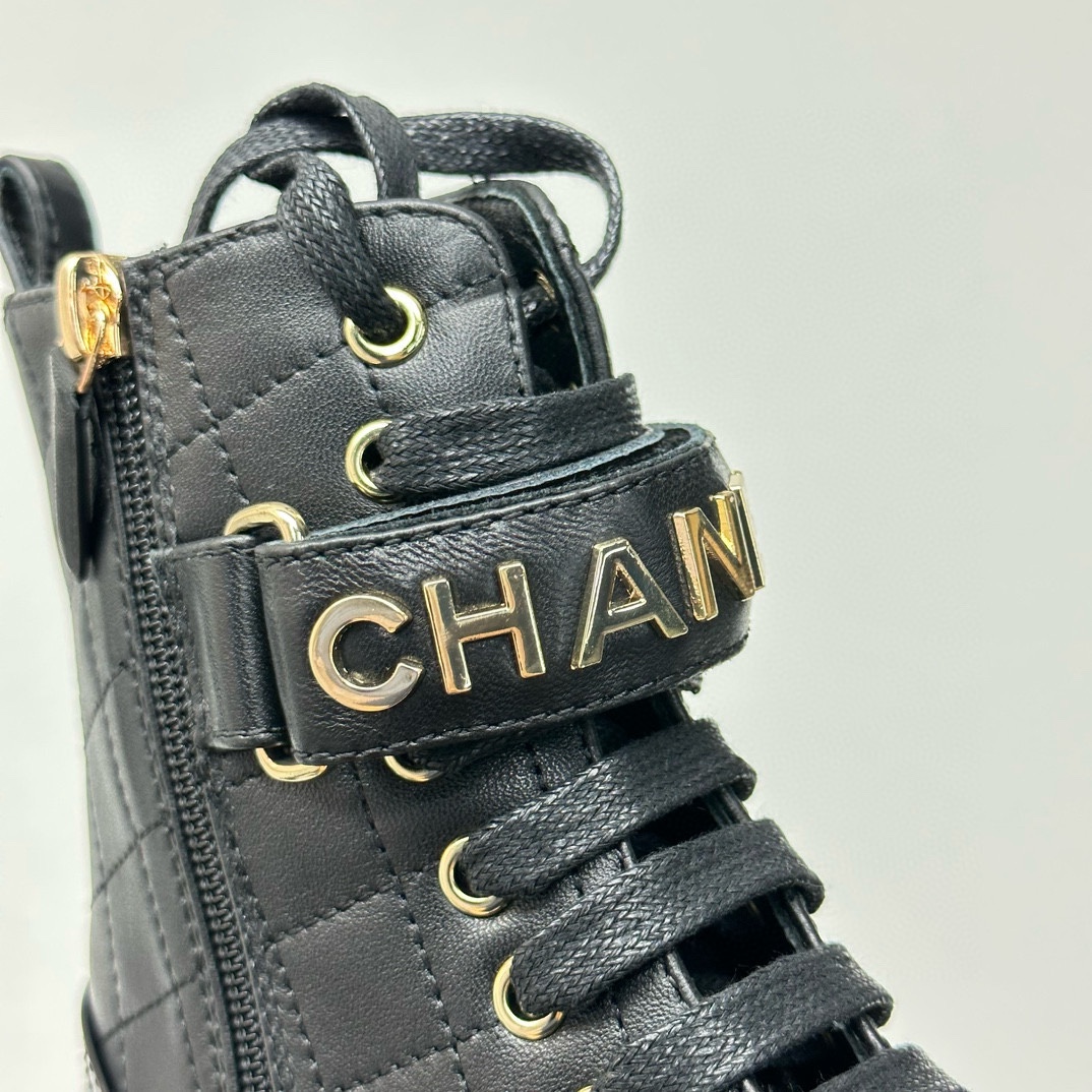 NIGO Chanel Women's Black Round Toe Lace Up Sheepskin Side Zipper Martin Boots Shoes #nigo72547