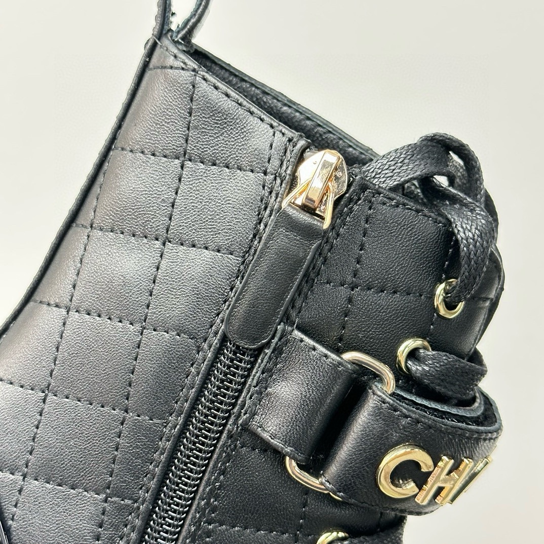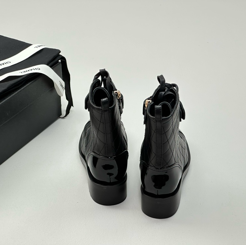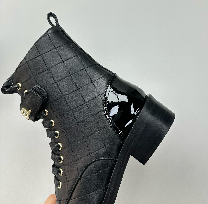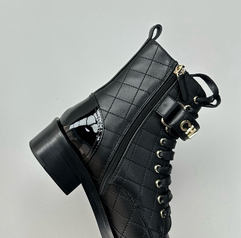 NIGO Chanel Women's Black Round Toe Lace Up Sheepskin Side Zipper Martin Boots Shoes #nigo72547