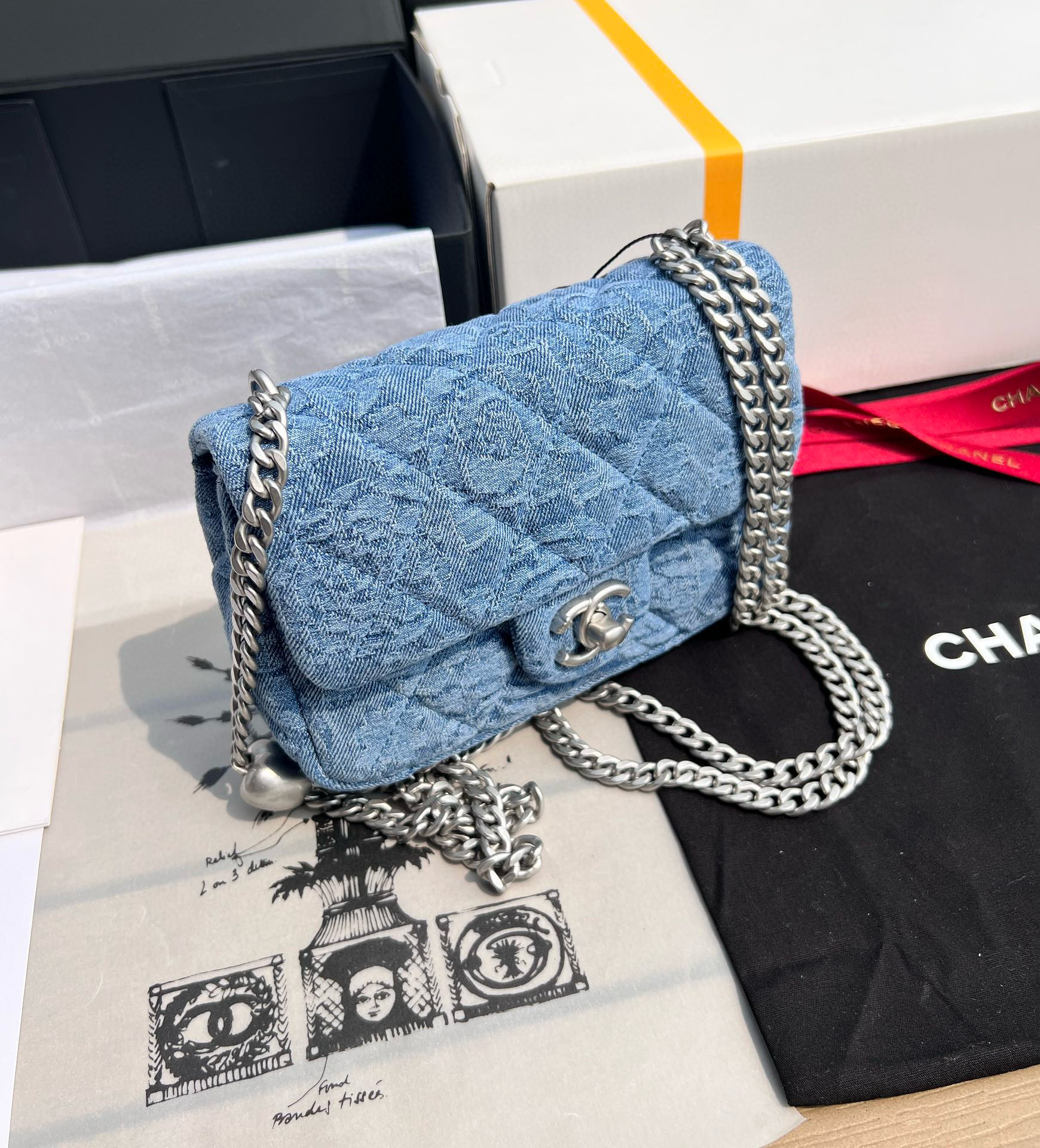 NIGO Chanel Women's Classic Chain Blue Gradient Denim Flap Shoulder Crossbody Bag Bags #nigo76193