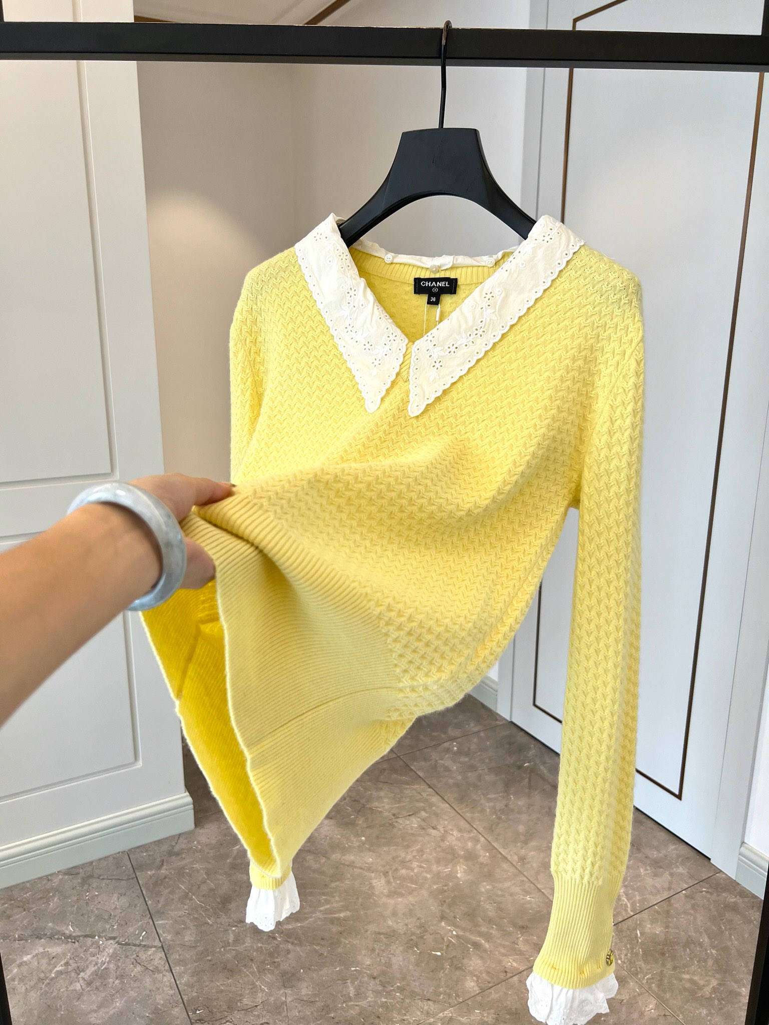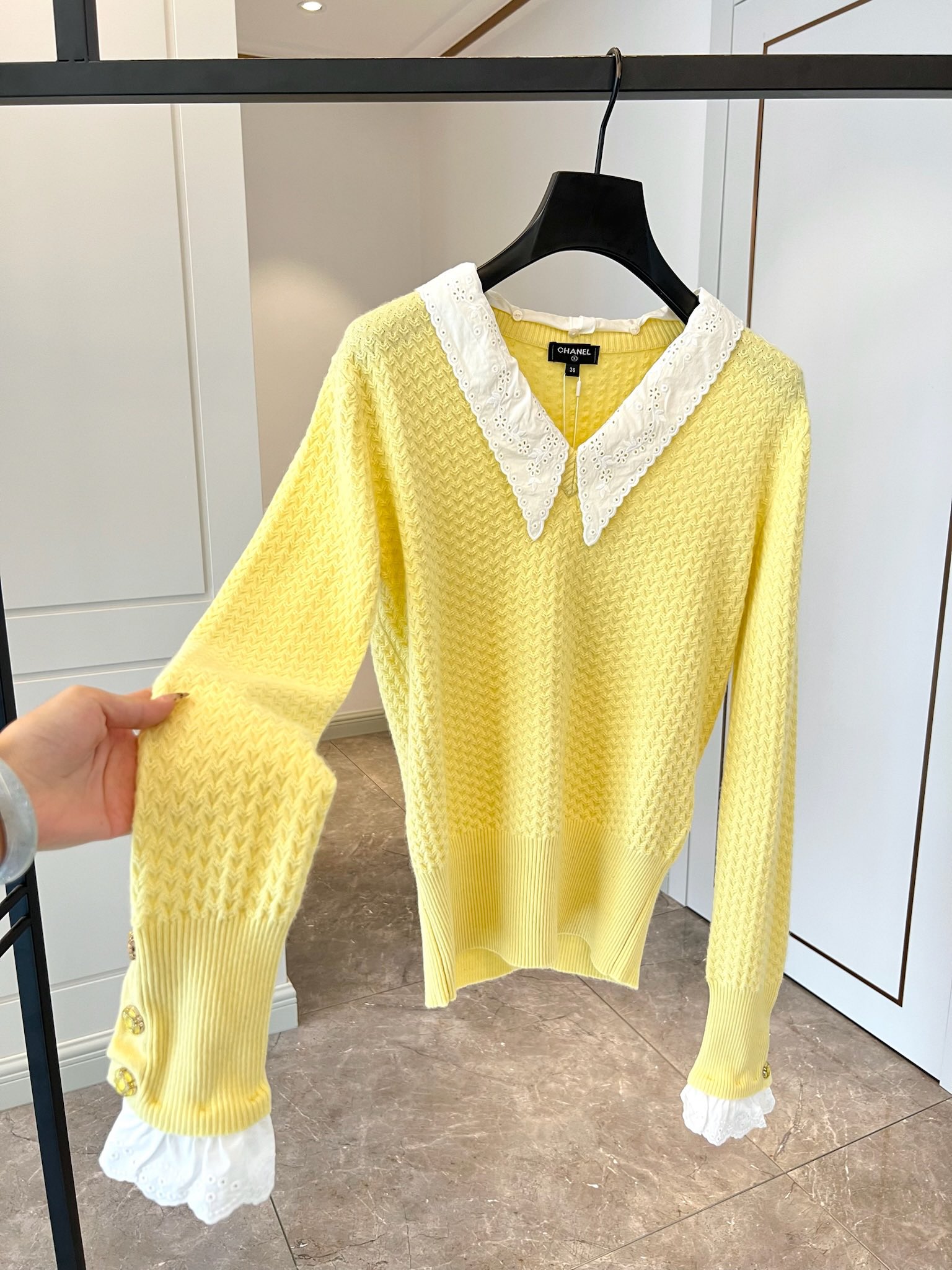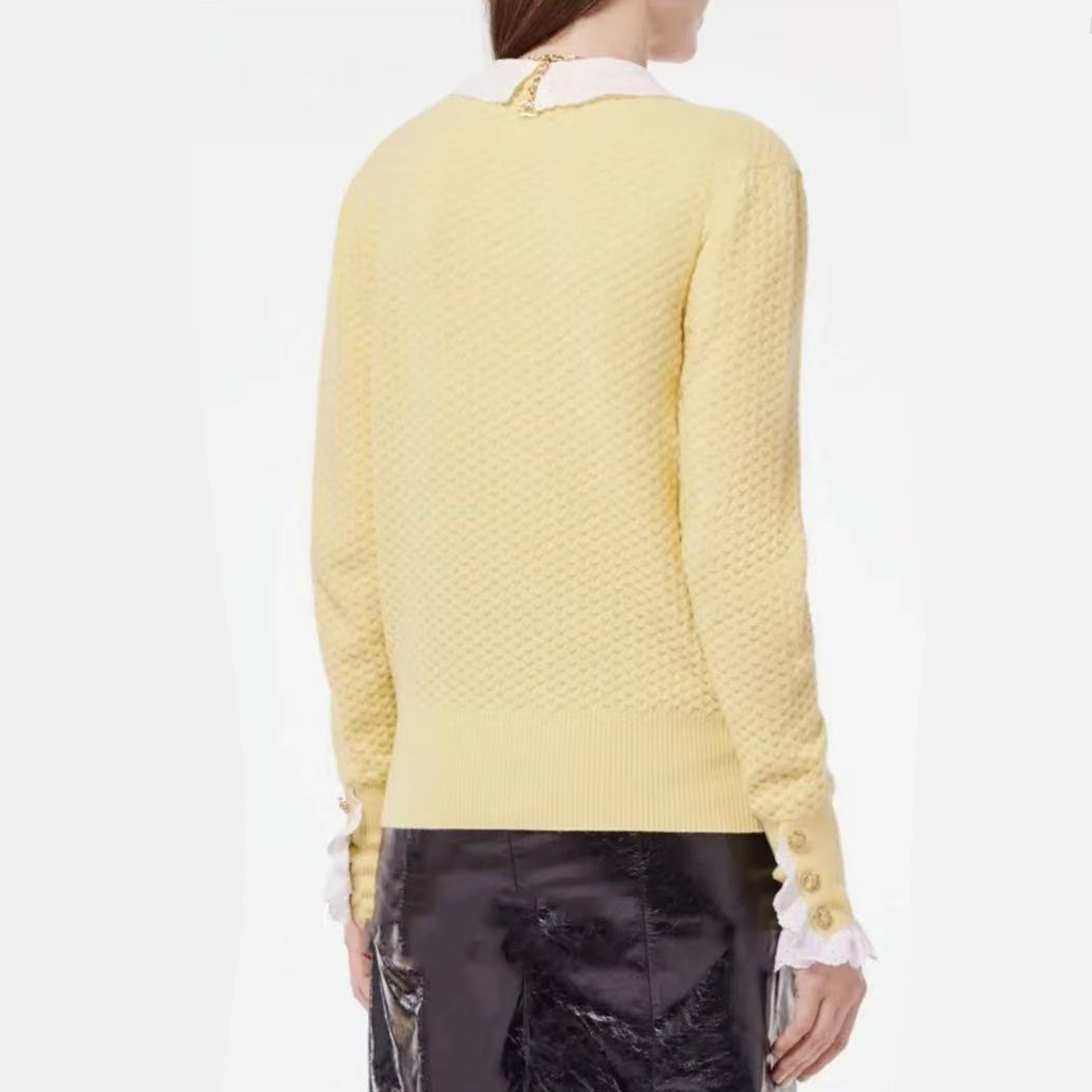 NIGO Chanel Women's Fall And Winter Fashion Jacquard Knit Lace Yellow Sweater Elegant Lapel Long Sleeve Slim Sweater Ngvp #nigo2425