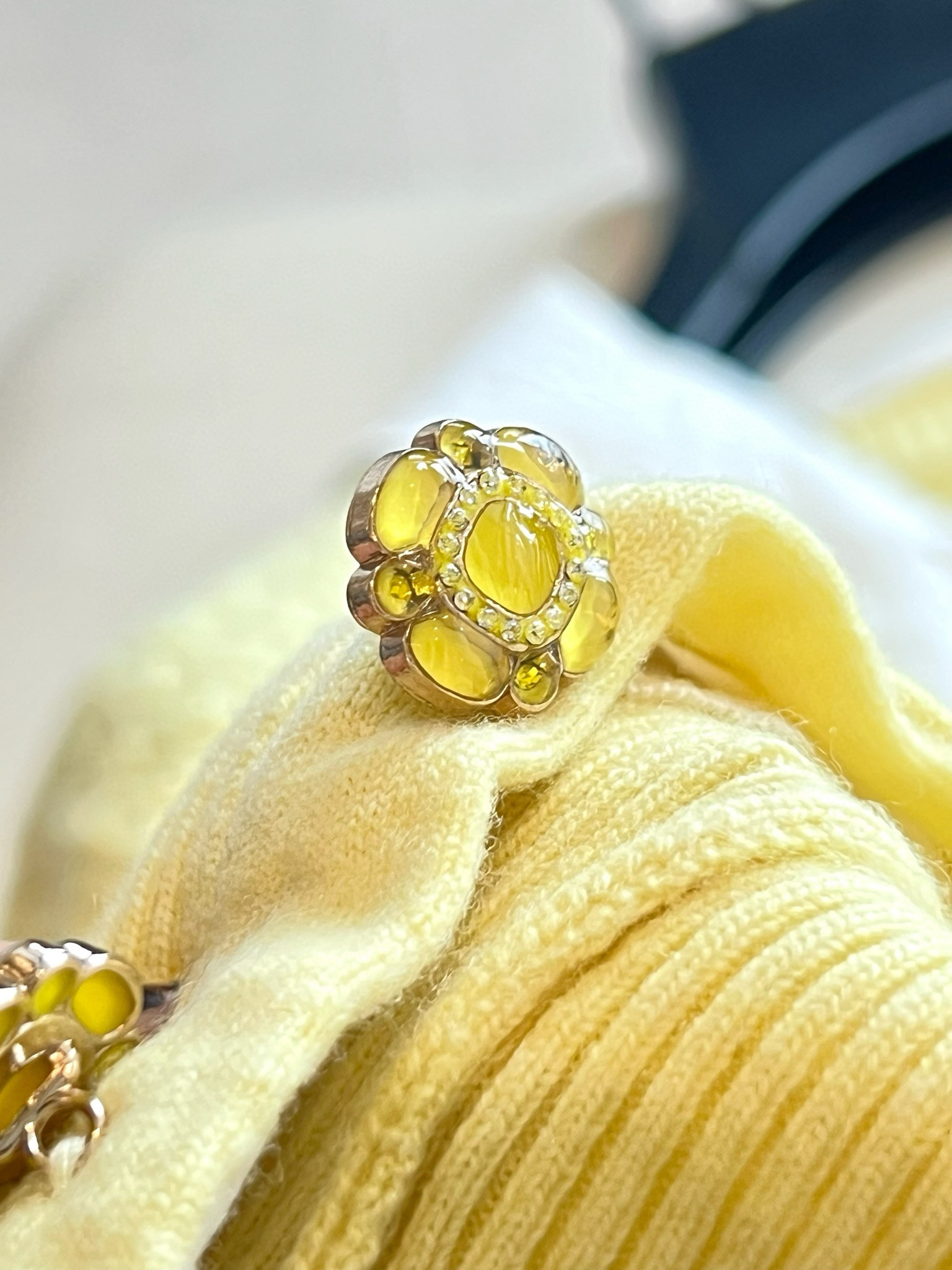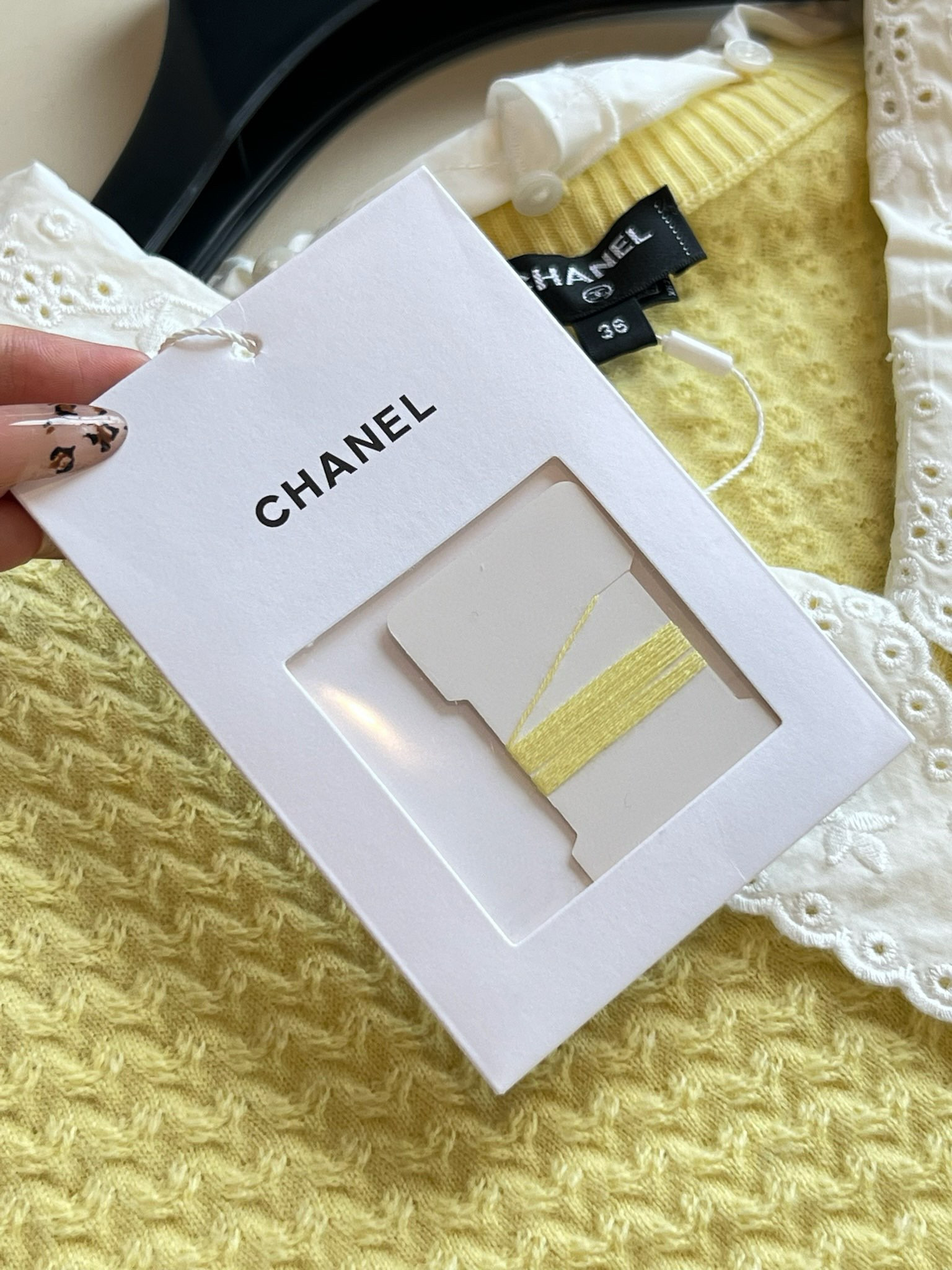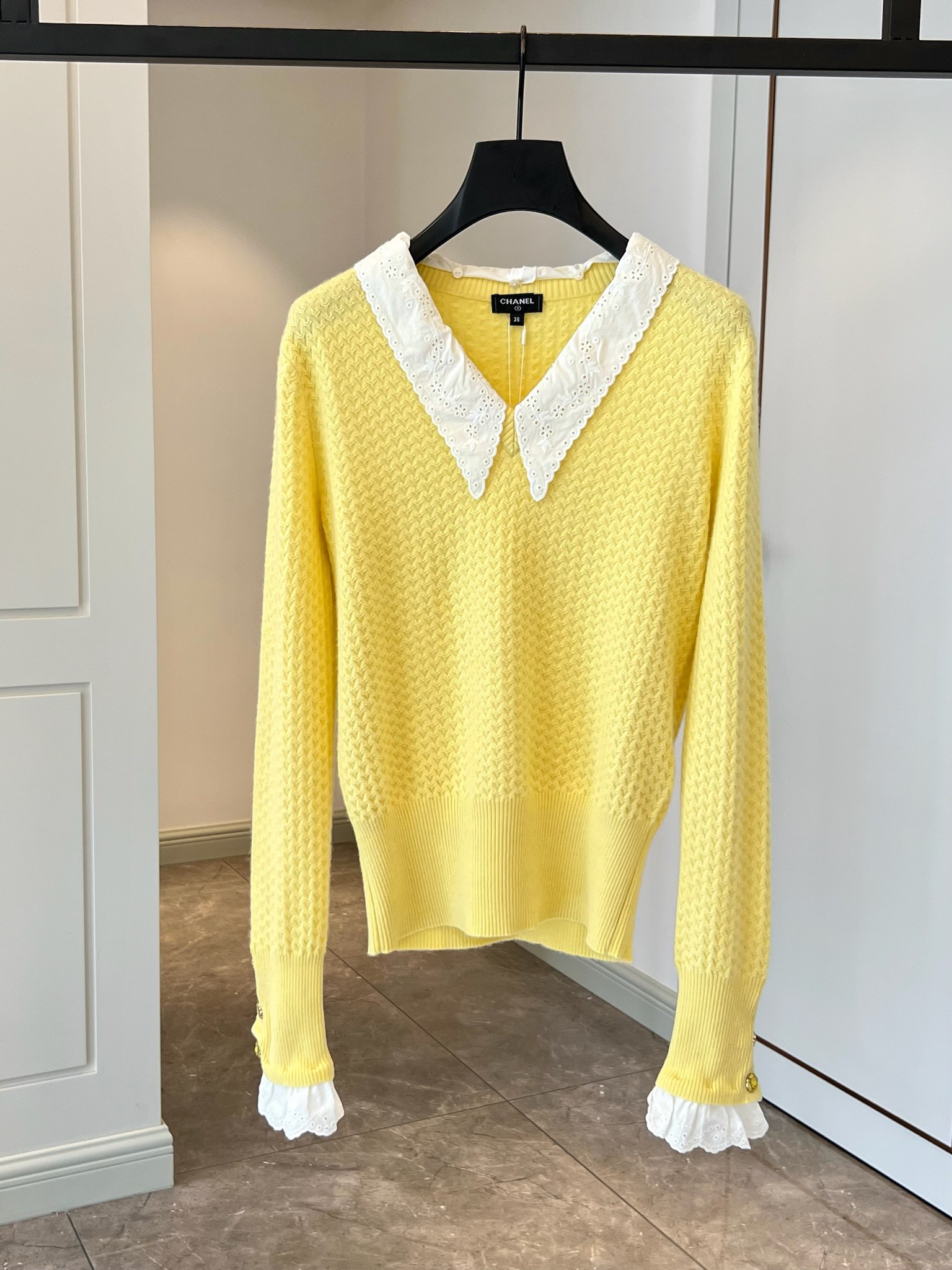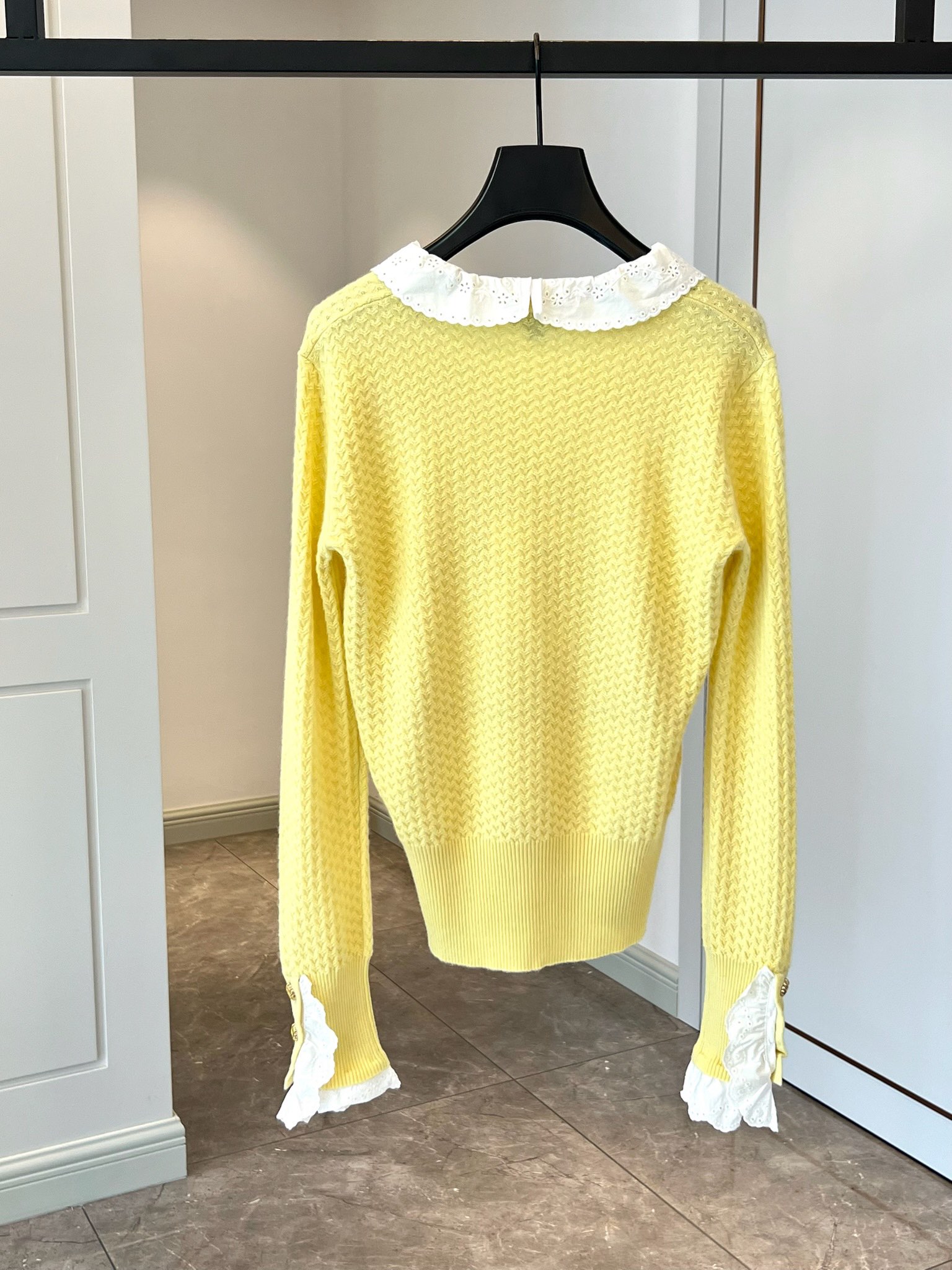 NIGO Chanel Women's Fall And Winter Fashion Jacquard Knit Lace Yellow Sweater Elegant Lapel Long Sleeve Slim Sweater Ngvp #nigo2425