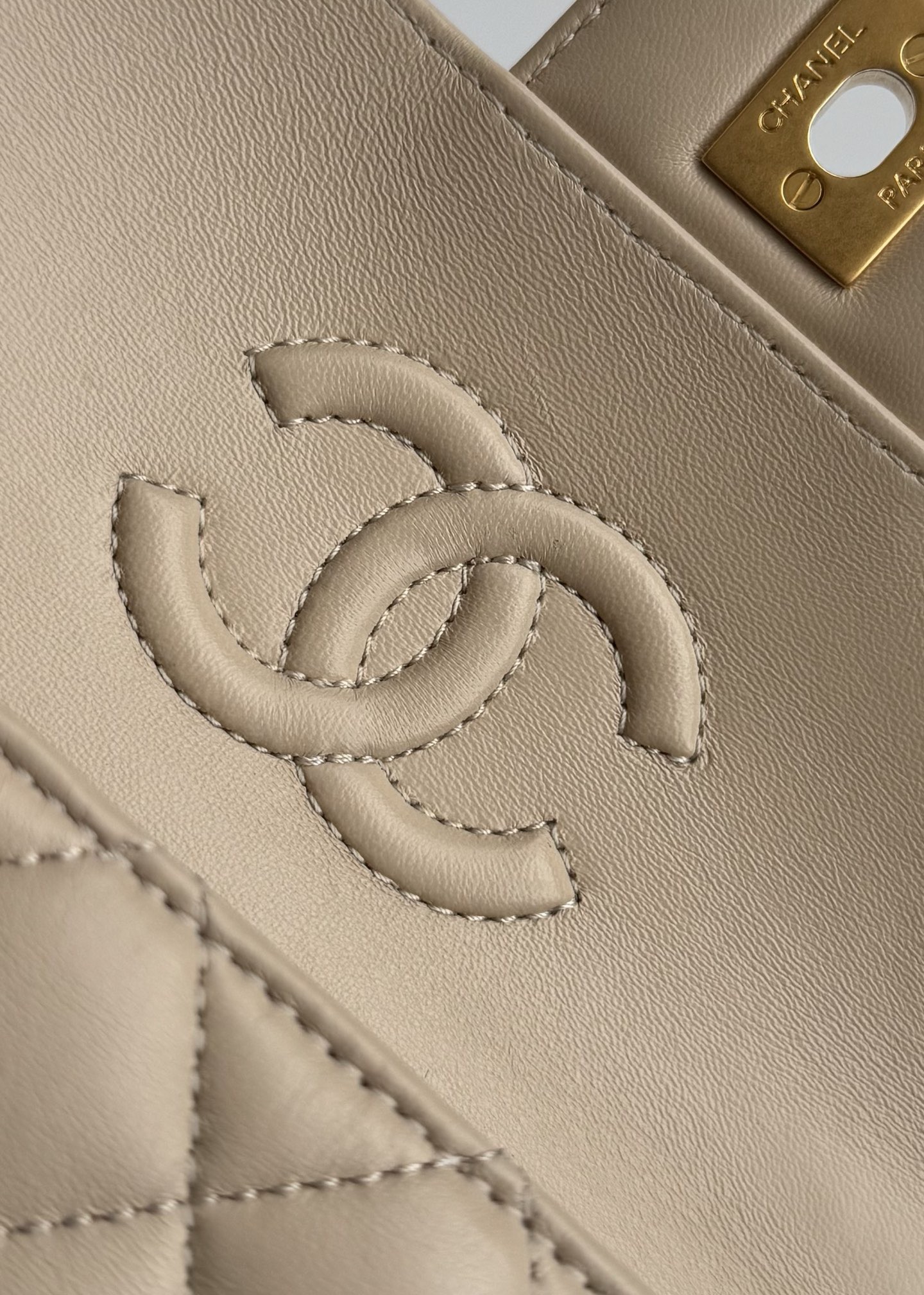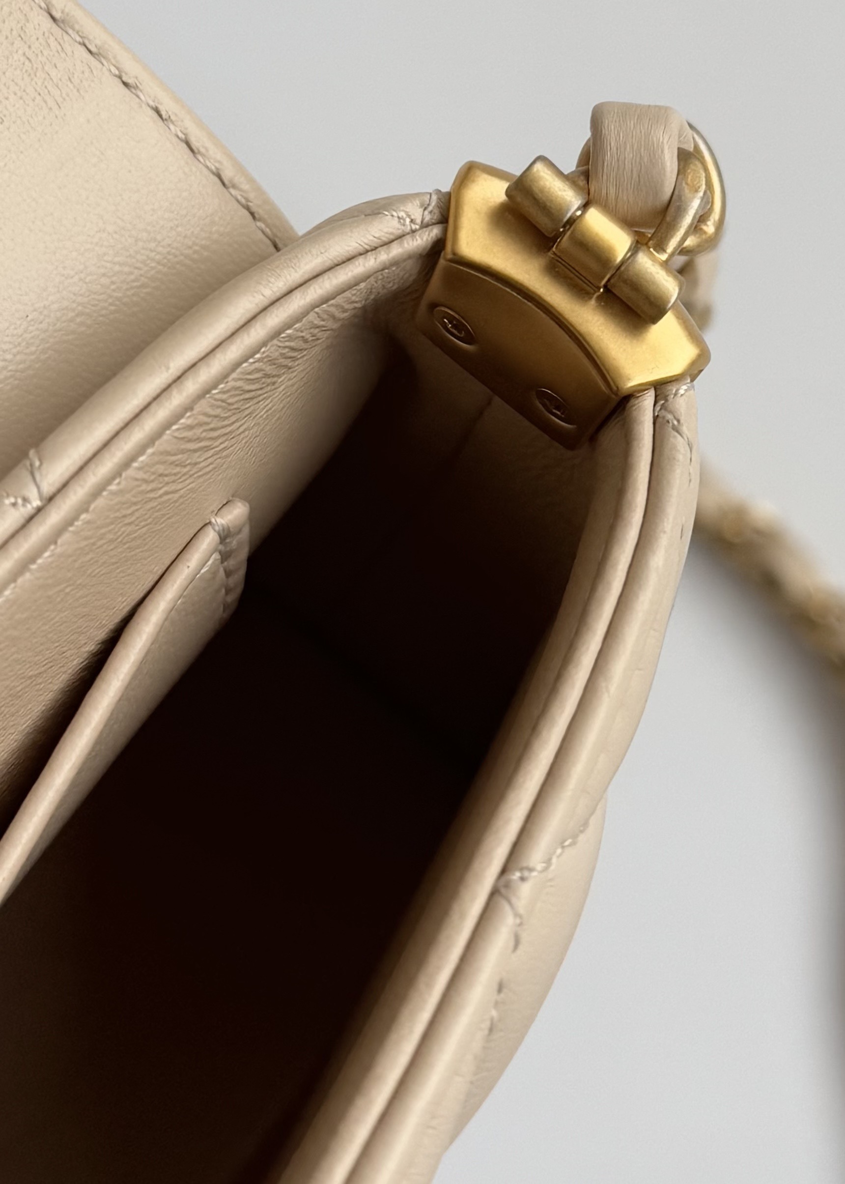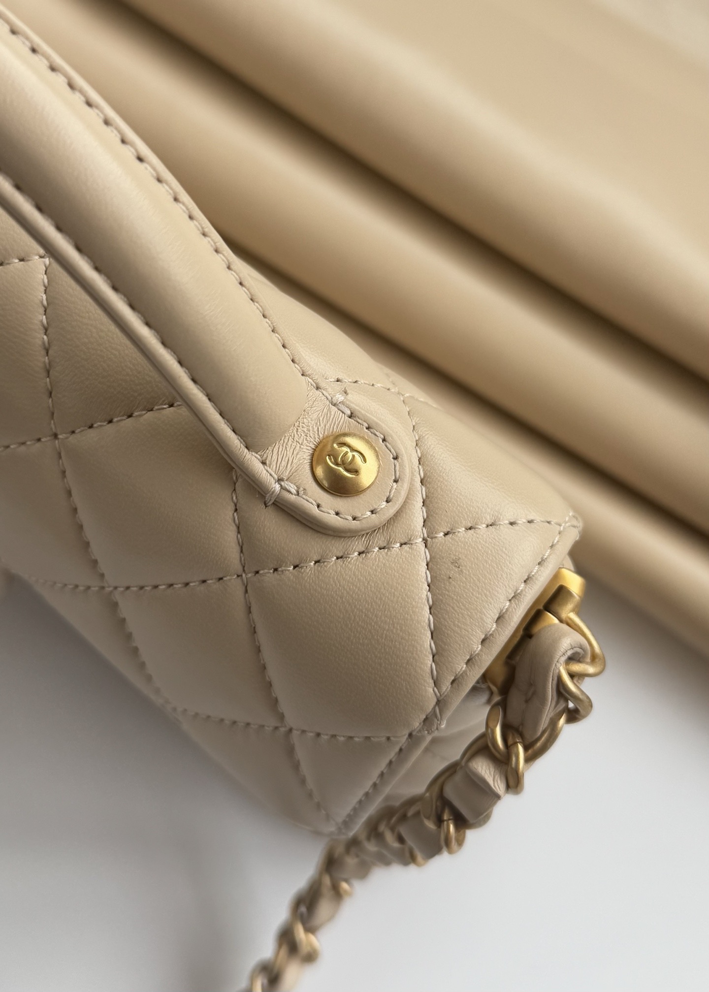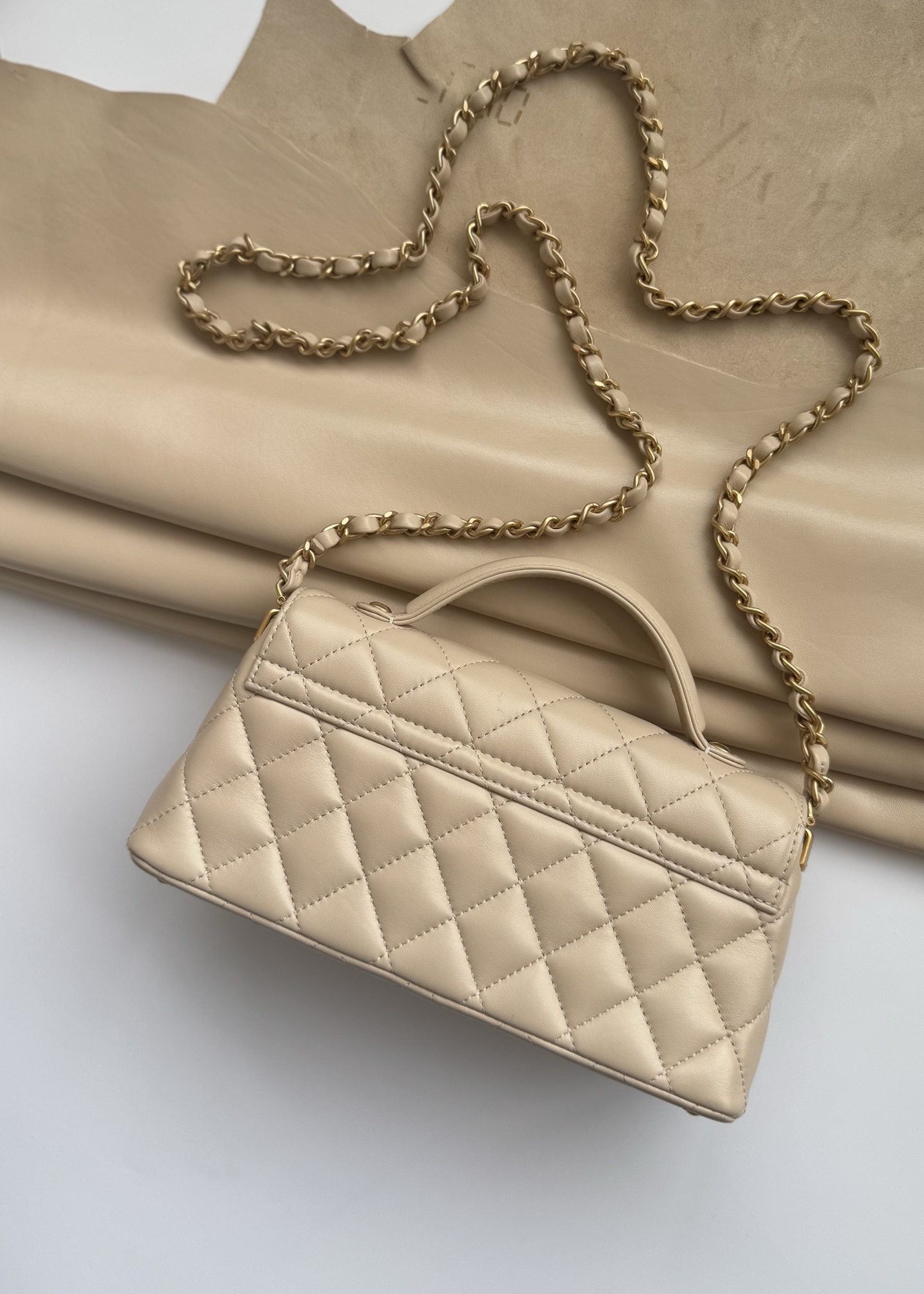 NIGO Chanel Women's Horizontal Trumpet Apricot Kelly Bag Lambskin Apricot Antique Gold Buckle Shoulder Crossbody Handbag #nigo332359