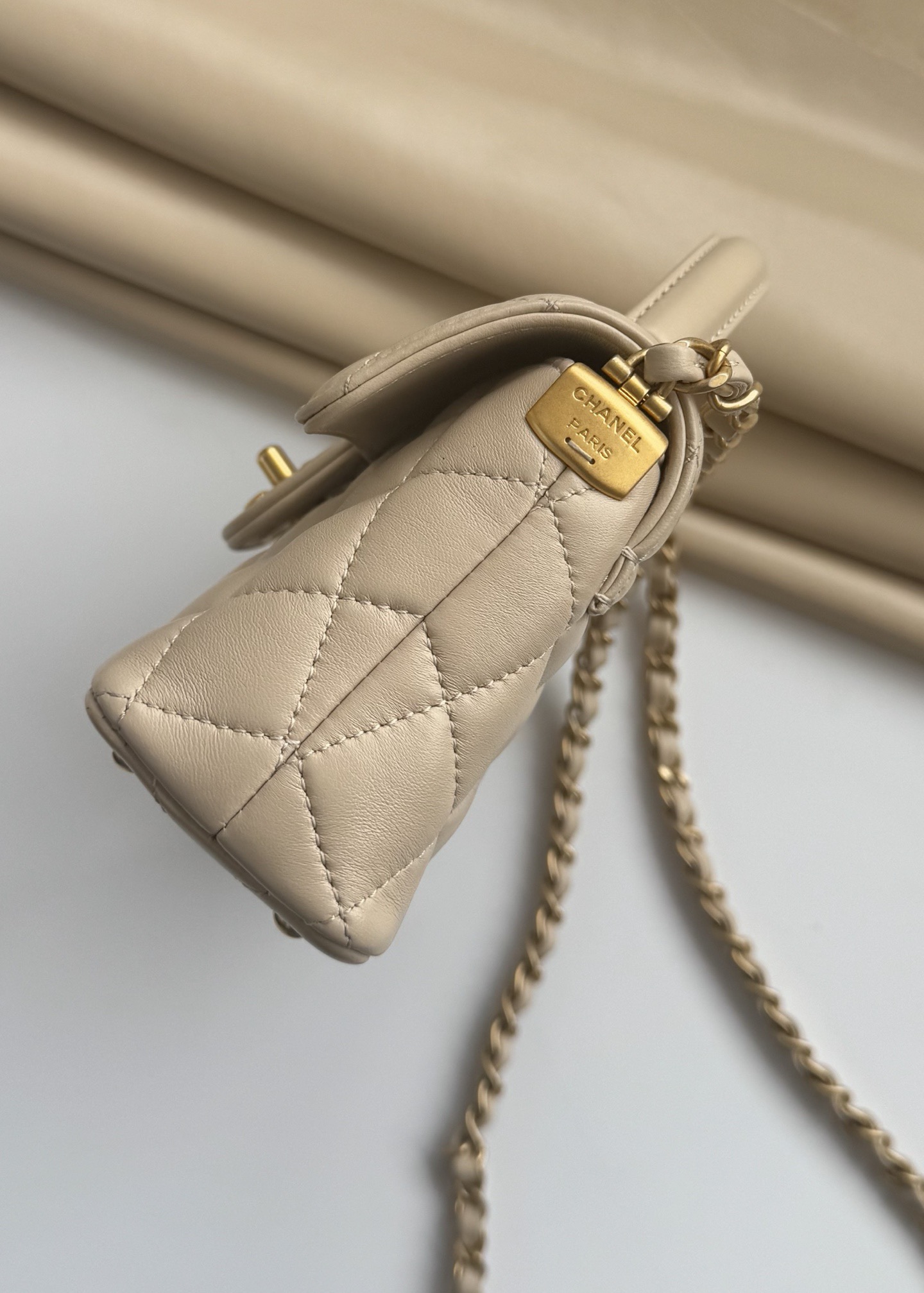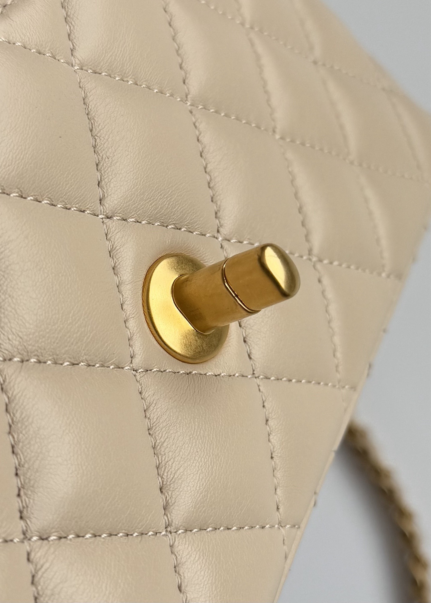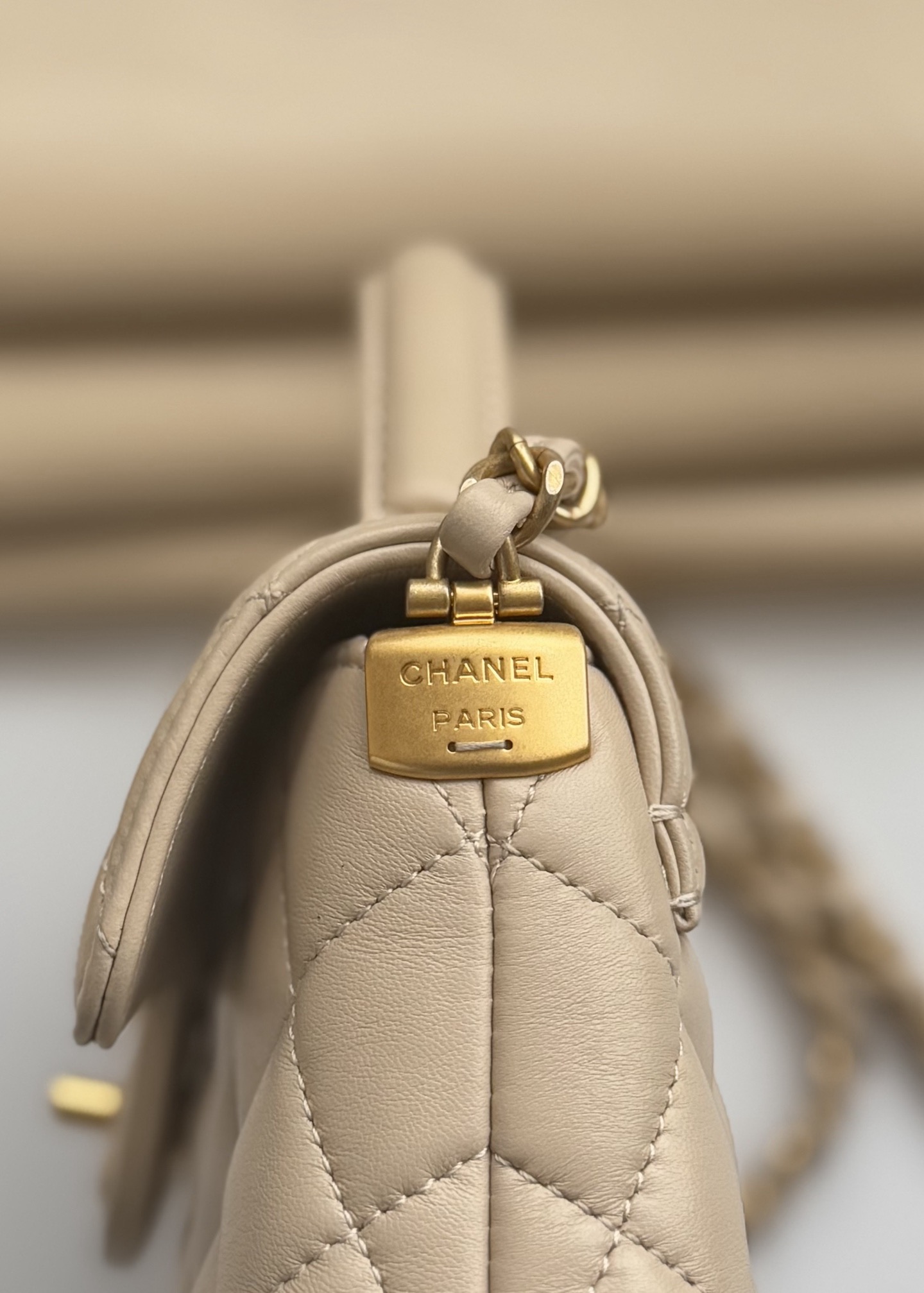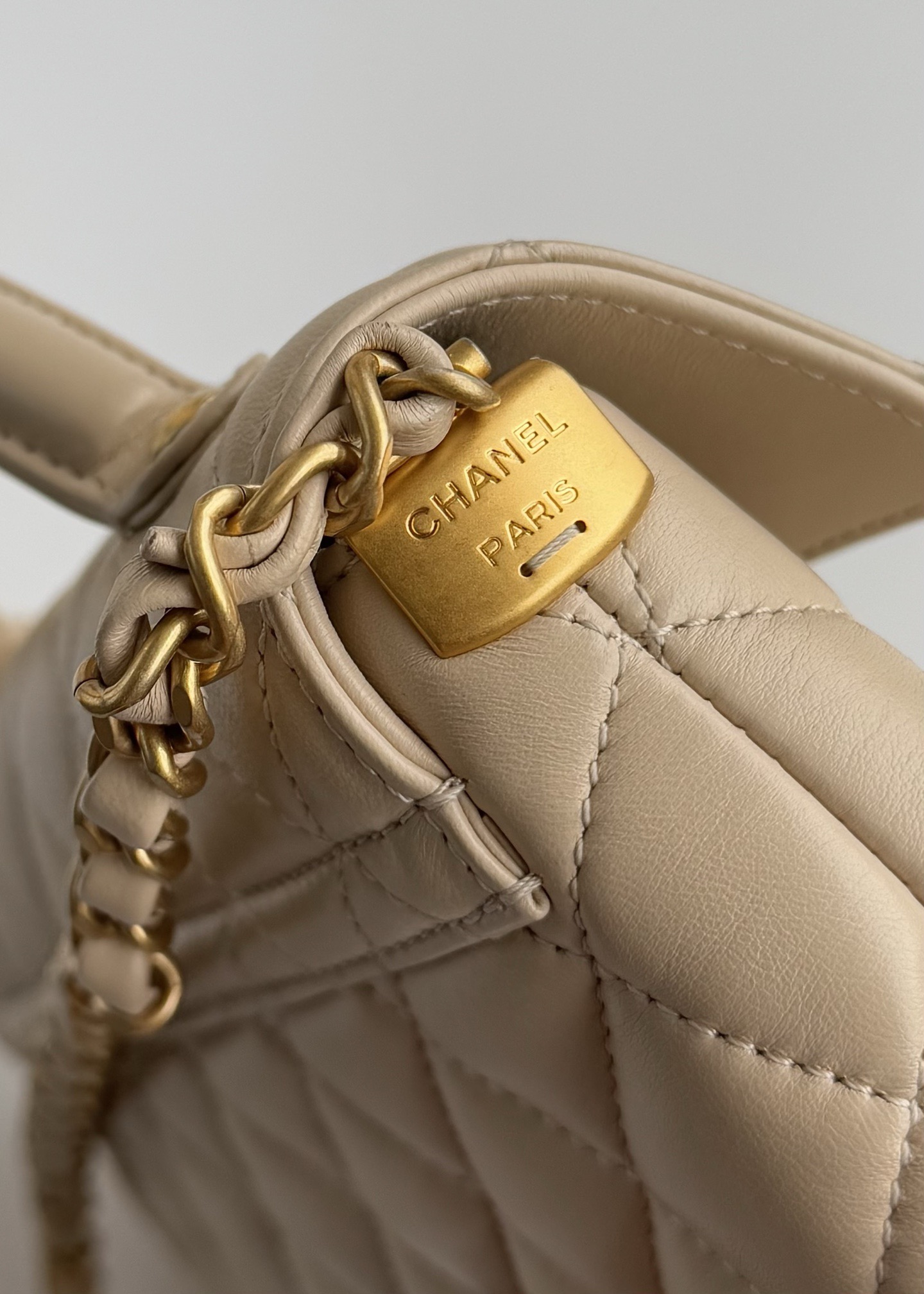 NIGO Chanel Women's Horizontal Trumpet Apricot Kelly Bag Lambskin Apricot Antique Gold Buckle Shoulder Crossbody Handbag #nigo332359