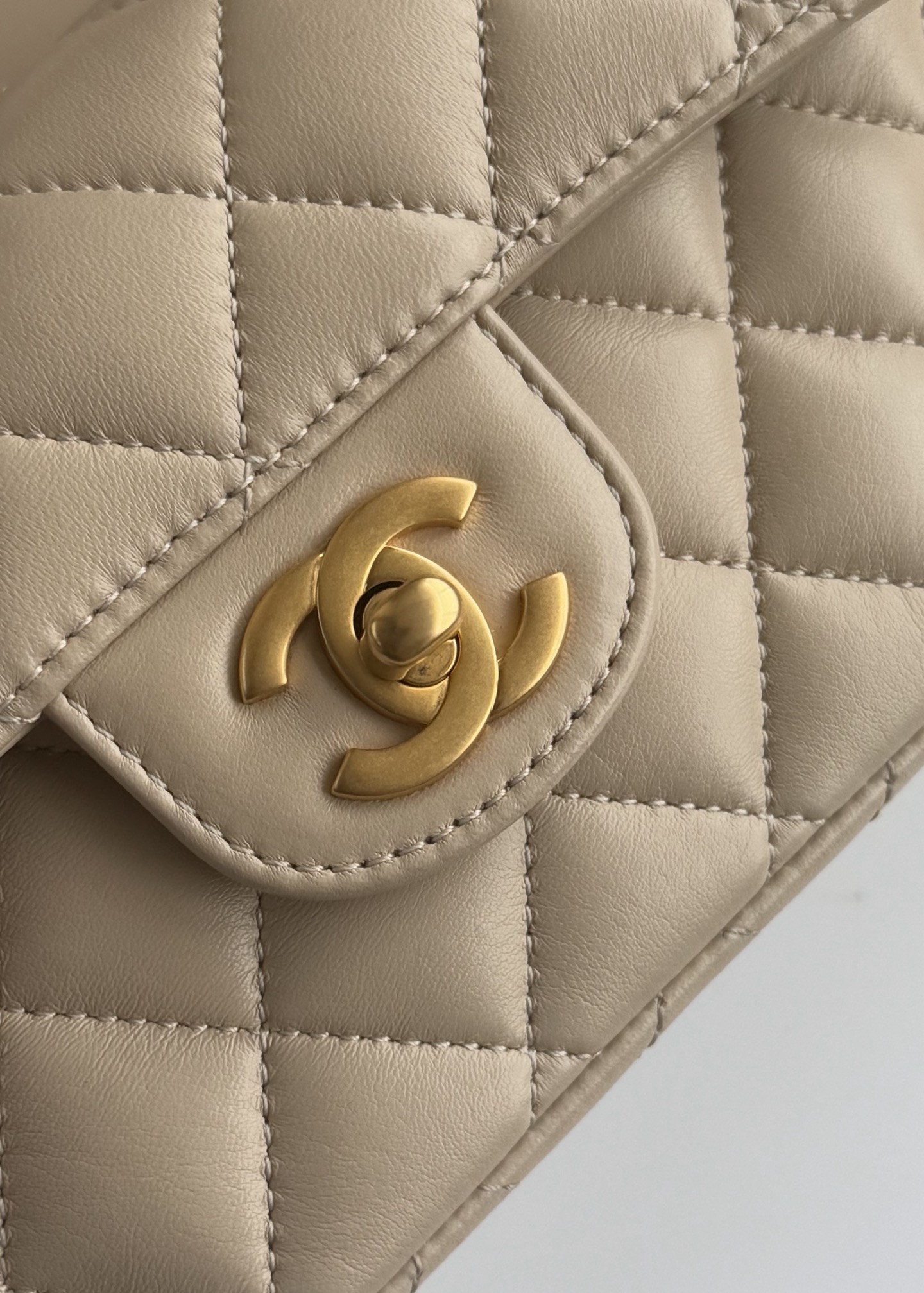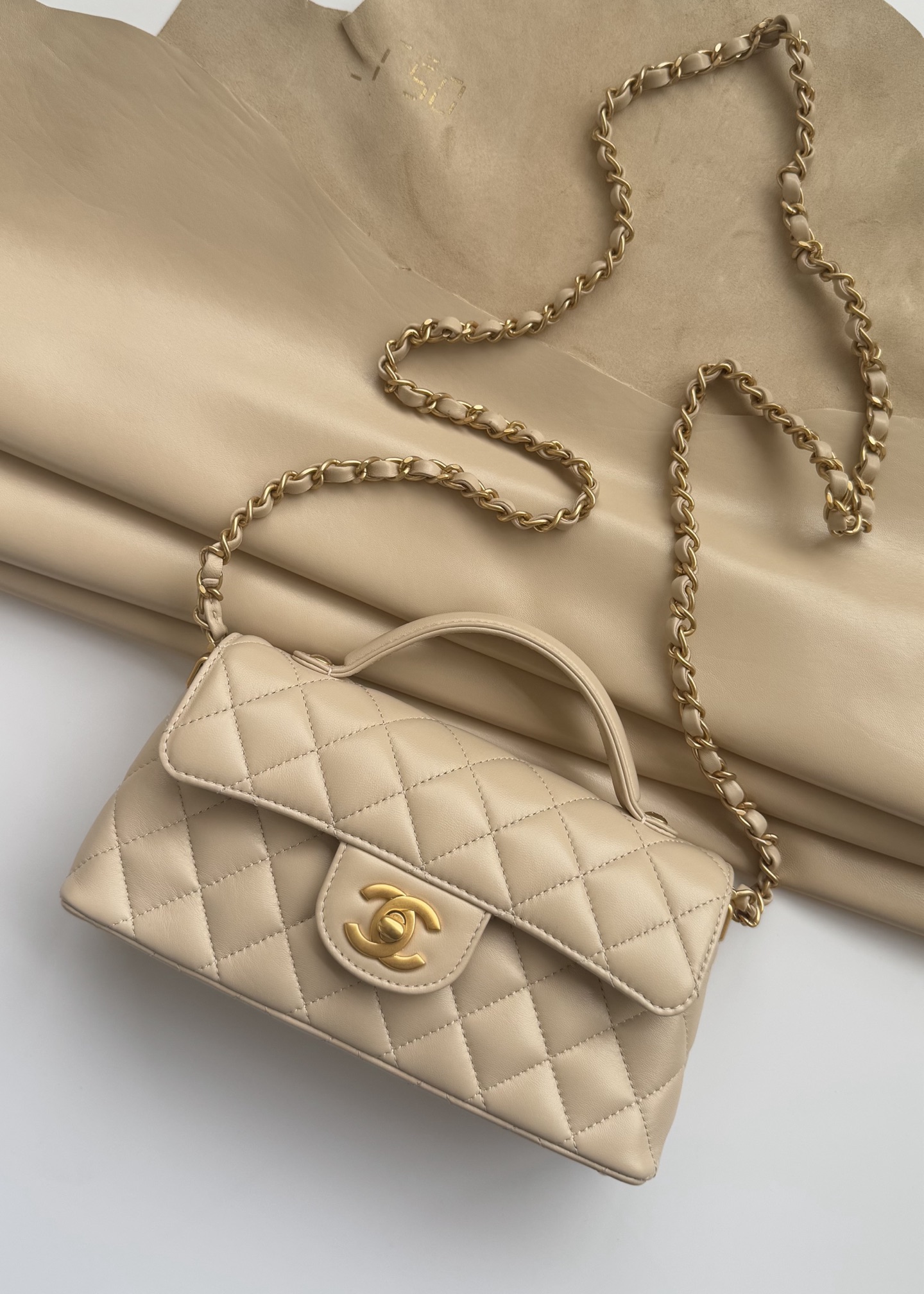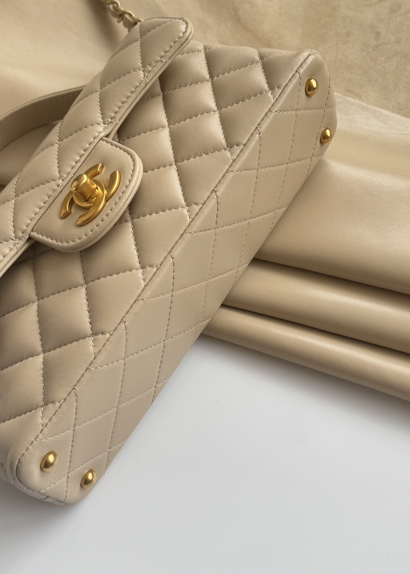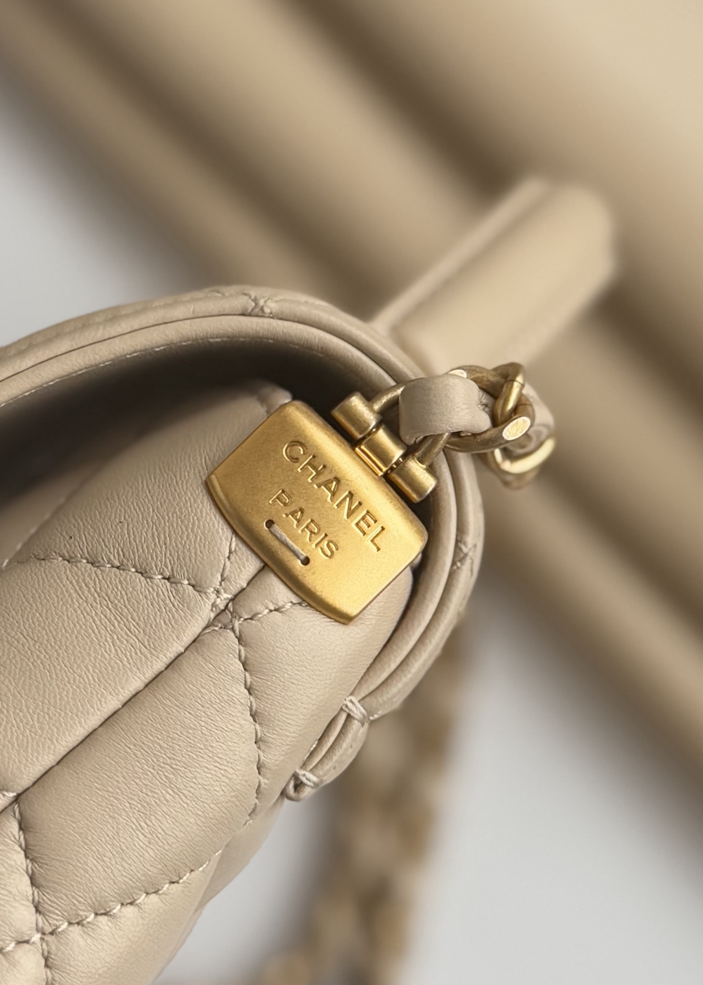 NIGO Chanel Women's Horizontal Trumpet Apricot Kelly Bag Lambskin Apricot Antique Gold Buckle Shoulder Crossbody Handbag #nigo332359