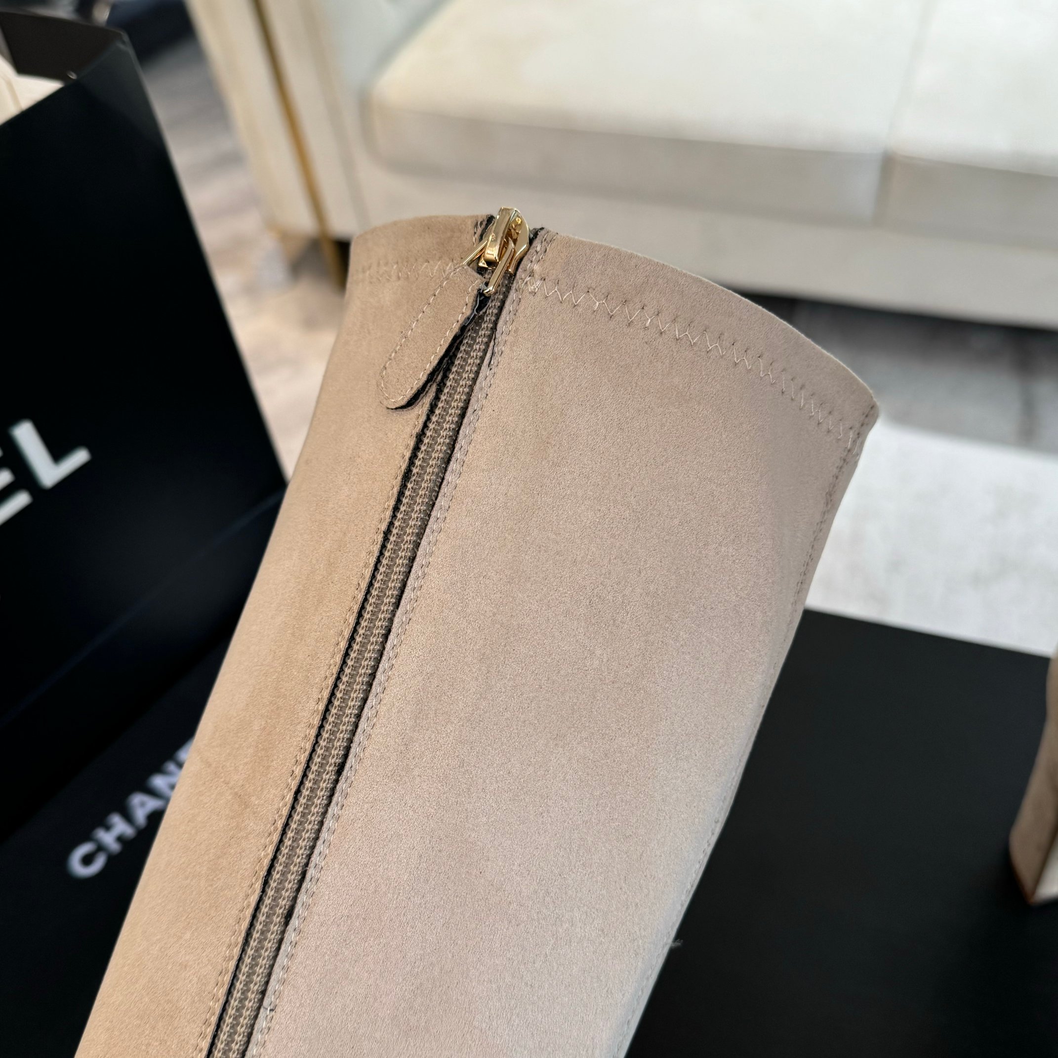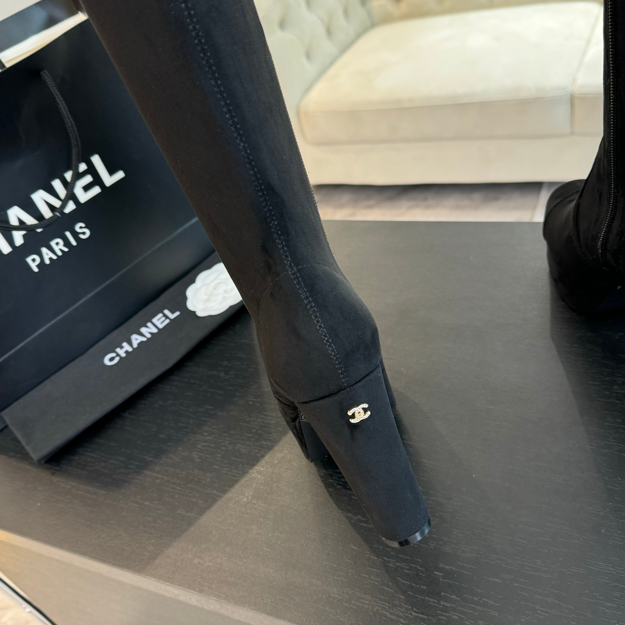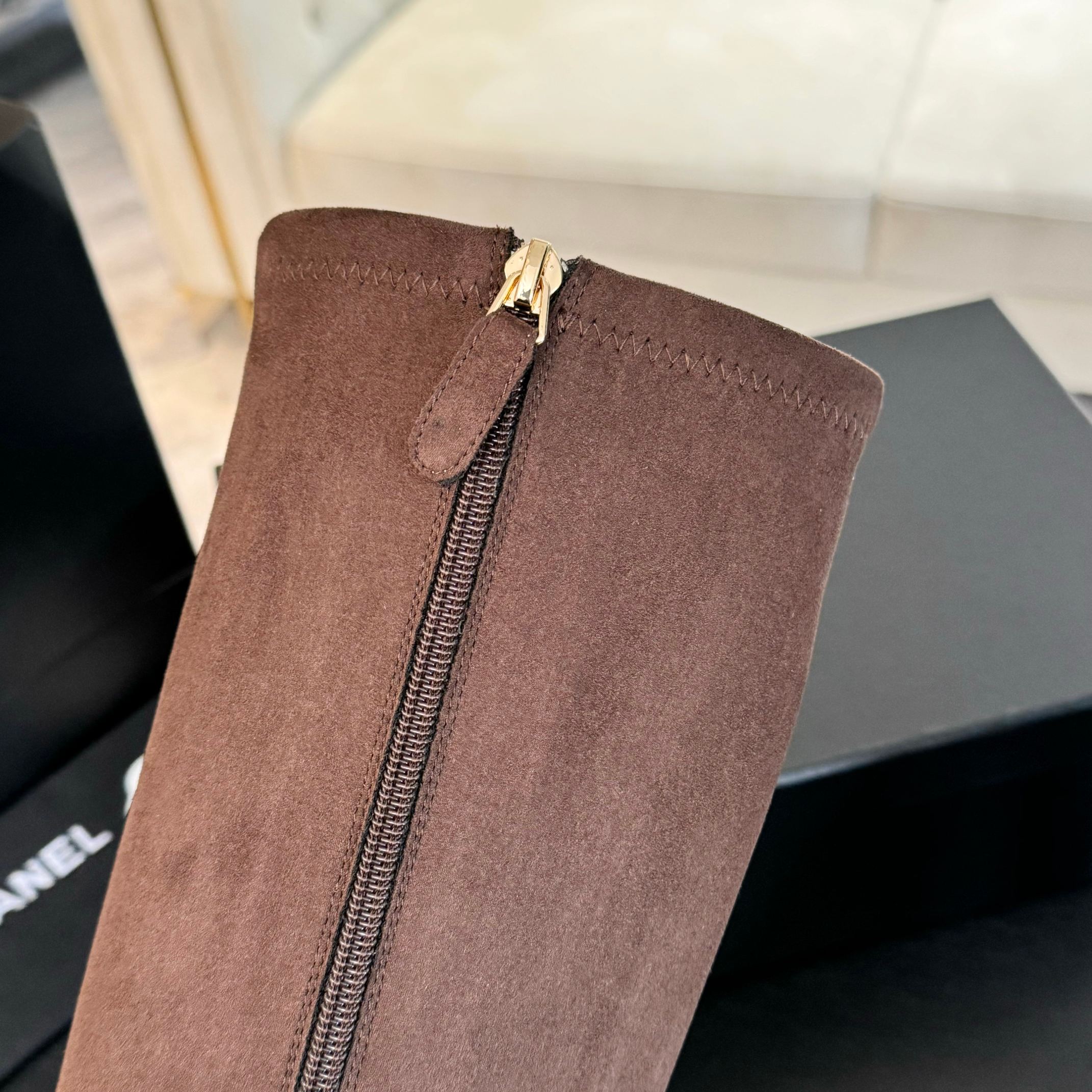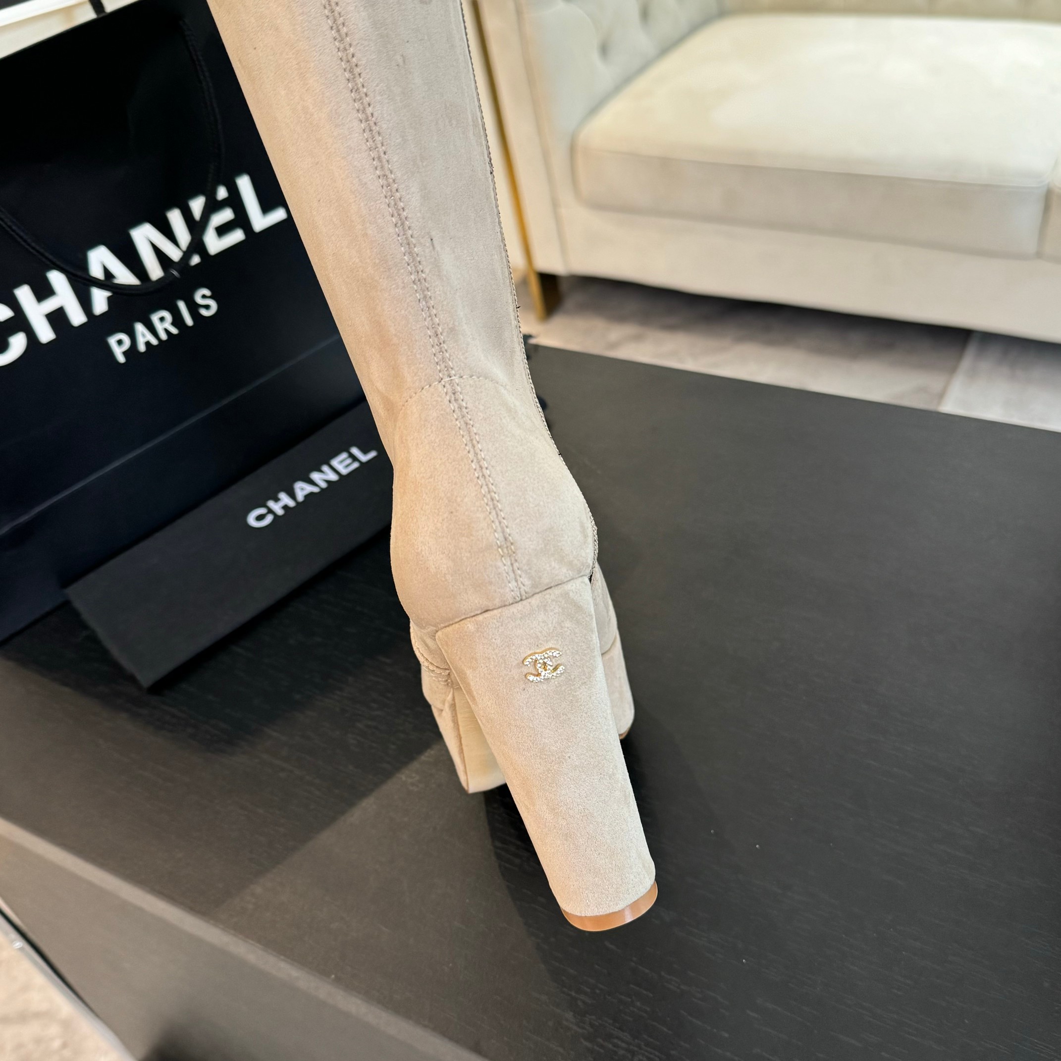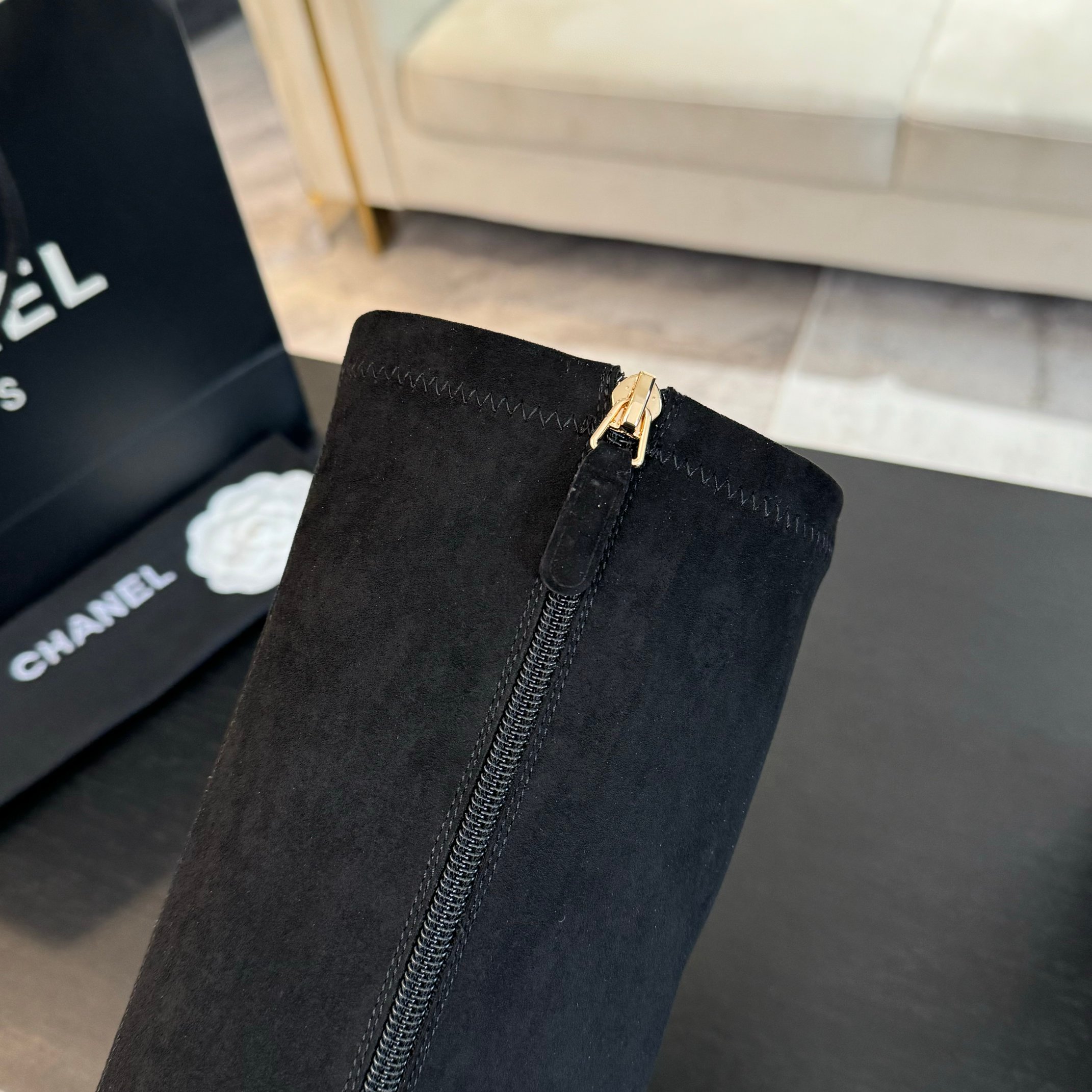 NIGO Chanel Women's Retro Sheep Suede Thigh High Boots Chunky Heel Stretch Skinny Boots High Heel 11.5CM Elegant Long Boots Shoes #nigo71992