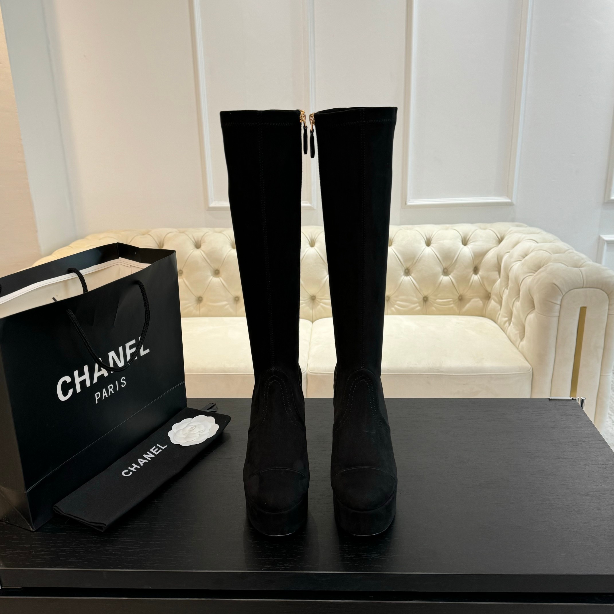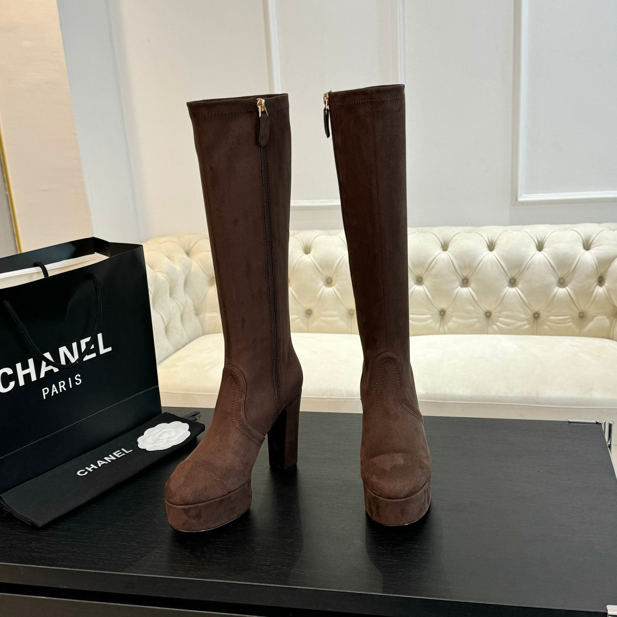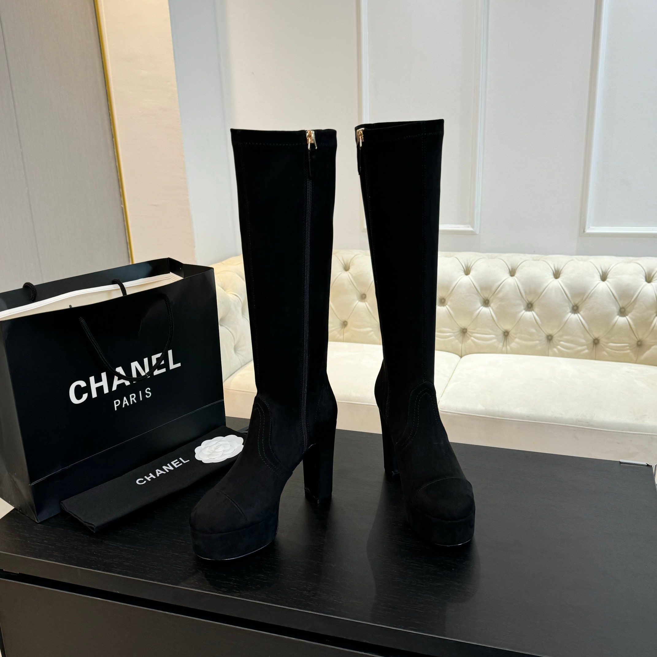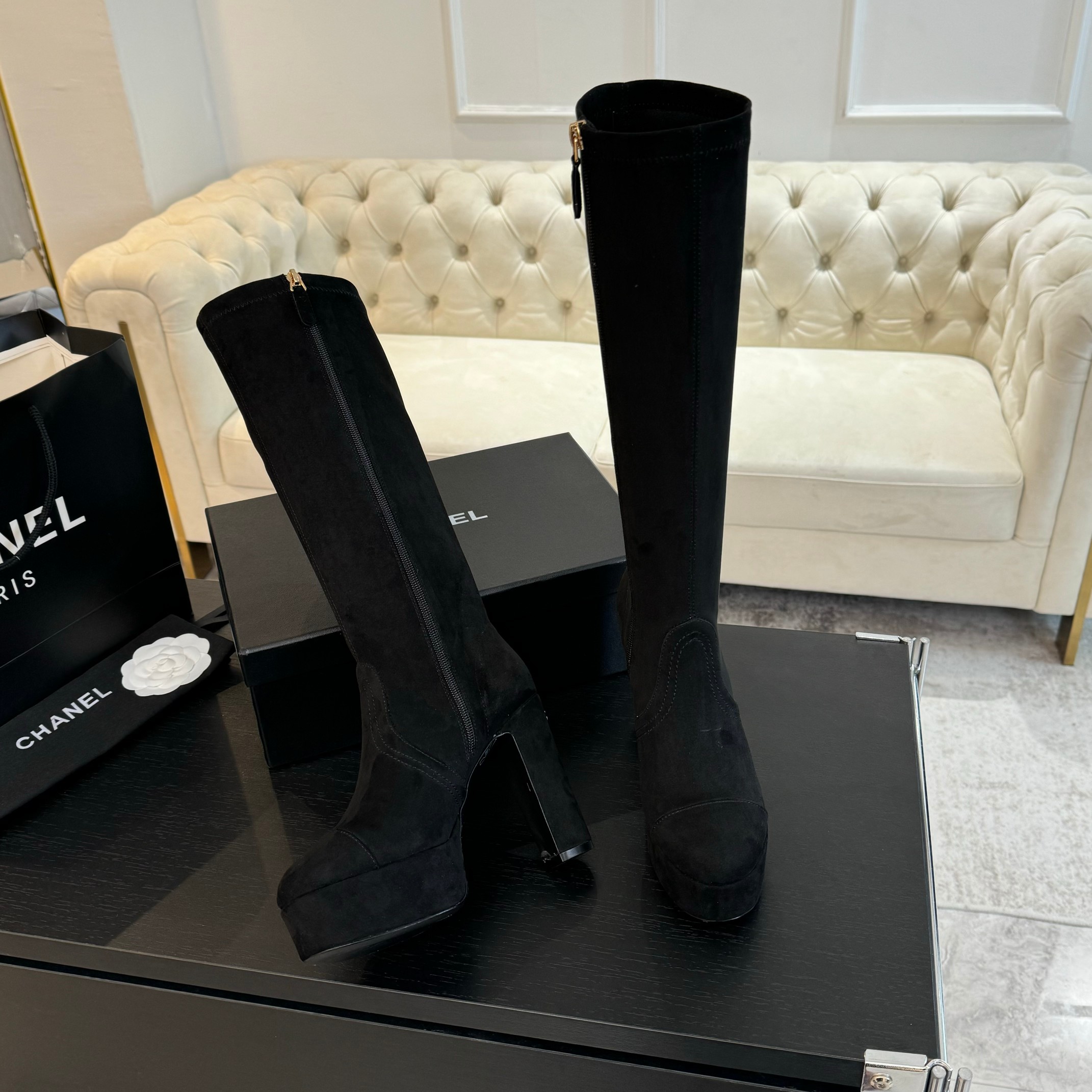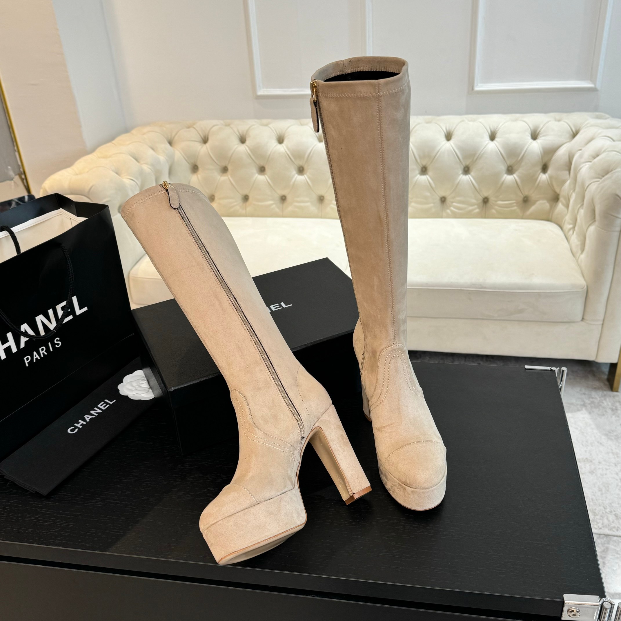 NIGO Chanel Women's Retro Sheep Suede Thigh High Boots Chunky Heel Stretch Skinny Boots High Heel 11.5CM Elegant Long Boots Shoes #nigo71992
