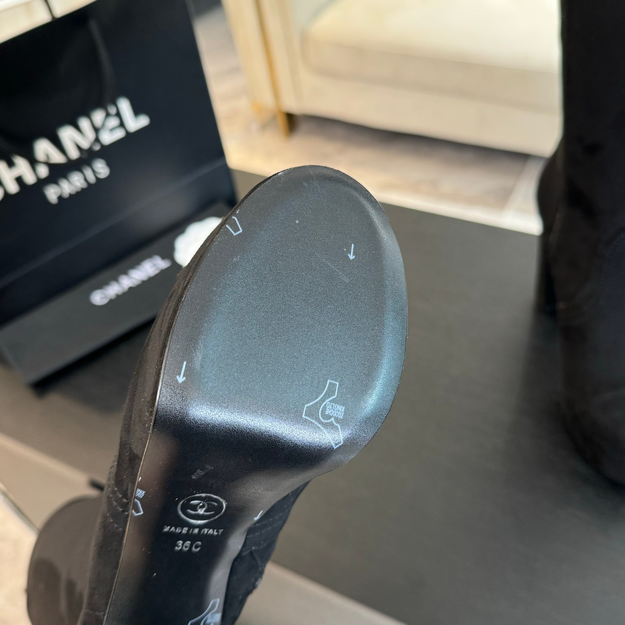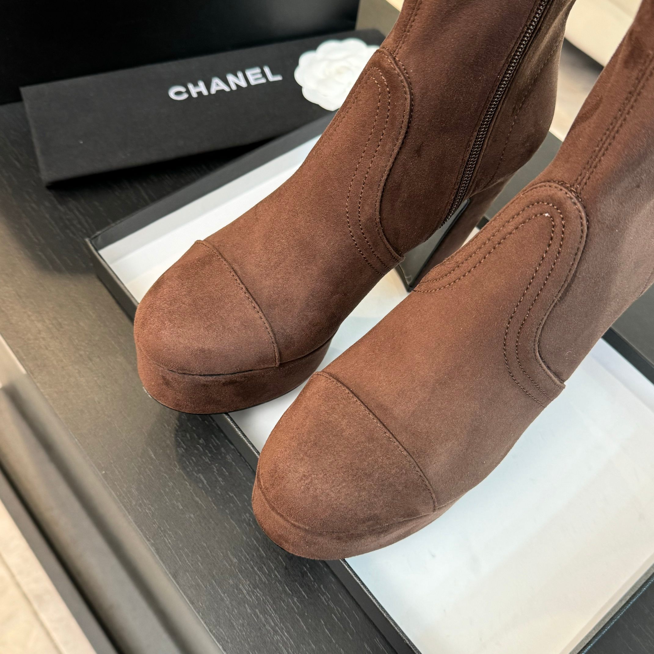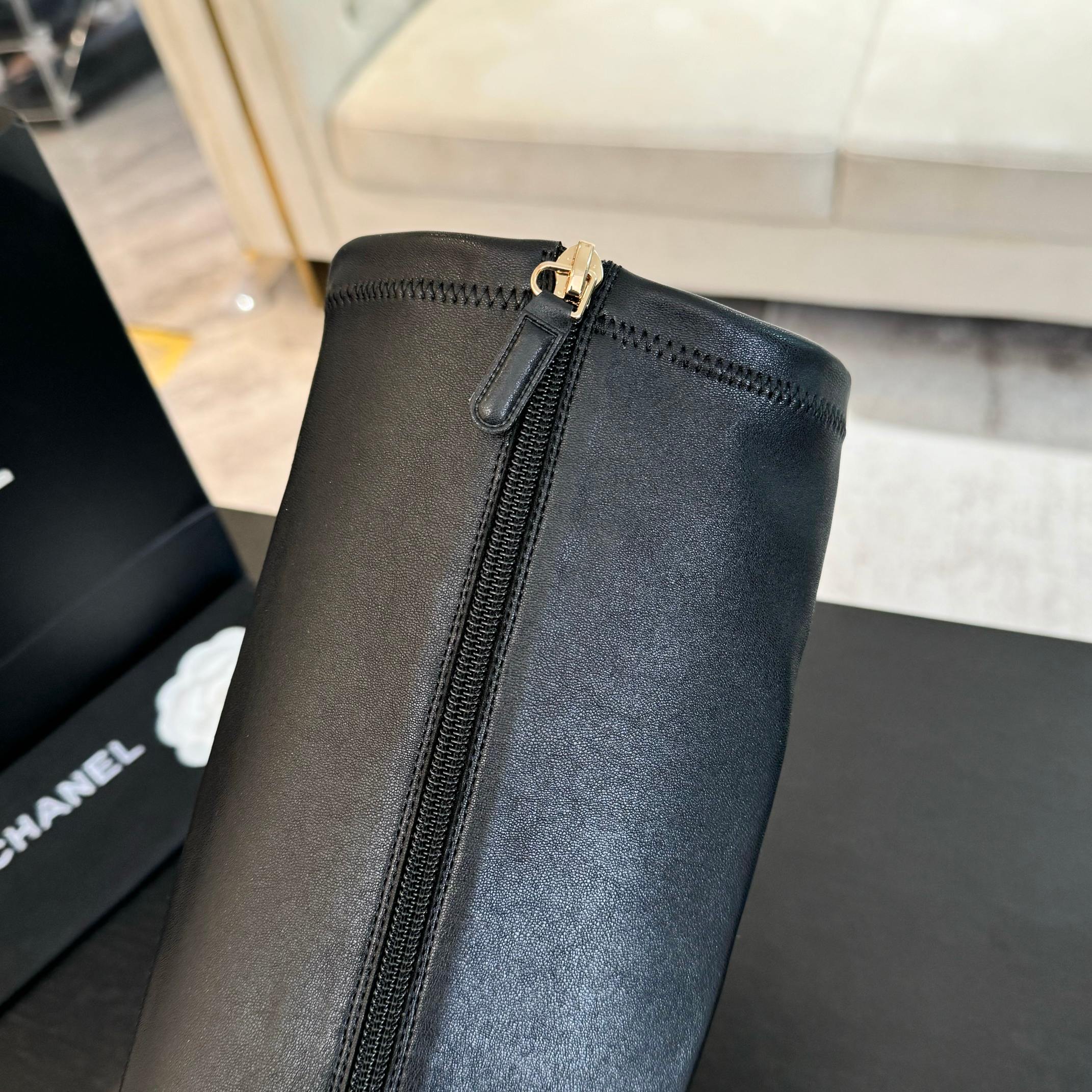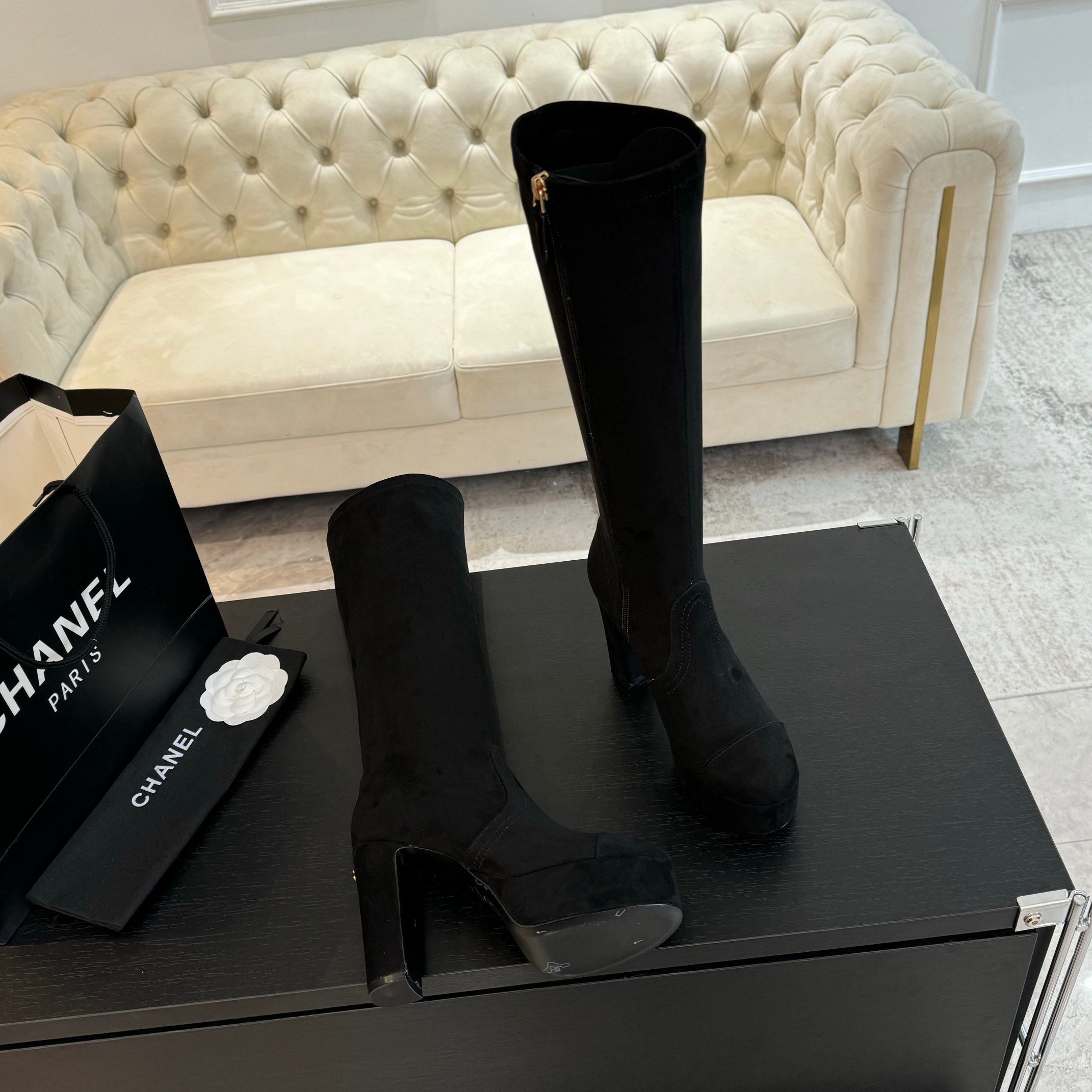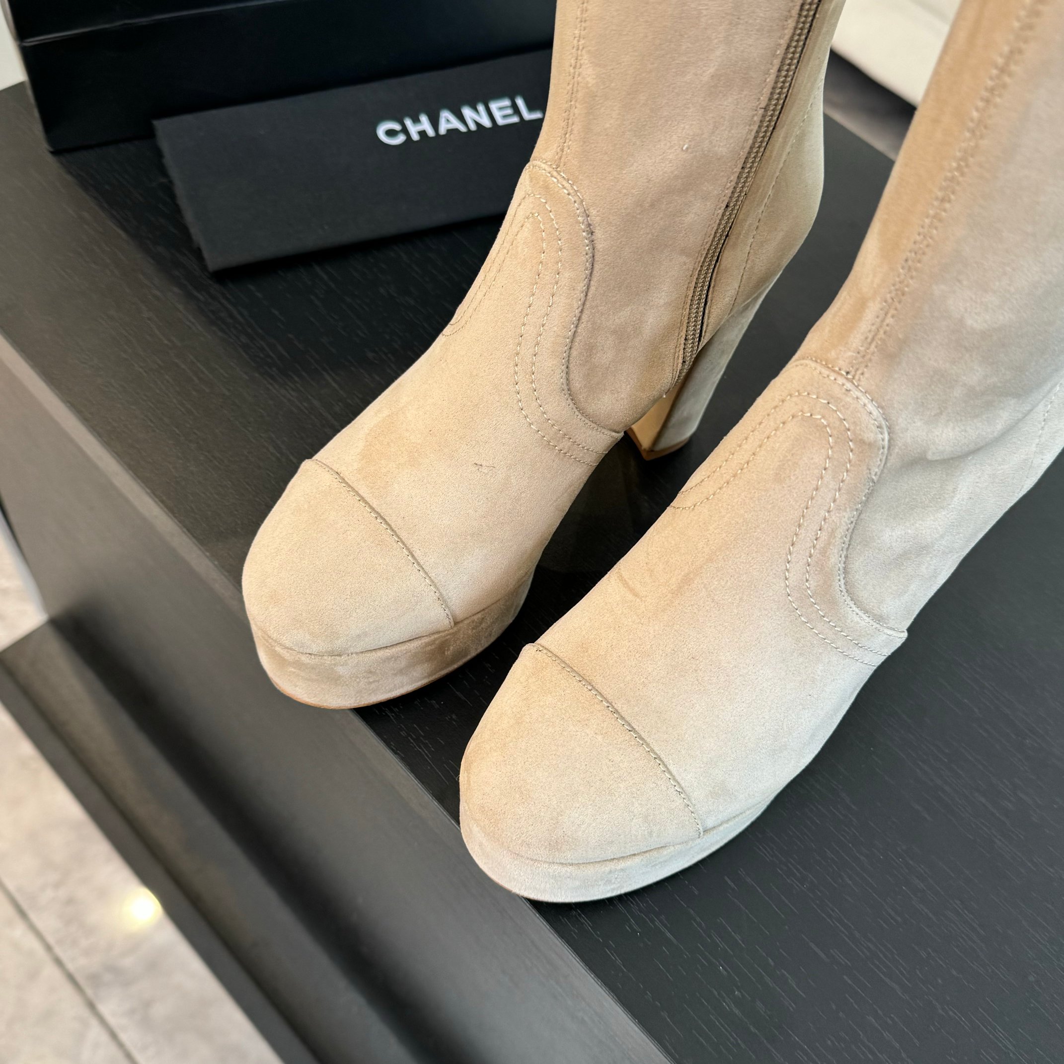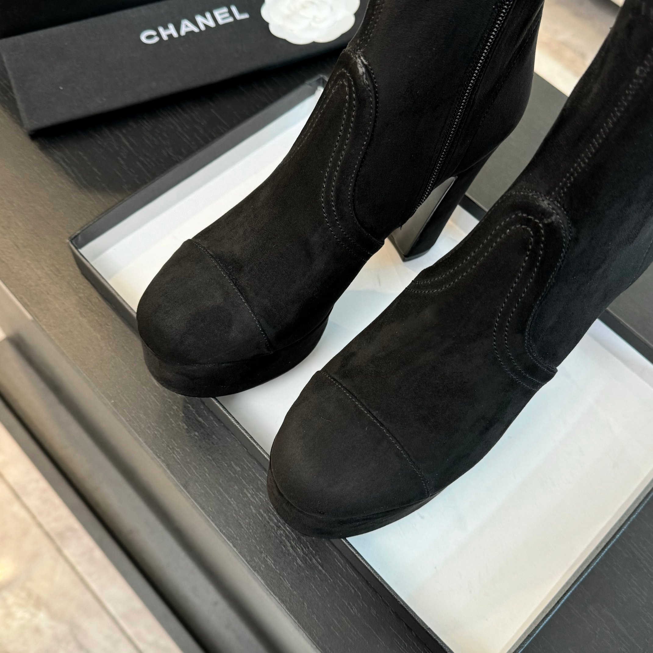 NIGO Chanel Women's Retro Sheep Suede Thigh High Boots Chunky Heel Stretch Skinny Boots High Heel 11.5CM Elegant Long Boots Shoes #nigo71992