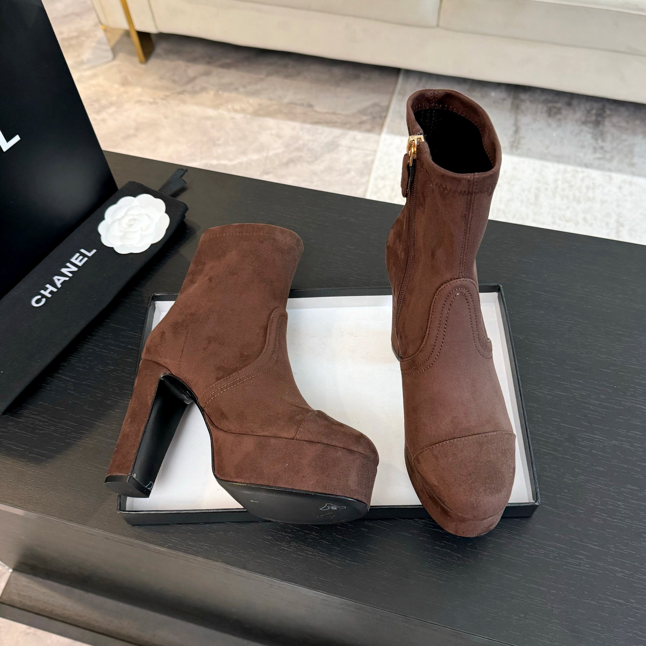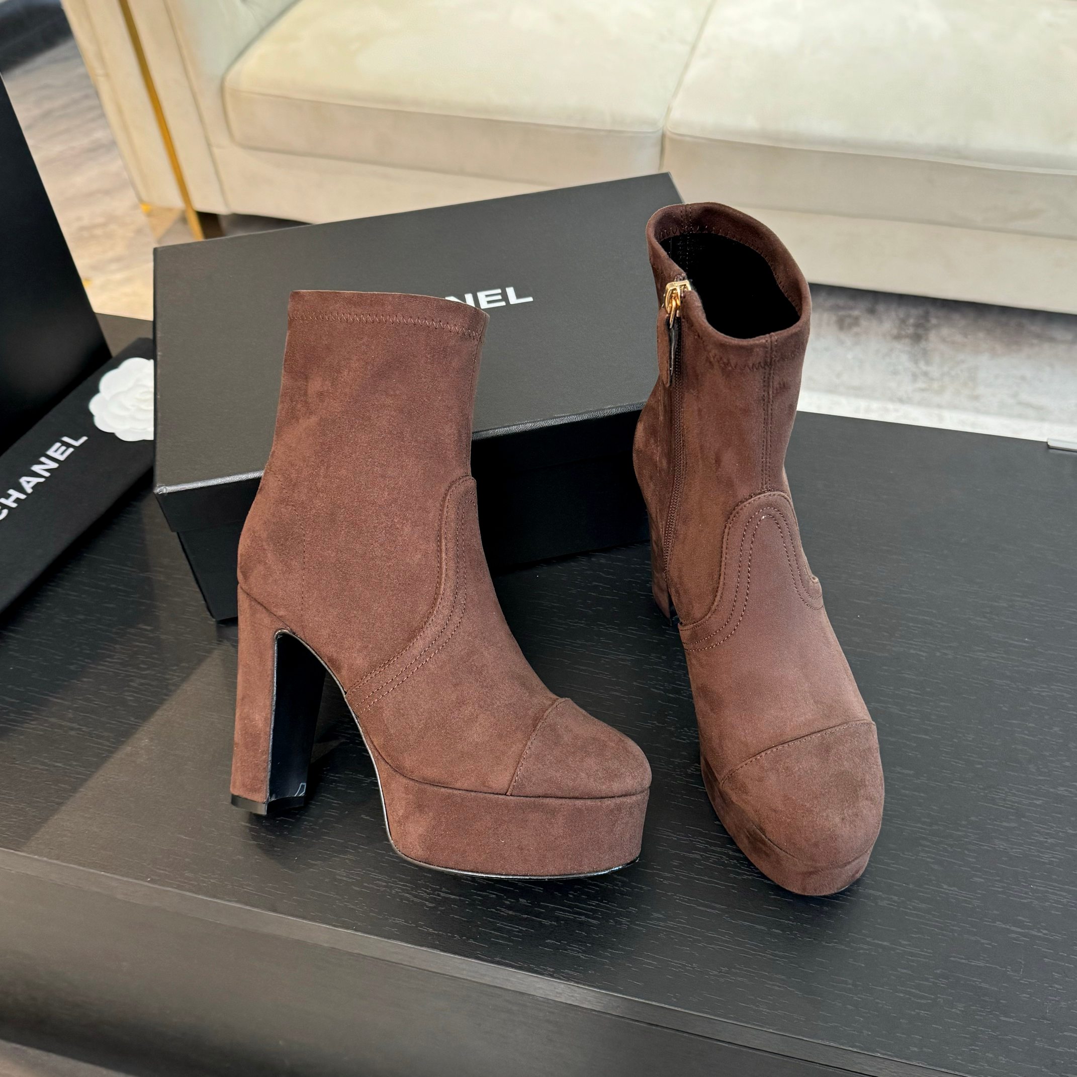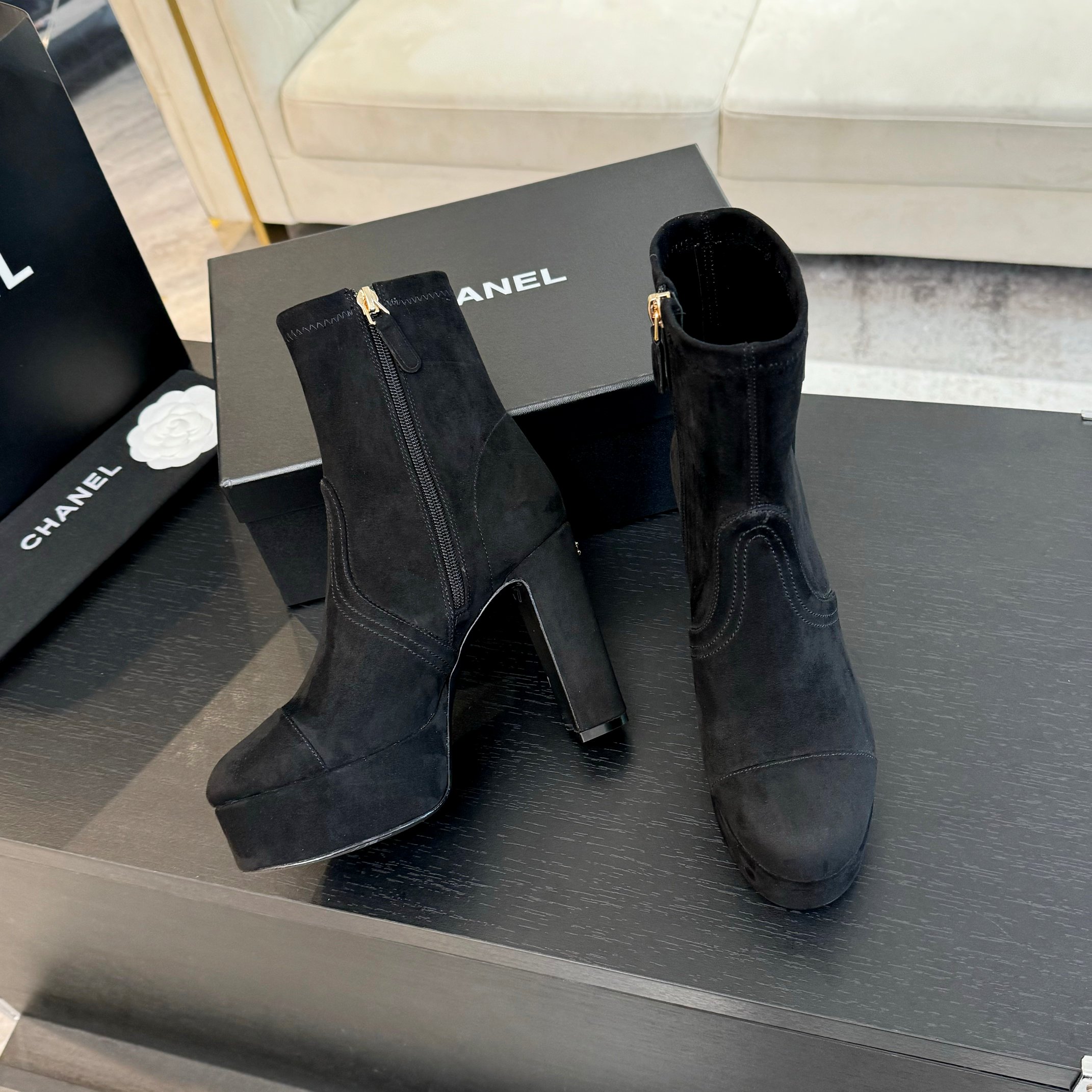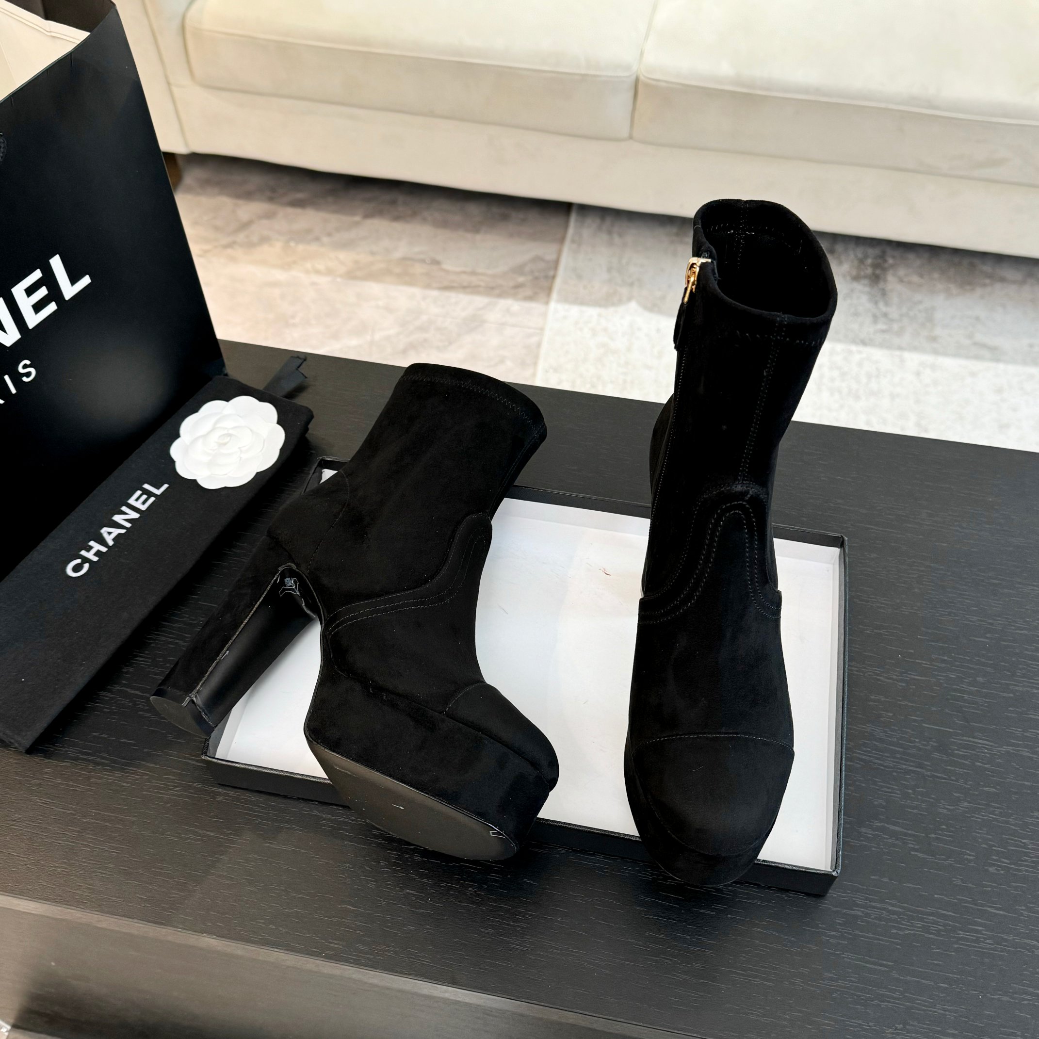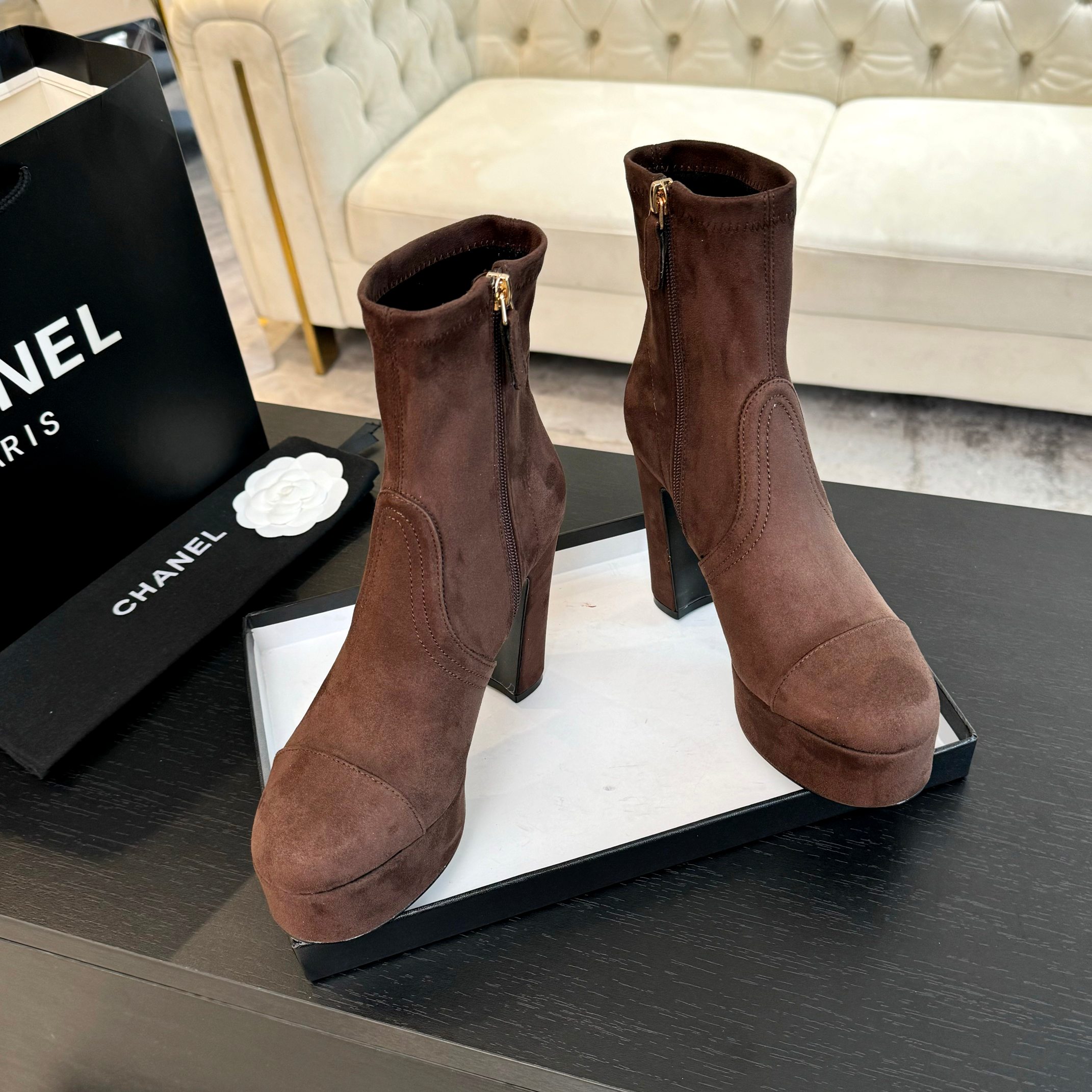 NIGO Chanel Women's Retro Sheep Suede Thigh High Boots Chunky Heel Stretch Skinny Boots High Heel 11.5CM Elegant Long Boots Shoes #nigo71992
