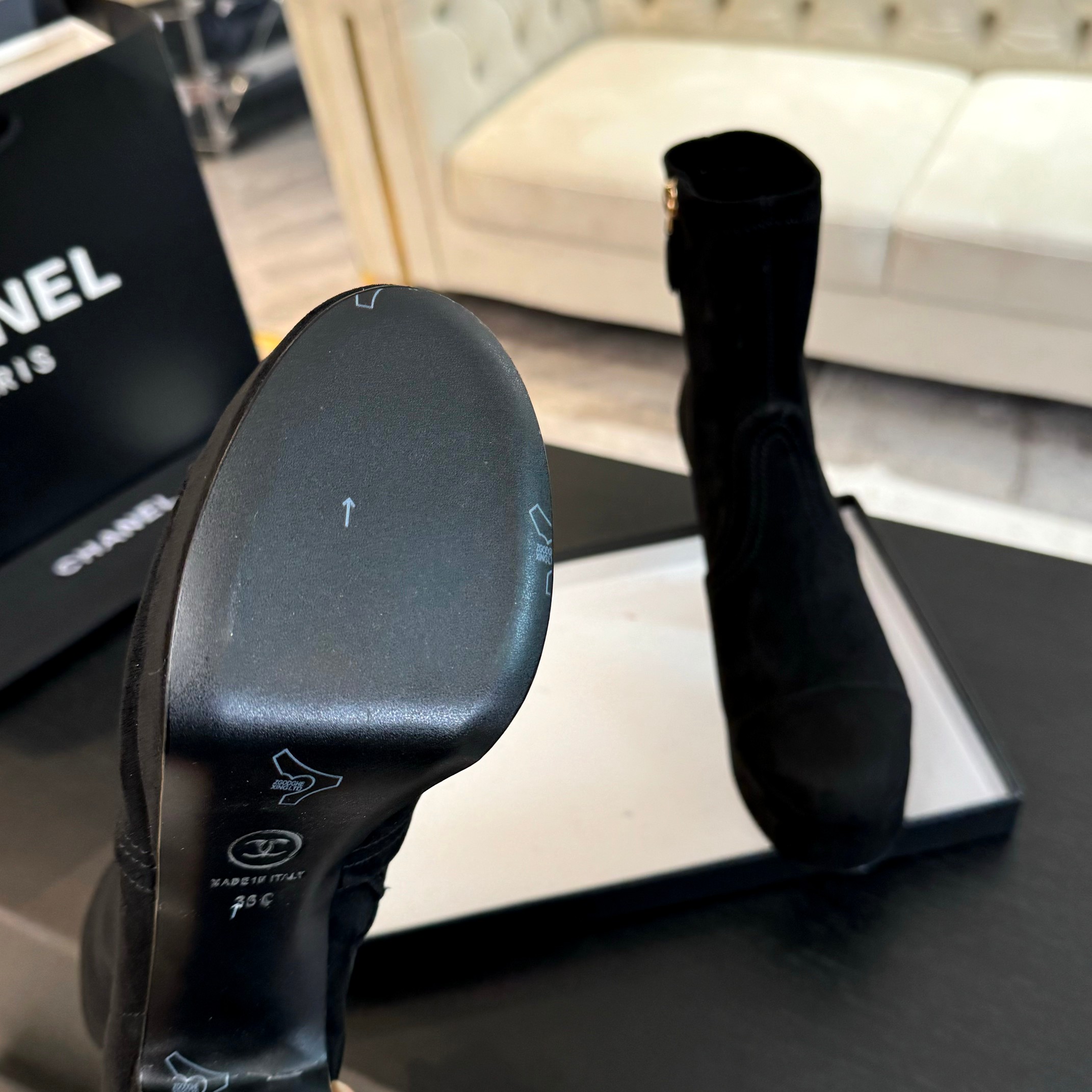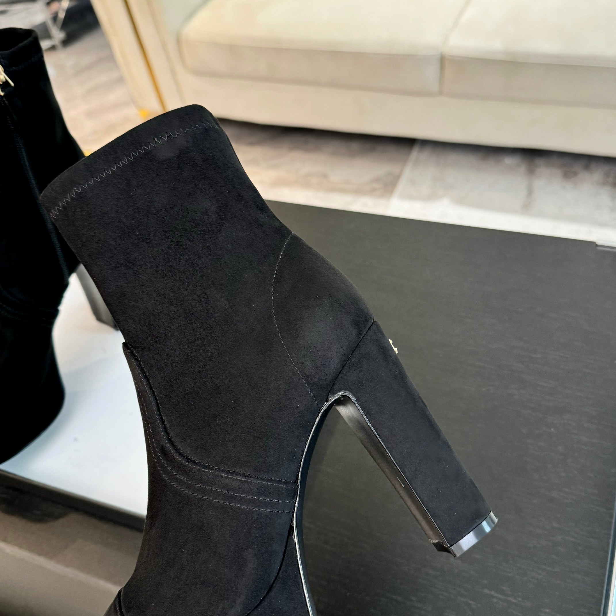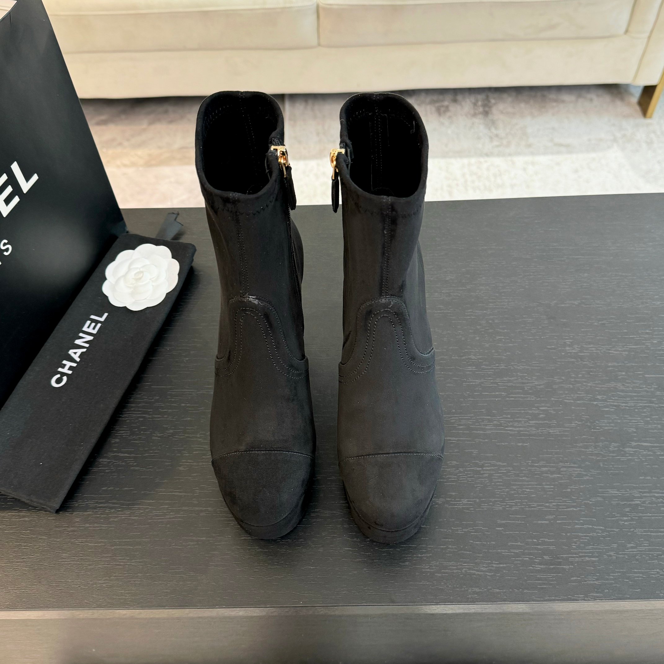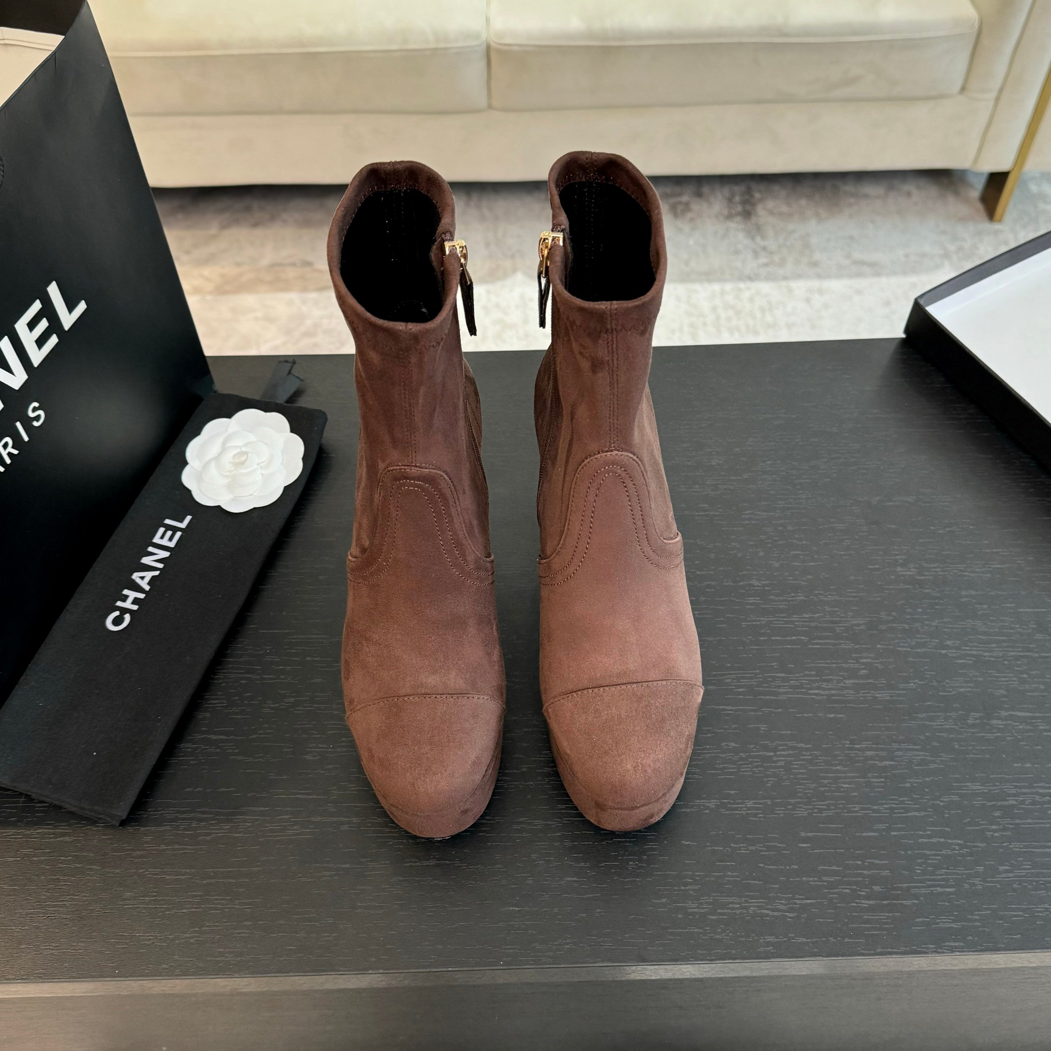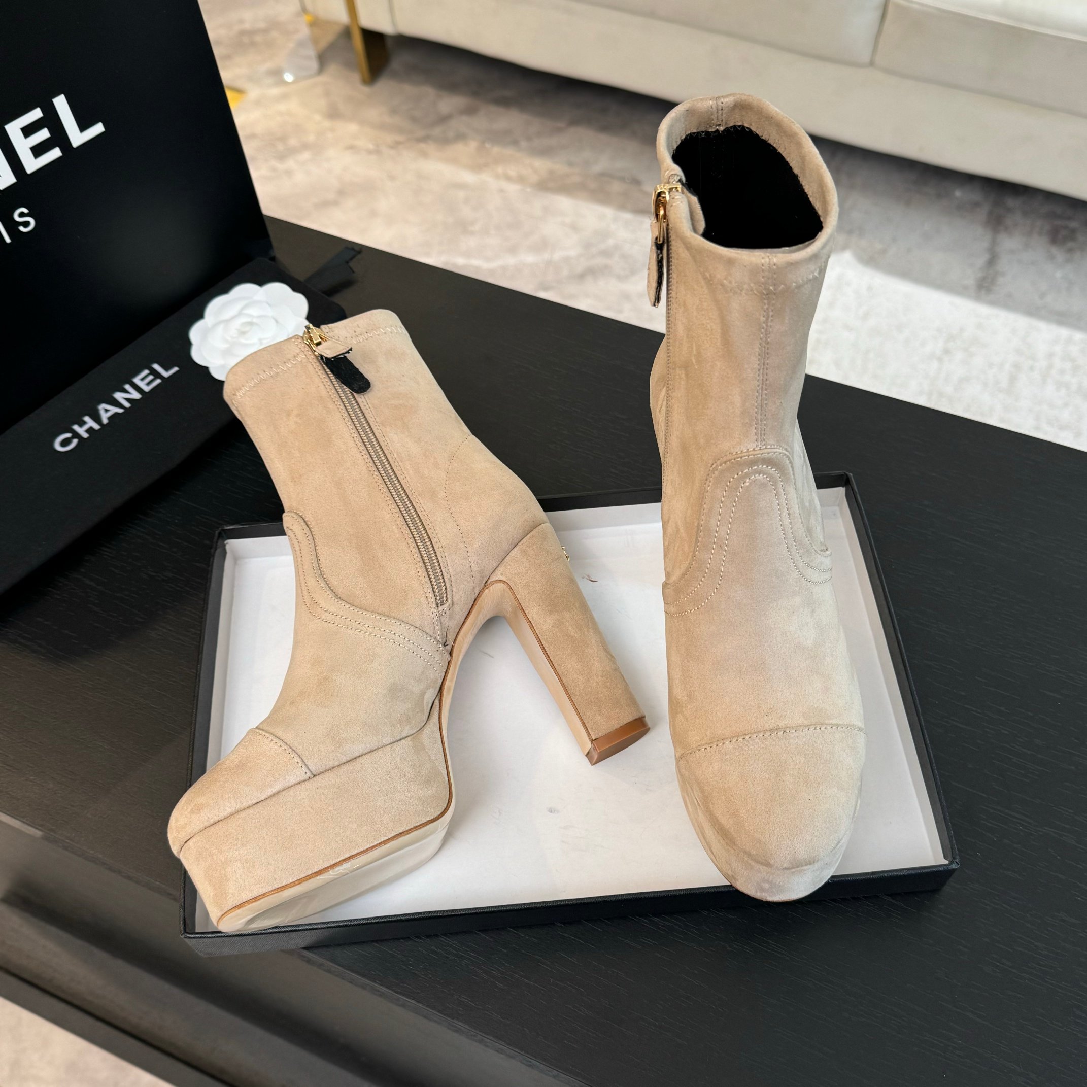 NIGO Chanel Women's Retro Sheep Suede Thigh High Boots Chunky Heel Stretch Skinny Boots High Heel 11.5CM Elegant Long Boots Shoes #nigo71992