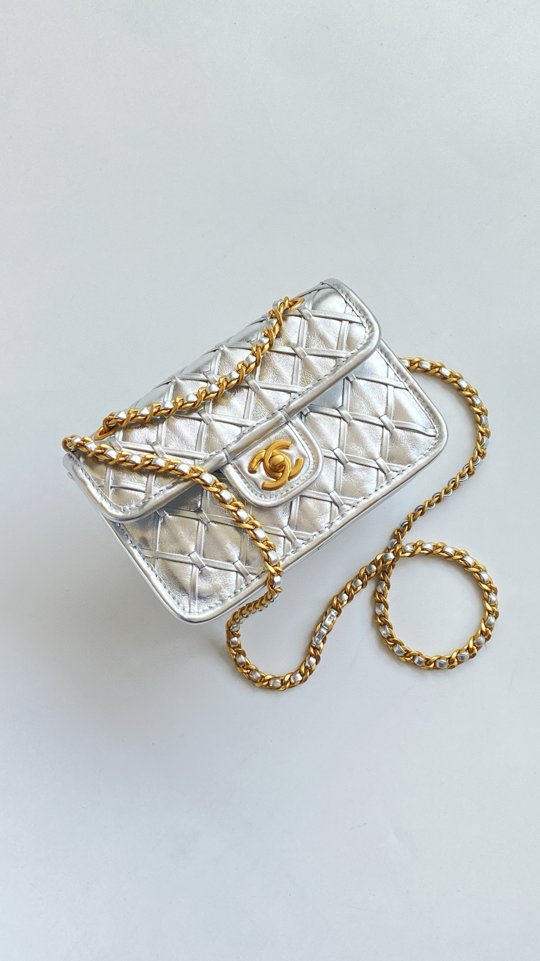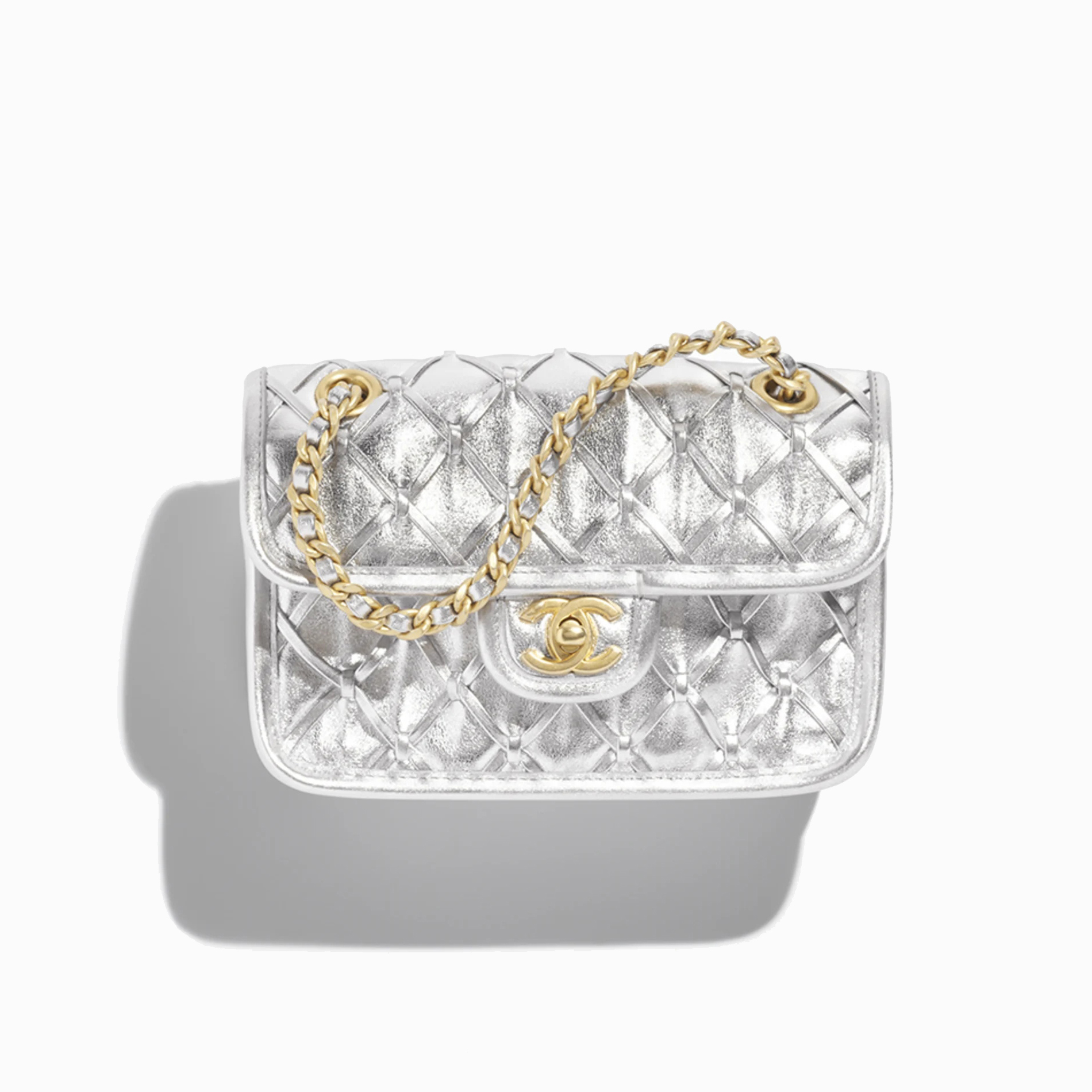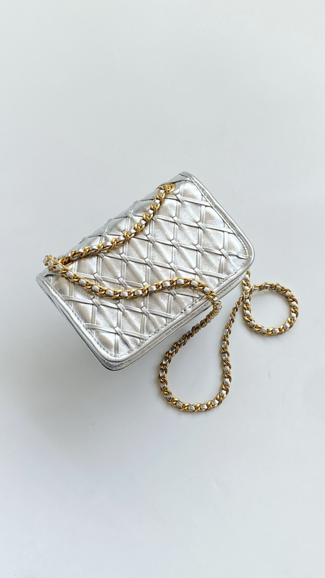 NIGO Chanel Women's Silver Lattice Chain Metallic Mirror Calfskin Shoulder Crossbody Bag Bags #nigo76372
