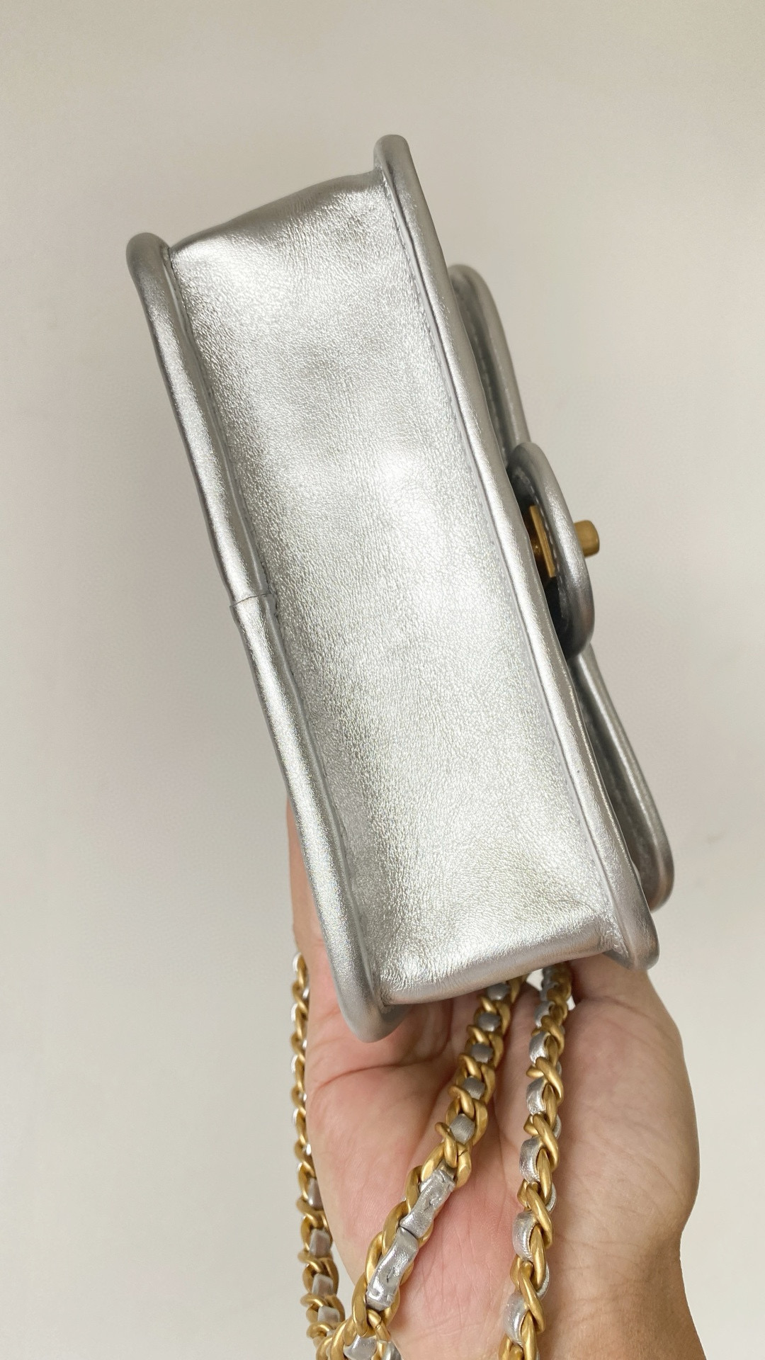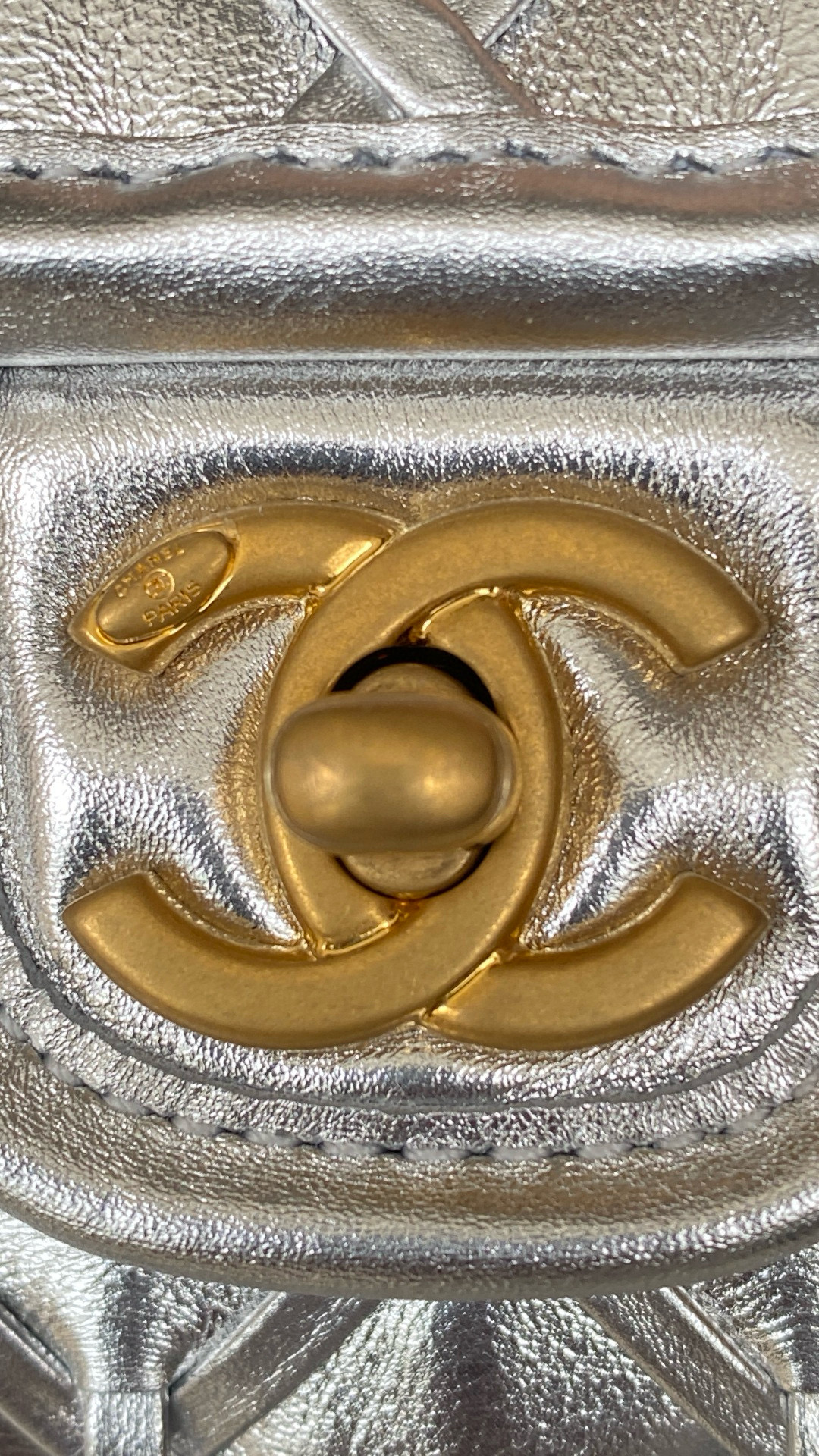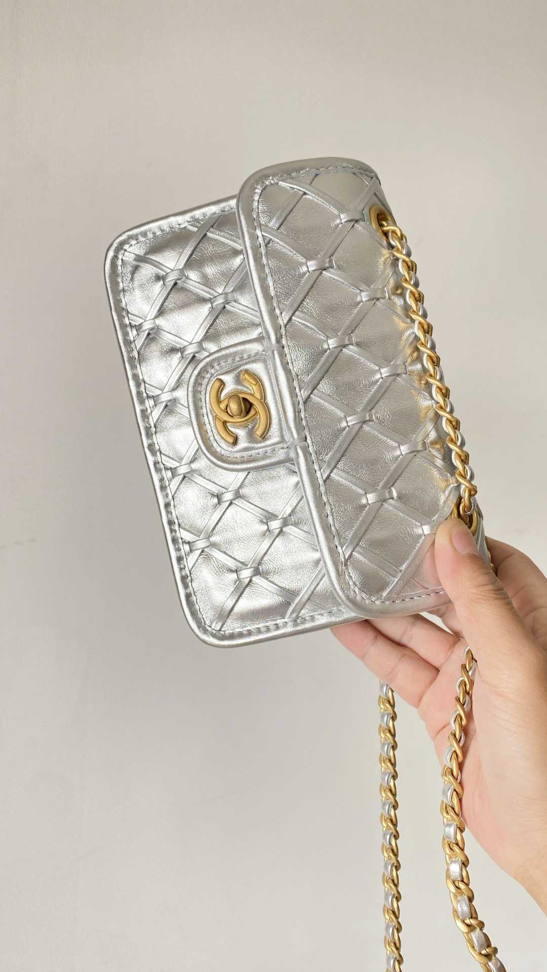 NIGO Chanel Women's Silver Lattice Chain Metallic Mirror Calfskin Shoulder Crossbody Bag Bags #nigo76372
