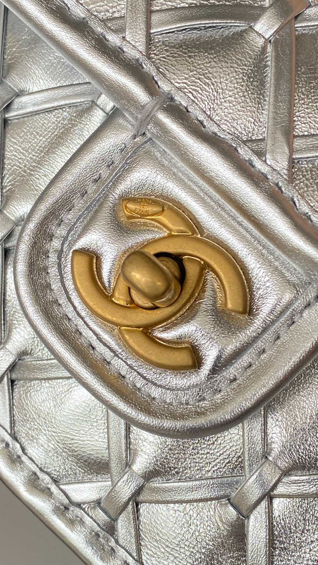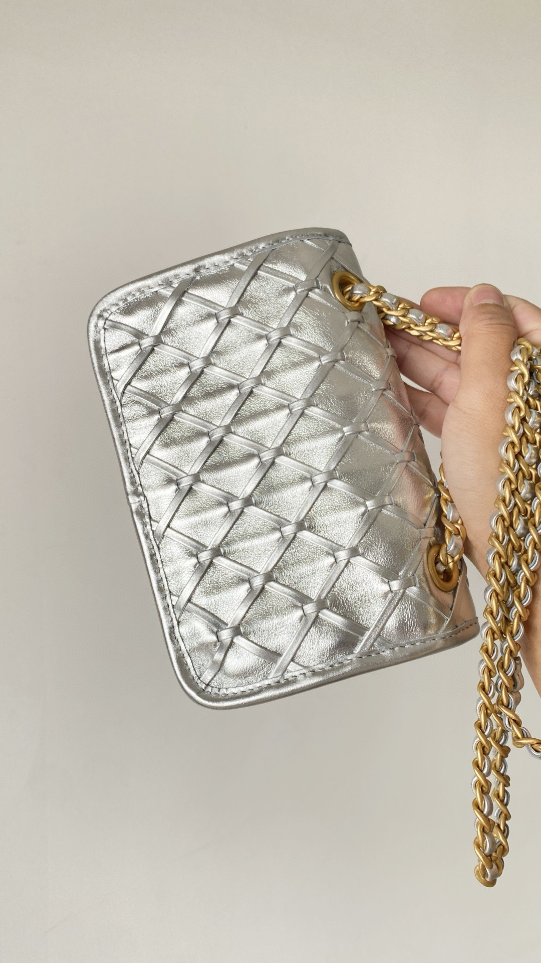 Home / CHANEL / NIGO Chanel Women's Silver Lattice Chain Metallic Mirror Calfskin Shoulder Crossbody Bag Bags #nigo76372